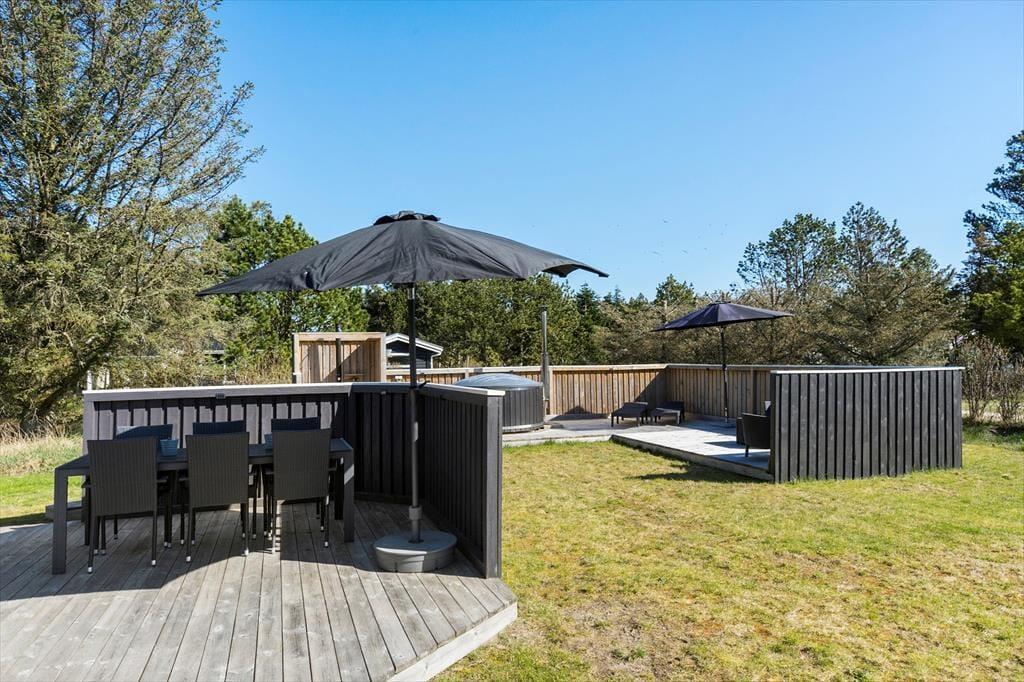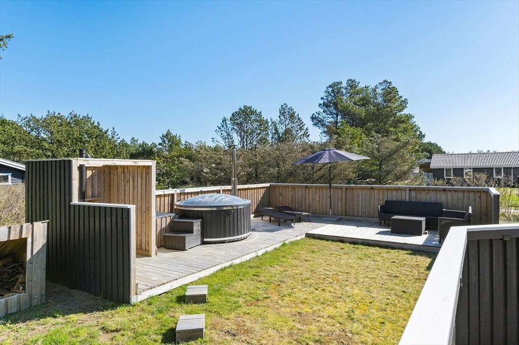 Wenn Sie die Sonne nicht drinnen, sondern draußen genießen möchten, müssen Sie einfach die Gartentür öffnen und auf die Terrasse treten. Sie ist groß, sodass es mehrere schöne Sonnenplätze zur Auswahl gibt – und es gibt sogar eine weitere sonnige Terrasse auf dem 1.302 m² großen Grundstück. Hier wurde sowohl eine Außendusche als auch ein Holzbad installiert, sodass es sowohl für eine belebende Morgendusche als auch für eine entspannende Wellness-Stunde unter dem Sternenhimmel bestens geeignet ist.