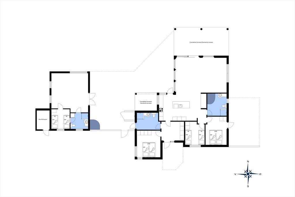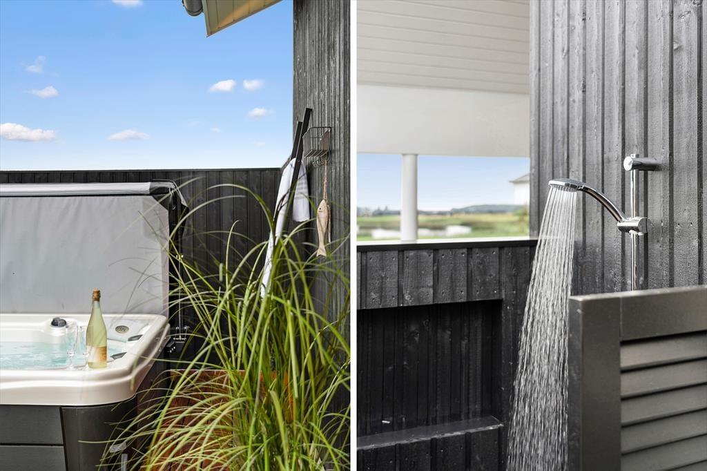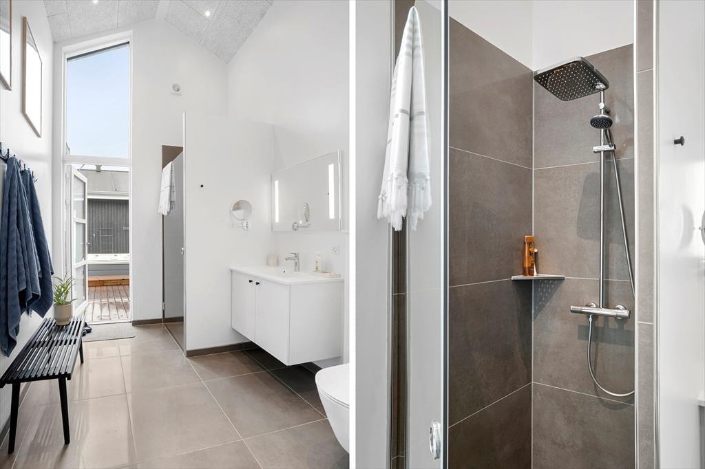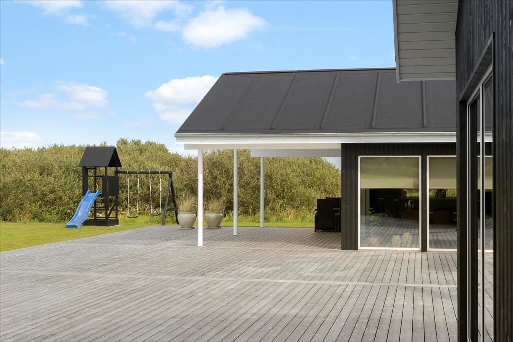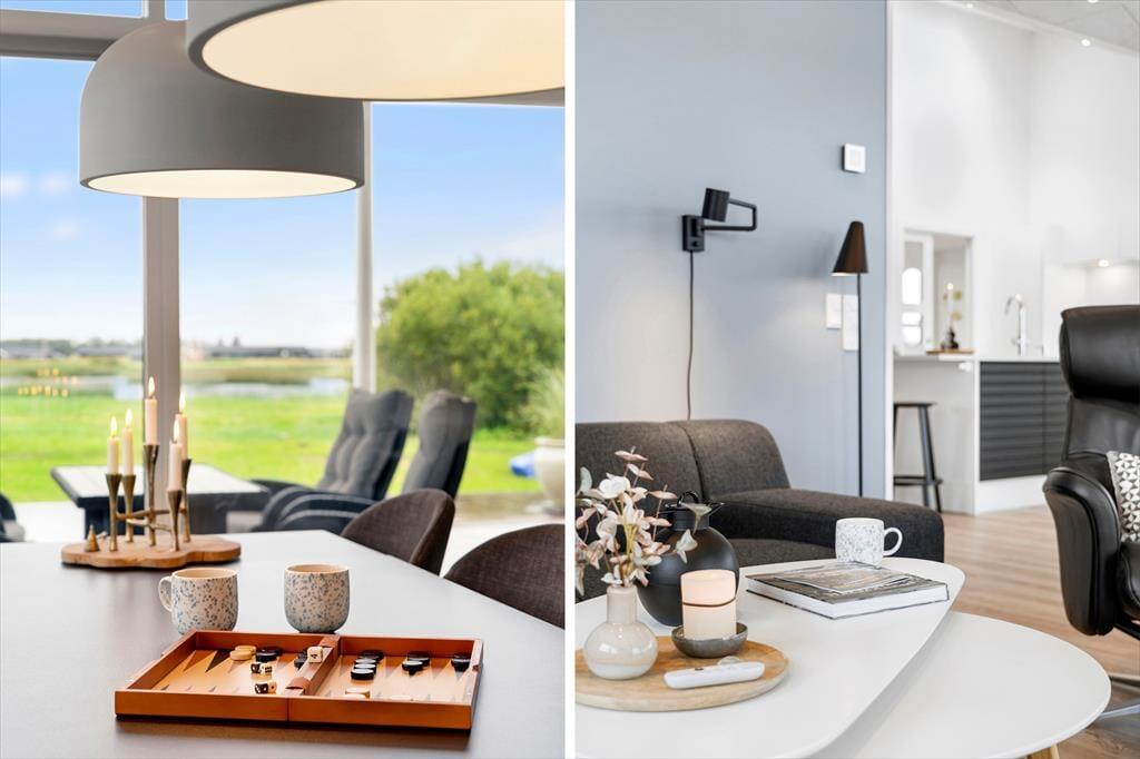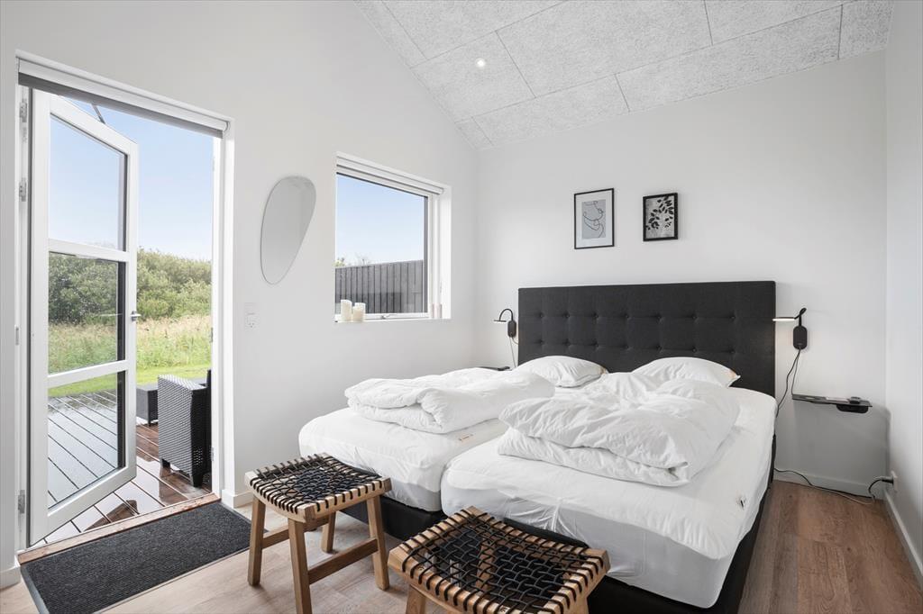 Dieses fantastische Ferienhaus strahlt Stil und Komfort aus, mit einer Raumaufteilung, die sowohl Gemeinschaft als auch Privatsphäre bietet. Die hellen und geräumigen Wohnzimmer sind in einem modernen nordischen Stil eingerichtet, bei dem große Fensterfronten das Licht der Natur ins Haus holen. Das Wohnzimmer öffnet sich zu einer überdachten Terrasse, die das Ferienhaus nach draußen verlängert und zu gemütlichen Stunden unter freiem Himmel einlädt – auch wenn der Tau fällt. Das Haus verfügt über drei gut ausgestattete Badezimmer, von denen eines ein Innen-Spa bietet, das nach einem erlebnisreichen Tag zur Entspannung einlädt. Mit vier guten Schlafzimmern und einem Hängeboden, der perfekt für die Kinder ist, gibt es reichlich Platz für die ganze Familie. Die Alkoven bieten zusätzliche gemütliche Ecken, in die du dich mit einem guten Buch oder für ein Nickerchen zurückziehen kannst.
