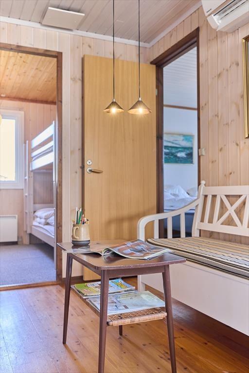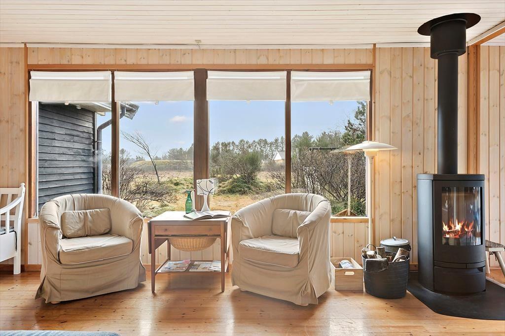 Das Urlaubsdomizil begrüßt dich mit einer schönen Wohnatmosphäre. Im Nu wirst du dich heimisch fühlen und spüren, wie der Stress und die Hektik des Alltags von deinen Schultern abfallen. An kühlen Tagen heizt du den Kaminofen an und machst es dir mit deinen Lieben auf dem Sofa gemütlich oder auf den anderen Sitzmöbeln, die sich im stimmungsvollen Aufenthaltsraum verteilen. Da die Küche offen in den Wohnraum integriert ist, ist es für dich ein Leichtes, dir zwischendurch kurz einen frischen Becher Kaffee oder einen kleinen Snack zu holen. Zudem genießt du dank der offenen Wohnlösung selbst während der Zubereitung eurer Mahlzeiten die Nähe deiner Familie und angeregte Gespräche. Der Rest der Wohnfläche ist einem Badezimmer und zwei Schlafräumen überlassen. In Nebengebäude steht ein zusätzliches Doppelbett zur Verfügung.