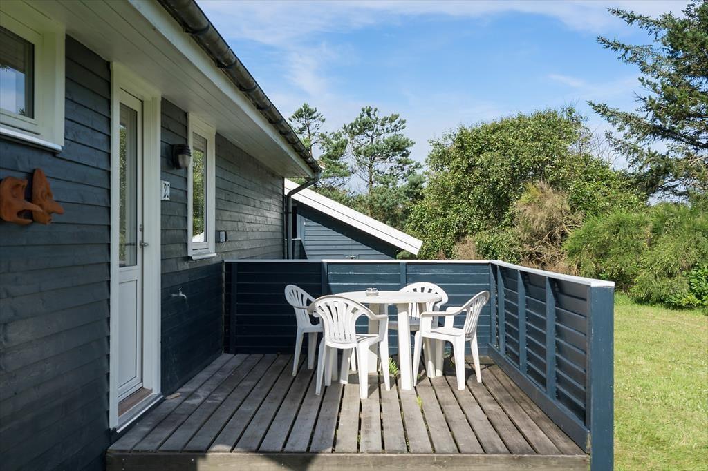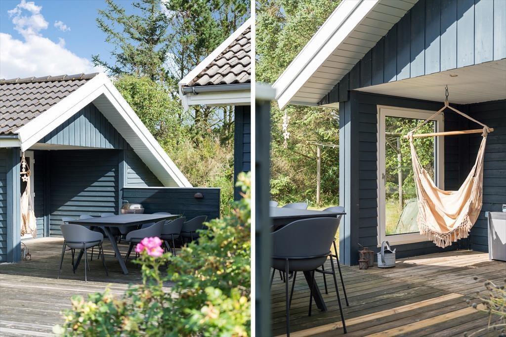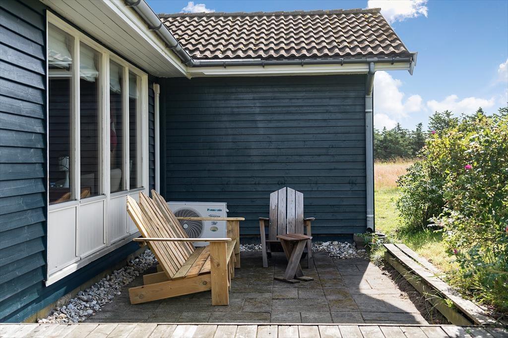 Unter freiem Himmel genießt du die Wahl zwischen mehreren guten Terrassenbereichen, zu denen unter anderem eine gepflasterte Südterrasse und eine teilweise überdachte Holzterrasse, die das Haus mit dem Nebengebäude verbindet, zählen. Auf der schönen Grasfläche deines 1.543 m² großen Grundstücks können deine Kinder nach Herzenslust Ball spielen, schaukeln und rutschen. Der Karensvej ist eine Sackgasse. Dein Ferienhaus befindet sich zudem am Ende eines kleinen Stichwegs. Ringsum geht es ruhig und ungestört zu. Im Süden erstreckt sich eine weitläufige Freifläche, die die entspannte Atmosphäre wunderbar unterstreicht.