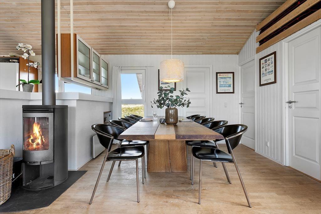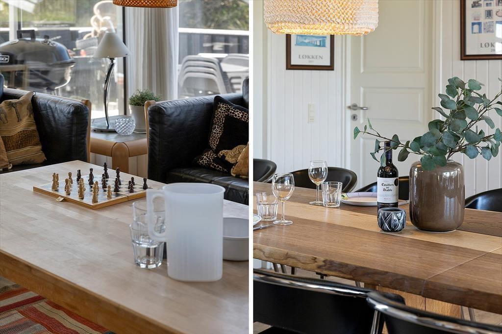 Das Ferienhaus ist schön und funktional eingerichtet, mit Zimmern und Badezimmern so verteilt, dass zwei Familien problemlos gemeinsam im Ferienhaus wohnen können und trotzdem ein wenig Privatsphäre haben. Der große Wohnbereich mit offener Küche, Essbereich und Wohnzimmer liegt zentral und wird schnell zum natürlichen Treffpunkt. Vom Wohnzimmer aus hat man einen Blick auf das Meer und auf den Poolbereich sowie Zugang zur Terrasse. Zu den kinderfreundlichen Annehmlichkeiten gehören ein Kinderbett, ein Hochstuhl, Waschmaschine, Trockner und kostenloses, drahtloses Internet (Fibernet 50/50). Vom Wohnzimmer aus gelangt man auf eine schöne Hems mit Sitzsäcken, wo man gemütlich verweilen kann. Der Kaminofen befindet sich zentral im Ferienhaus und sorgt an kühlen Tagen für Wärme und Gemütlichkeit. Für das Ferienhaus sind Brennholz inklusive, sodass die Verbrauchskosten niedrig gehalten werden können.