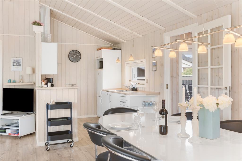 Dieses Ferienhaus bietet nicht nur moderne Annehmlichkeiten wie einen Whirlpool, eine Sauna und WLAN, sondern auch eine stilvolle und geschmackvolle Einrichtung mit schönen Möbeln und feinen Details sowie die gemütliche Atmosphäre, die durch das große Lichtangebot in Kombination mit dem Feuer und der Wärme des Kaminofens entsteht. Hier gibt es viel Platz für acht Personen, die sich in der zentralen Küche-Wohnküche mit direktem Zugang zum Essbereich und dem Wohnzimmer mit Sofas und Fernseher treffen können. Das Ferienhaus verfügt zudem über drei Schlafzimmer und zwei Badezimmer und schließlich noch ein weiteres Schlafzimmer, das man über die Terrasse im Freien erreicht. Dieses Zimmer eignet sich besonders gut für Teenager oder größere Kinder, die sich zurückziehen möchten, um zu spielen oder zu entspannen. Das Ferienhaus eignet sich hervorragend für große Familien oder zwei bis drei Paare, die Nordjütland gemeinsam erleben möchten.