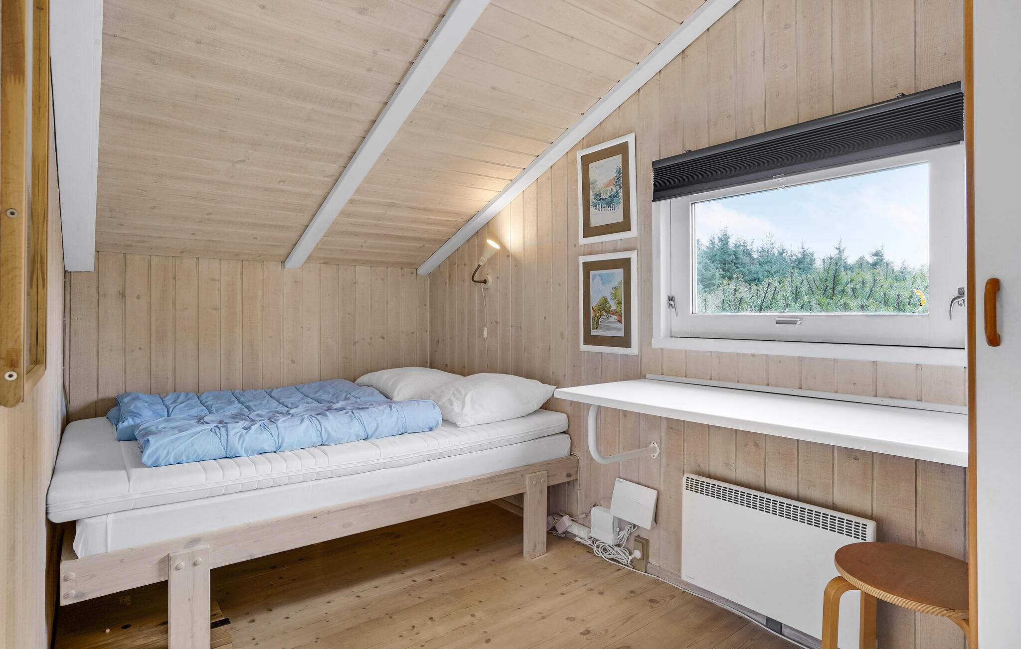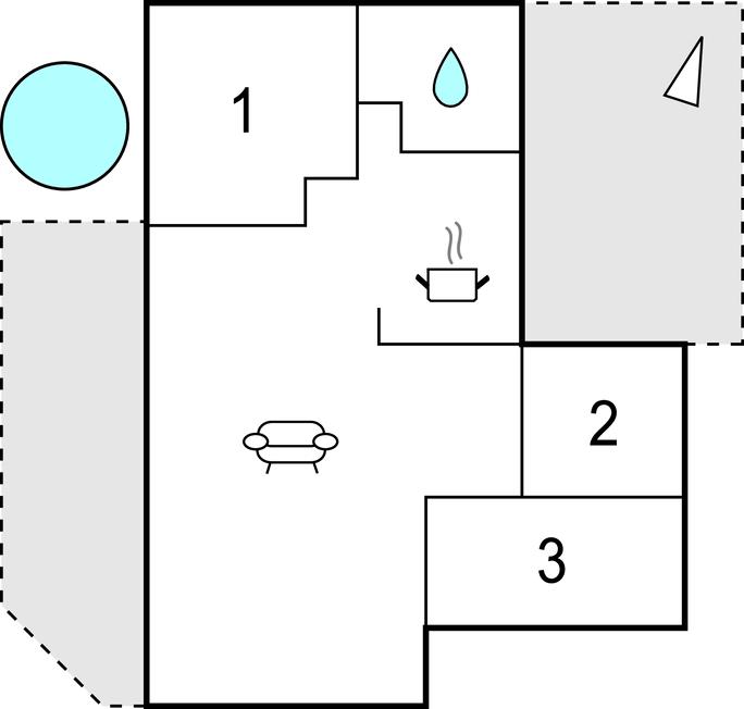 Das Herz des Hauses ist der gemütliche Wohnbereich mit offener Küche, Ess- und Sofaecke, wo Sie gut zusammen die Mahlzeiten einnehmen oder vorm Kamin entspannen können. Außerdem stehen Ihnen drei Schlafzimmer und ein Badezimmer zur Verfügung.