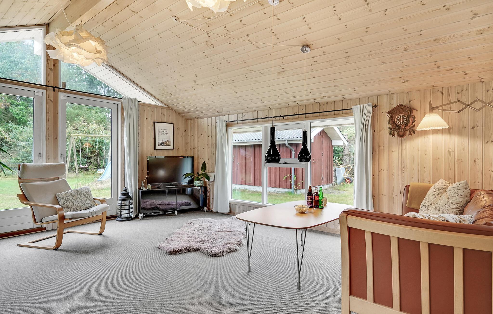 Dieses Haus strotzt vor klassischer Ferienhaus-Idylle. Mit seiner hellen Holzverkleidung im Inneren sowie den großen Fenstern wirkt das Haus geräumig und offen. Hier finden Sie alle Annehmlichkeiten für einen gelungenen Urlaub, darunter eine schöne, überdachte Terrasse sowie eine Schaukel und Rutsche im Garten. Ideal für einen Urlaub mit der ganzen Familie.