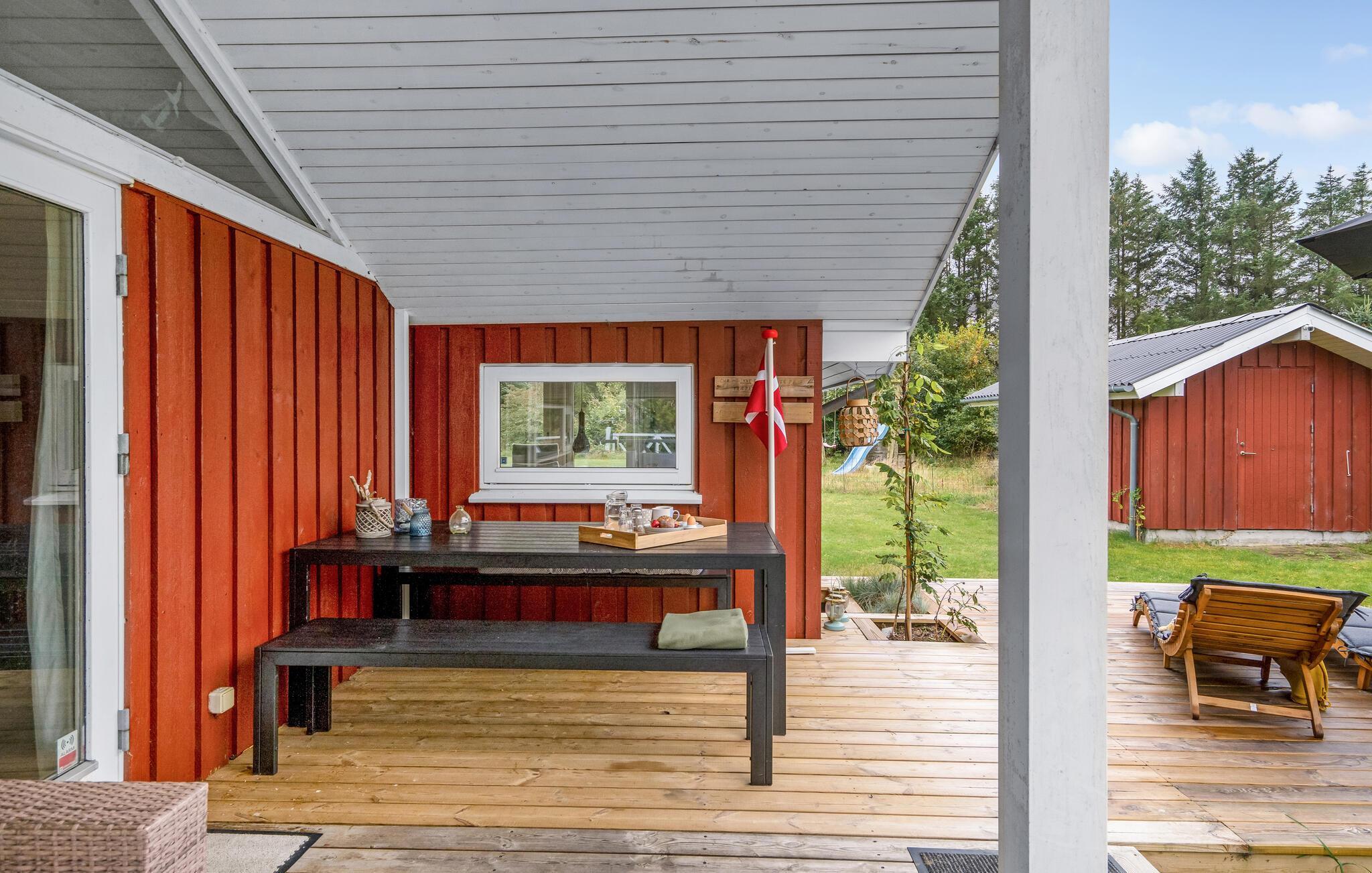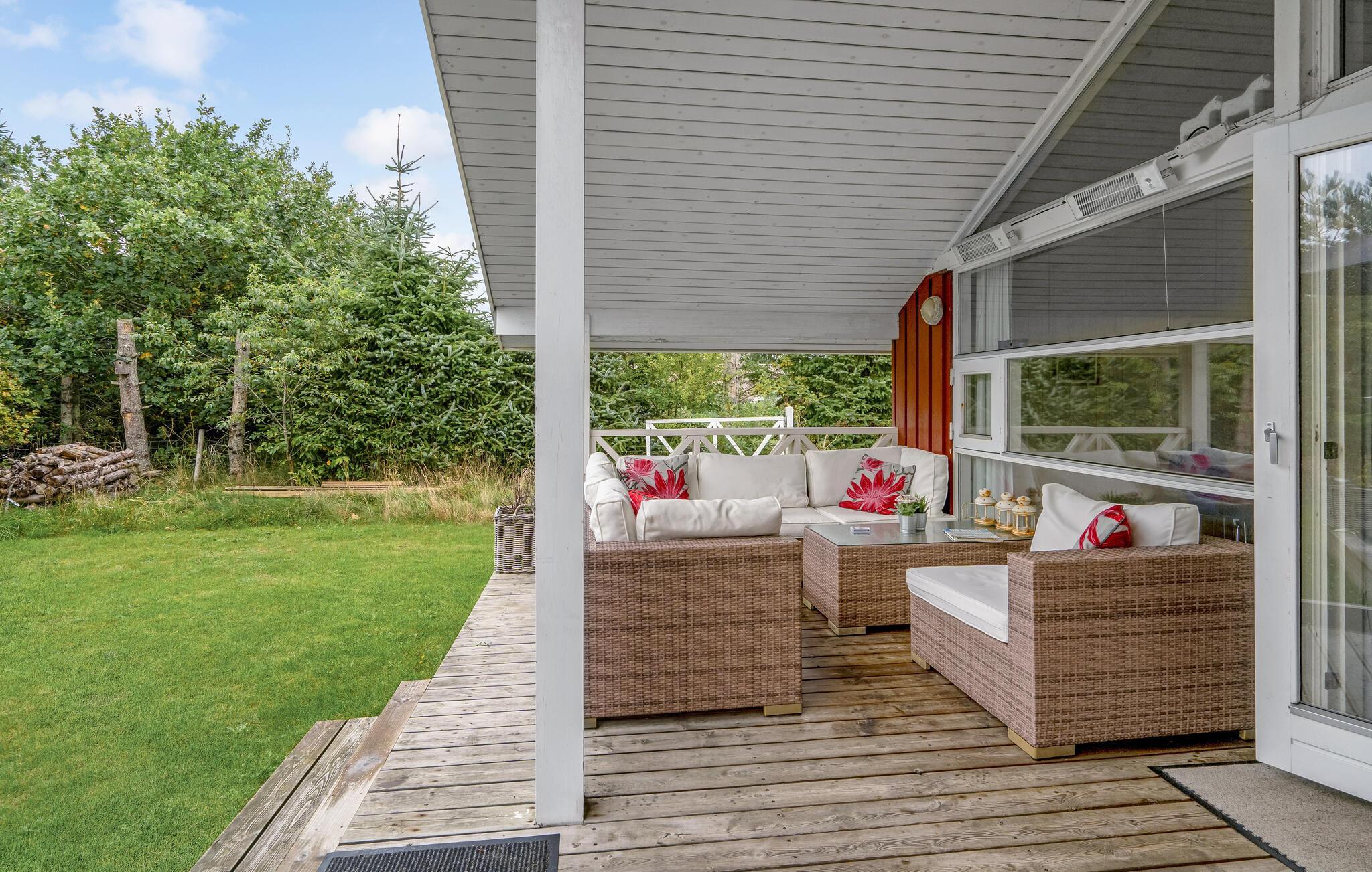Helles Ferienhaus mit Garten, Terrasse und Pool nahe Grønhøj Strand in Dänemark.
