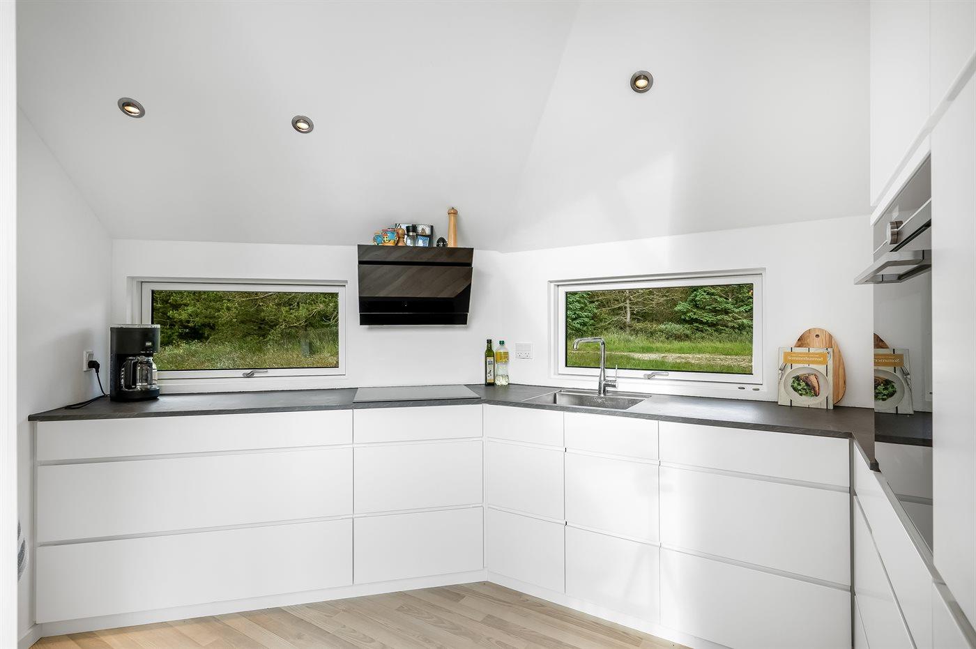 Die Küche ist mit Kühlschrank ausgestattet. Außerdem gibt es 4 Induktions-Kochzonen, Umluftofen, Mikrowelle sowie Geschirrspüler. Fußbodenheizung in der Küche.