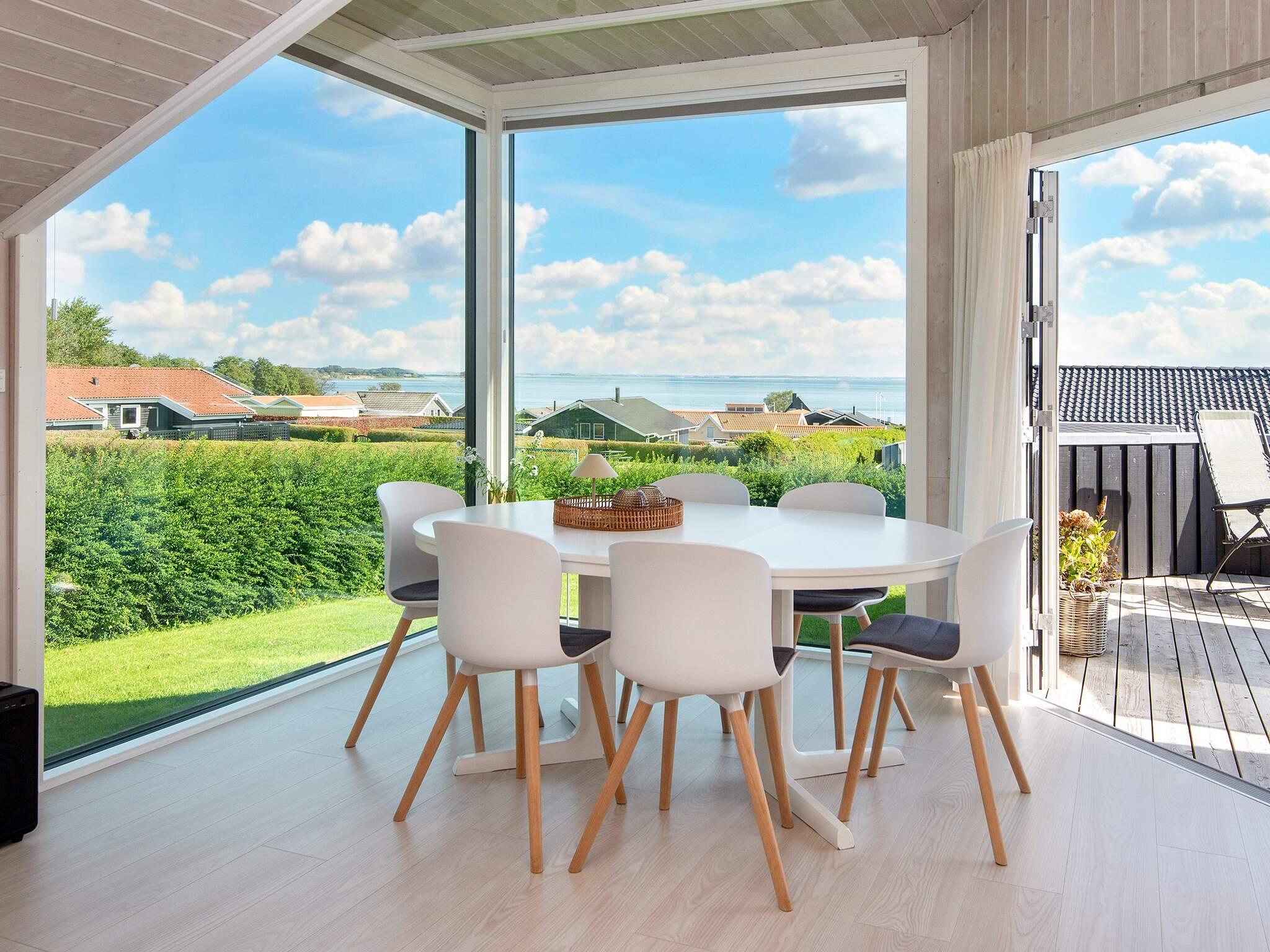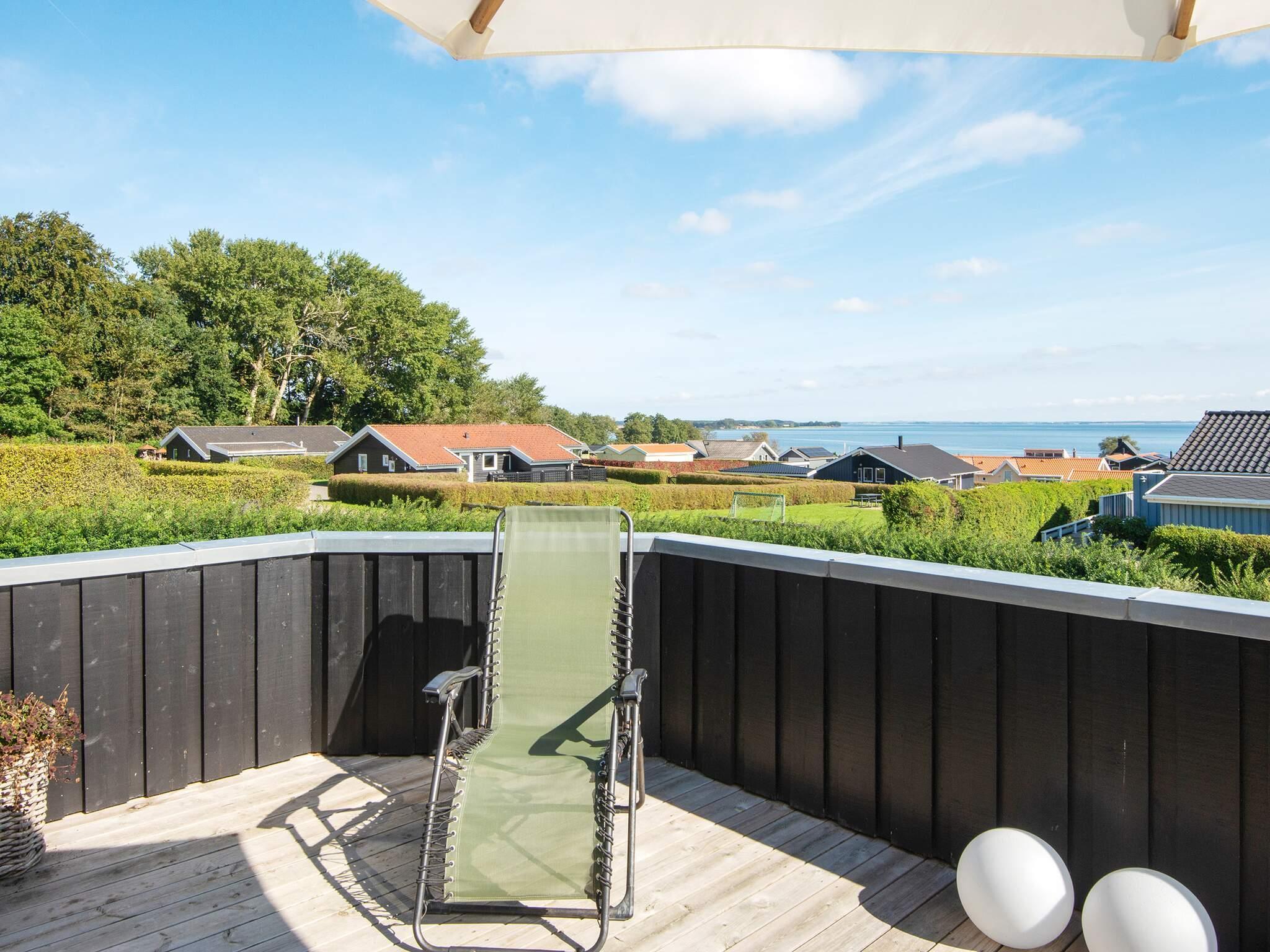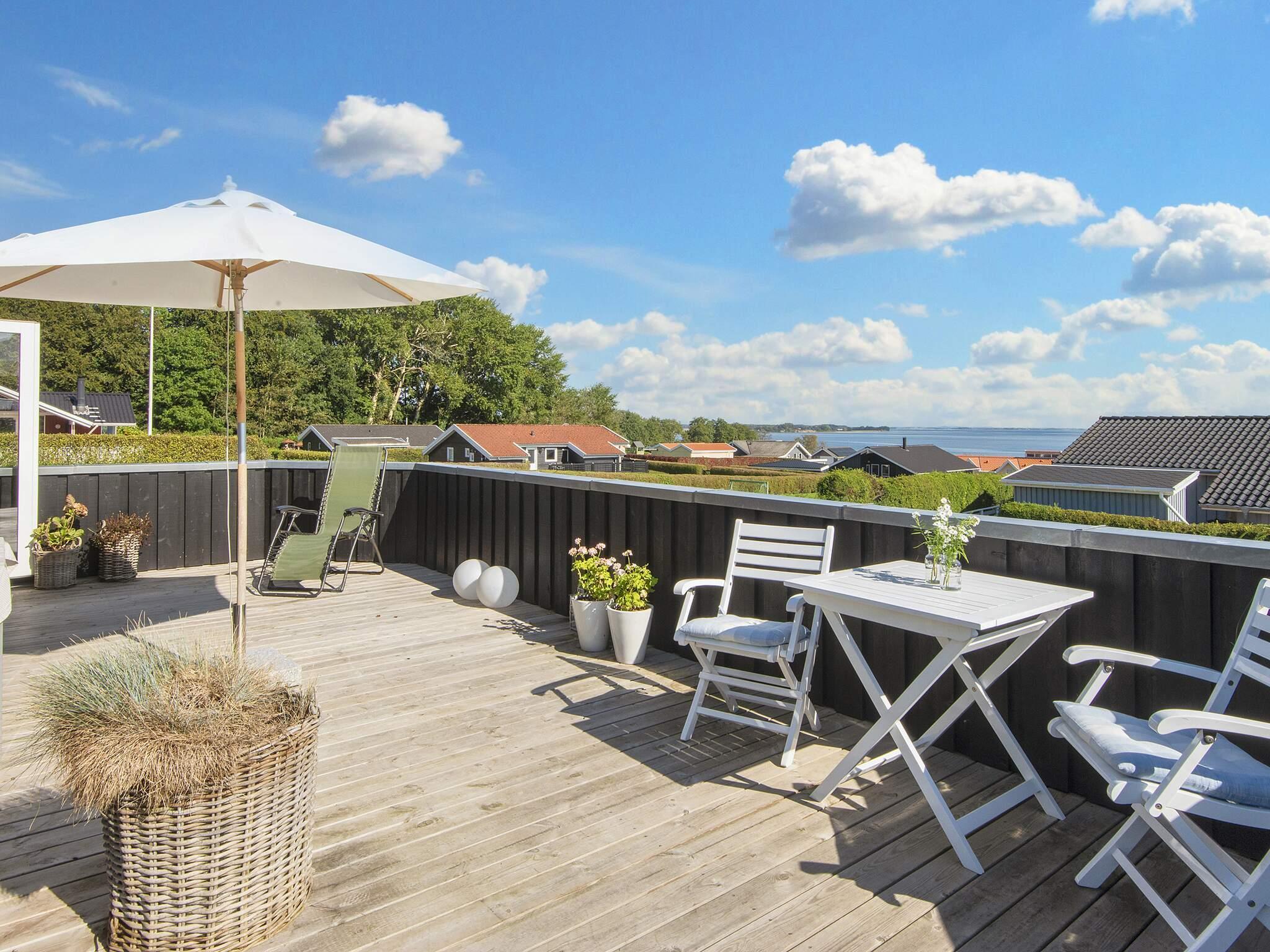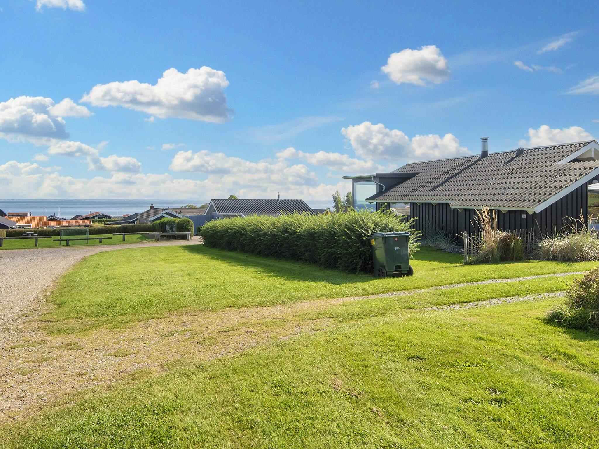 Dieses Holzferienhaus liegt auf einem 775 m² großen, schön angelegten Rasengrundstück mit Randbepflanzung und fantastischem Ausblick bis zum Wasser im Kleinen Belt!