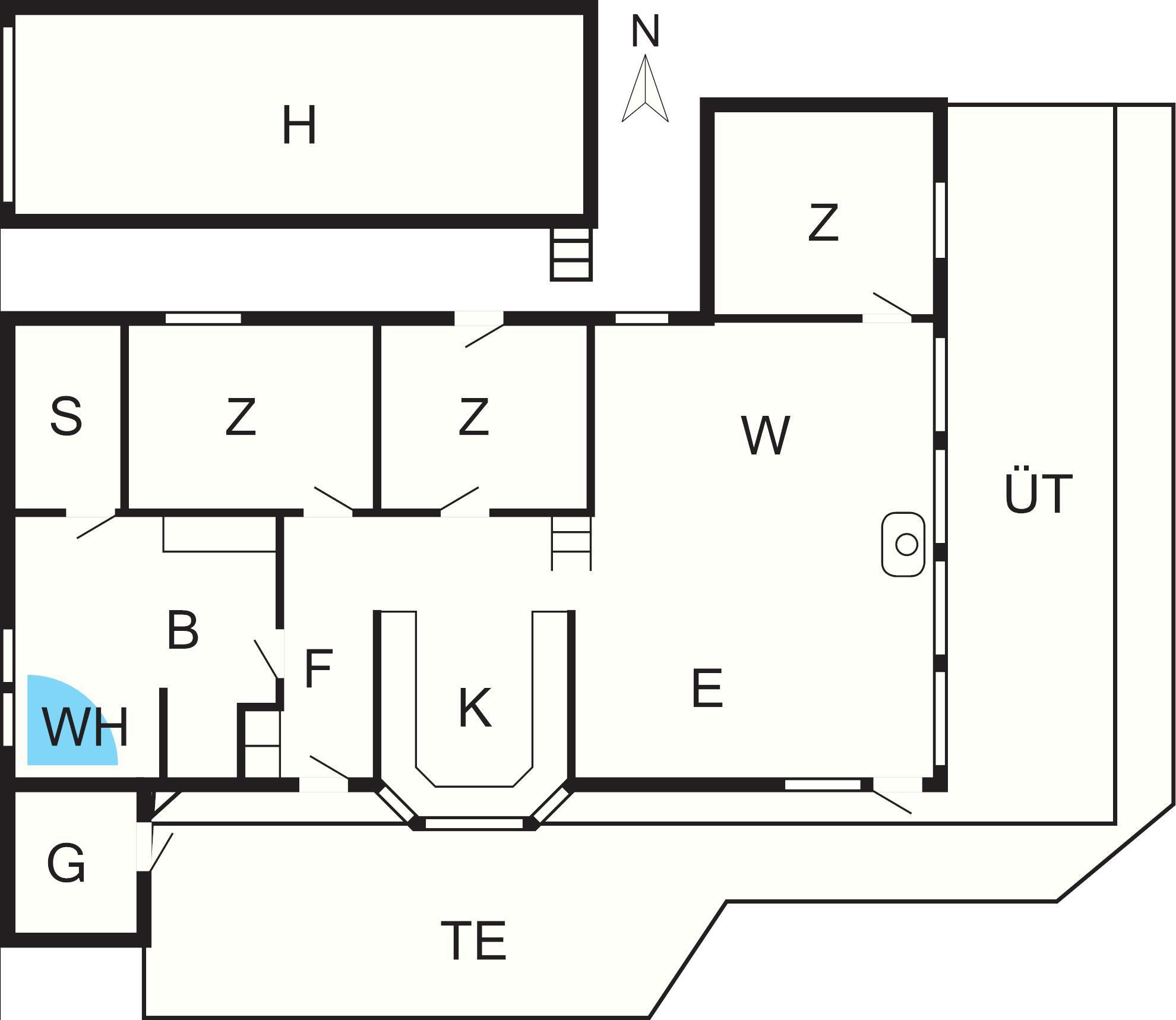 Off. Küche: E-Herd, Kühlschr., Gefriertruhe 1-59 l., Mikrow., Abzugsh., Kaffeem., Spülm., Waschm.