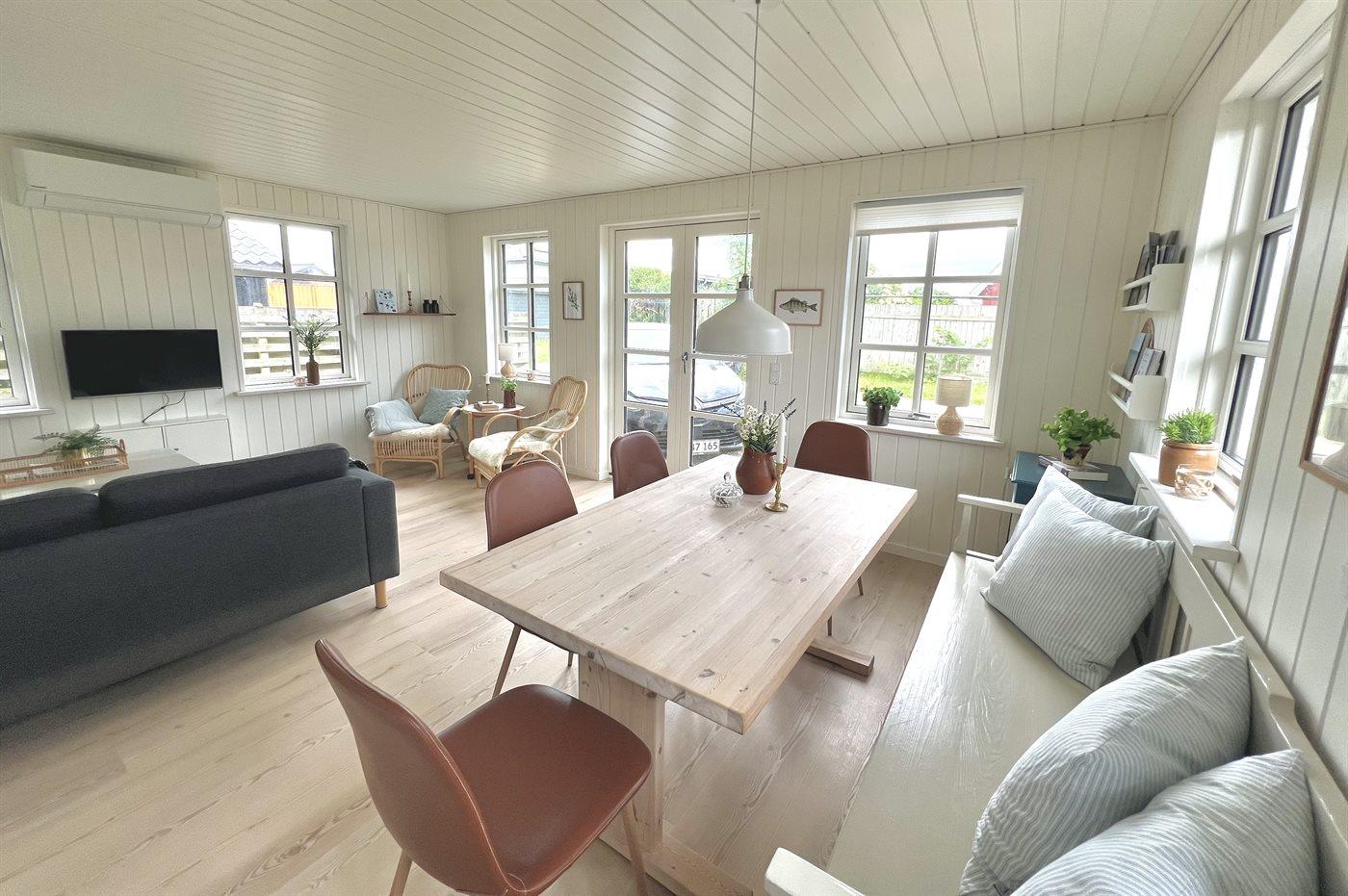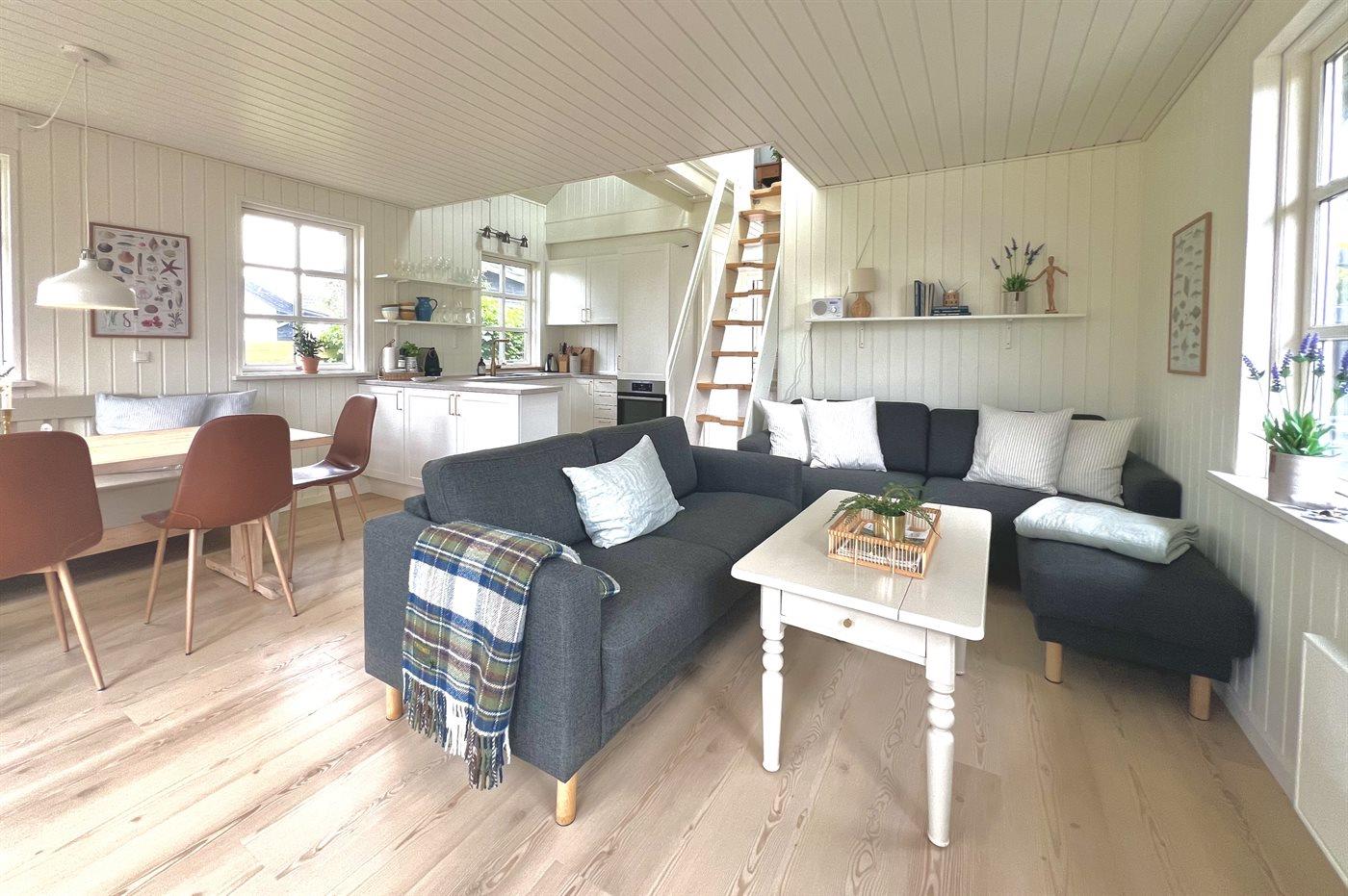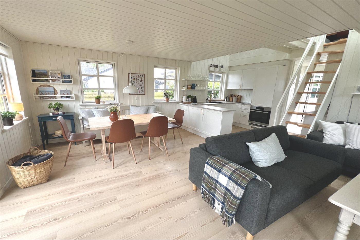 Das Erdgeschoss des Ferienhauses wurde 2024 komplett renoviert. Dich erwartet eine helle und geschmackvolle Einrichtung aus hochwertigen Materialien und einer handverlesenen Mischung aus Vintage und modernen Elementen.