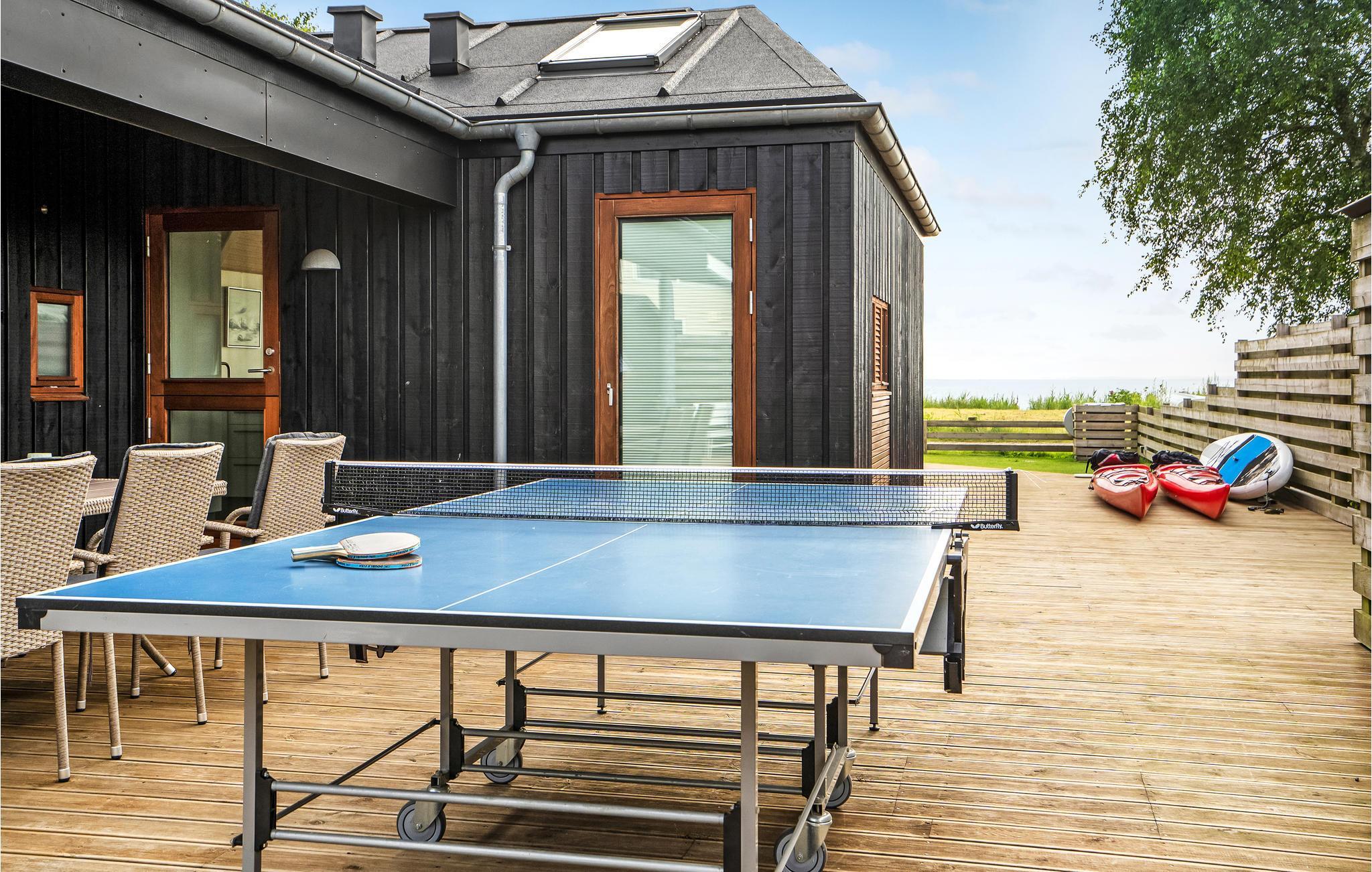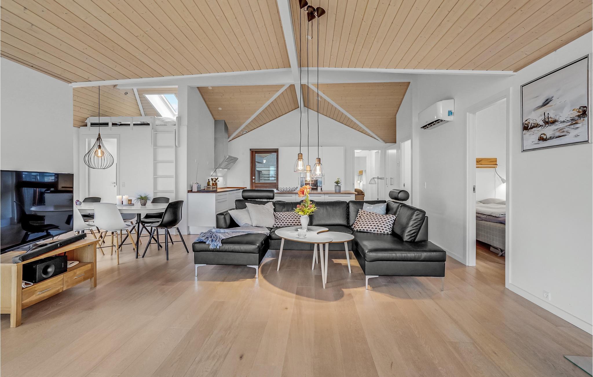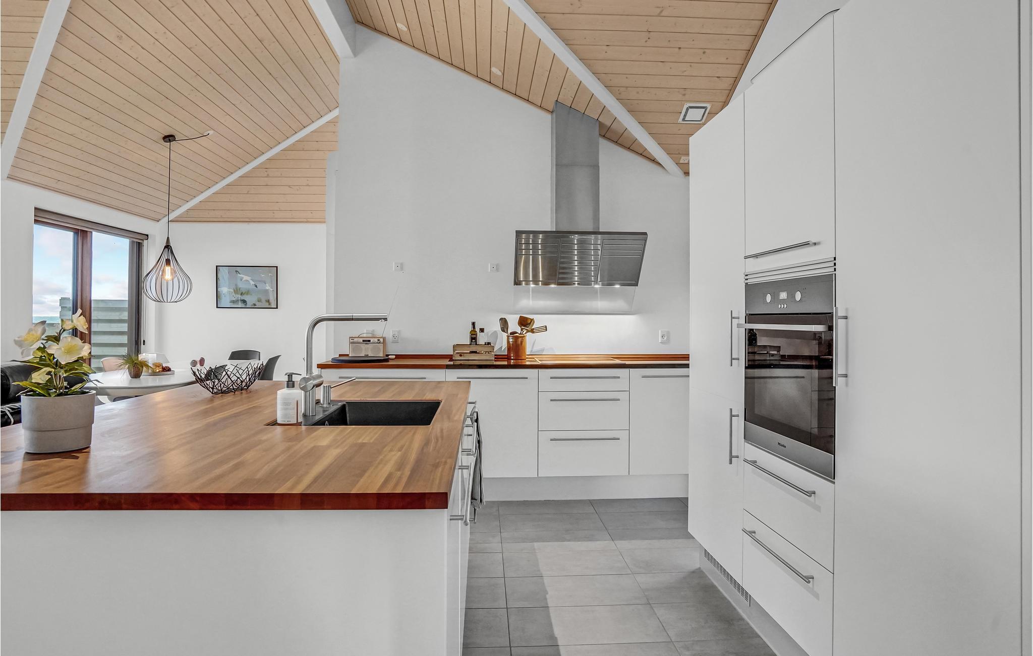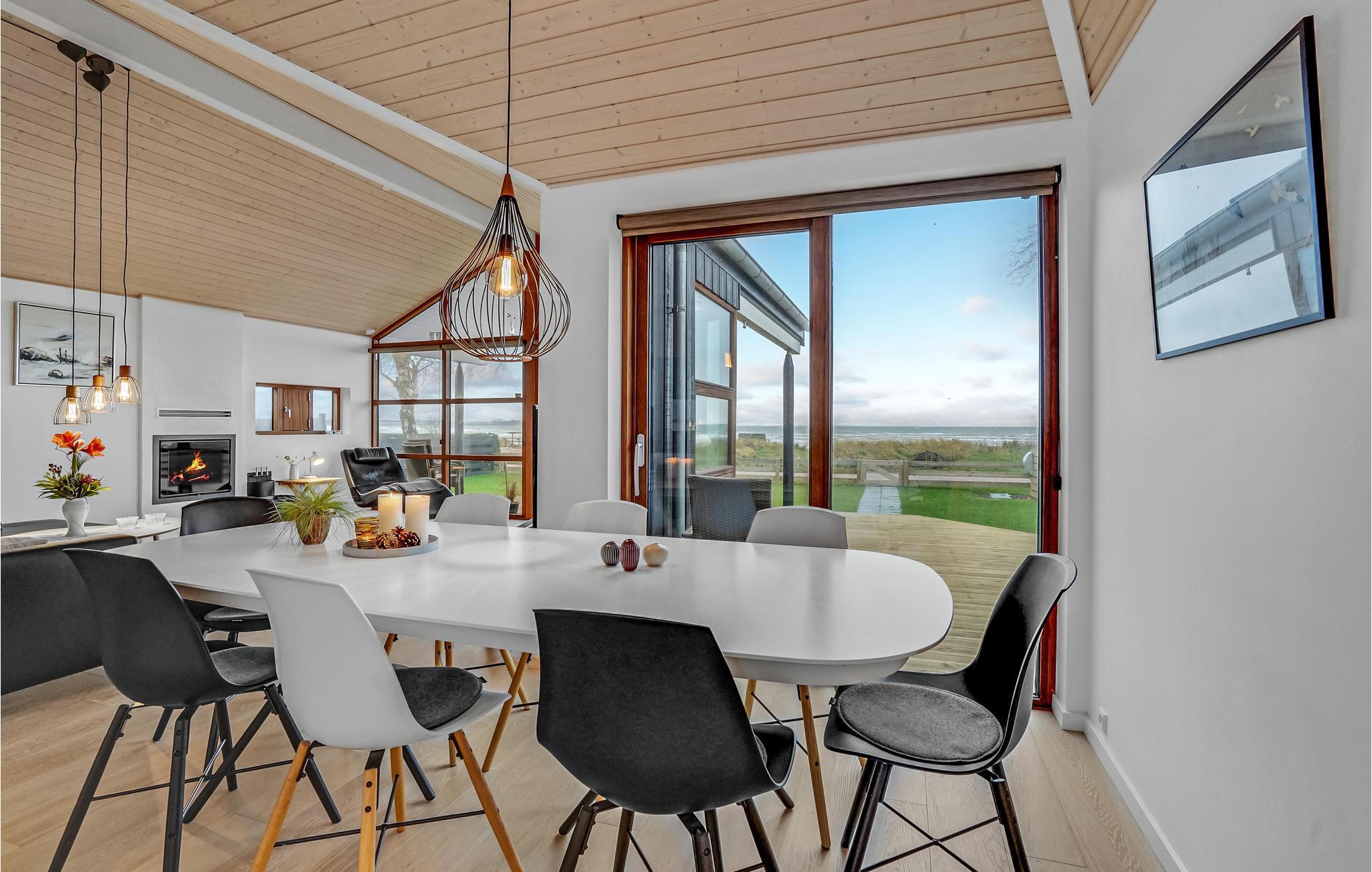 Willkommen in diesem hochwertigen Ferienhaus mit allen Annehmlichkeiten für einen gelungenen Urlaub an der Ostküste Dänemarks. Das helle und moderne Haus erwartet Sie auf einem schönen Rasengrundstück und mit Blick auf den Kleinen Belt. Das Herz des Hauses ist das schöne Wohnzimmer mit großen Fenstern und viel Tageslicht. Entspannen Sie hier auf dem Sofa mit einem prasselnden Feuer im Kamin und lassen Sie den Tag ausklingen. Vom Essbereich haben Sie ebenfalls einen schönen Blick auf die Umgebung. Die hochwertige Küche ist der Treffpunkt des Hauses, wo Sie sich beim Kochen mit den anderen unterhalten können. Eine Ventilationsanlage sorgt im Haus für angenehme Luft.