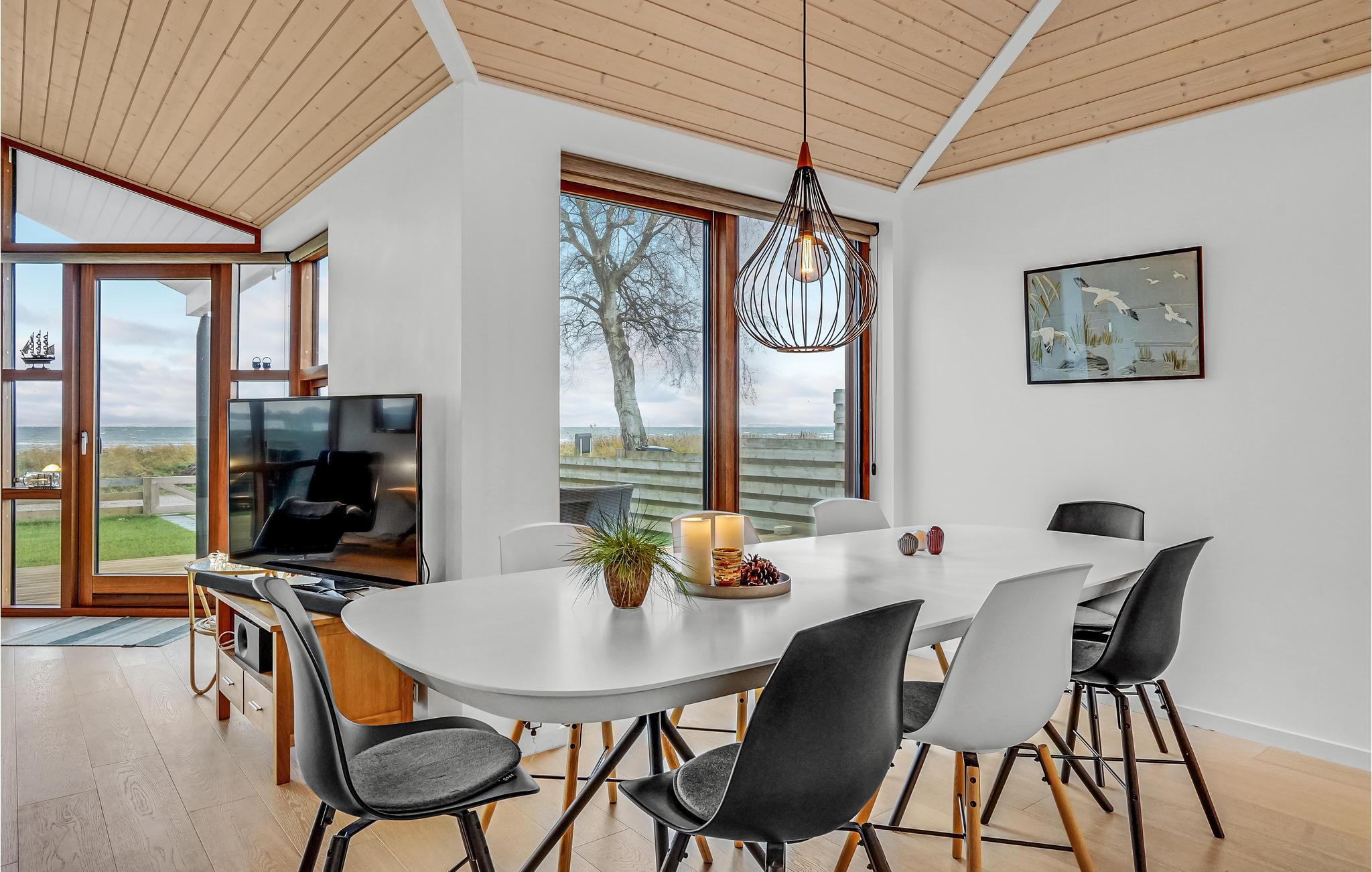 Luxuriöses Ferienhaus direkt am Wasser mit Panorama-Blick, moderner Ausstattung und großer Terrasse in Sjølund, Dänemark.