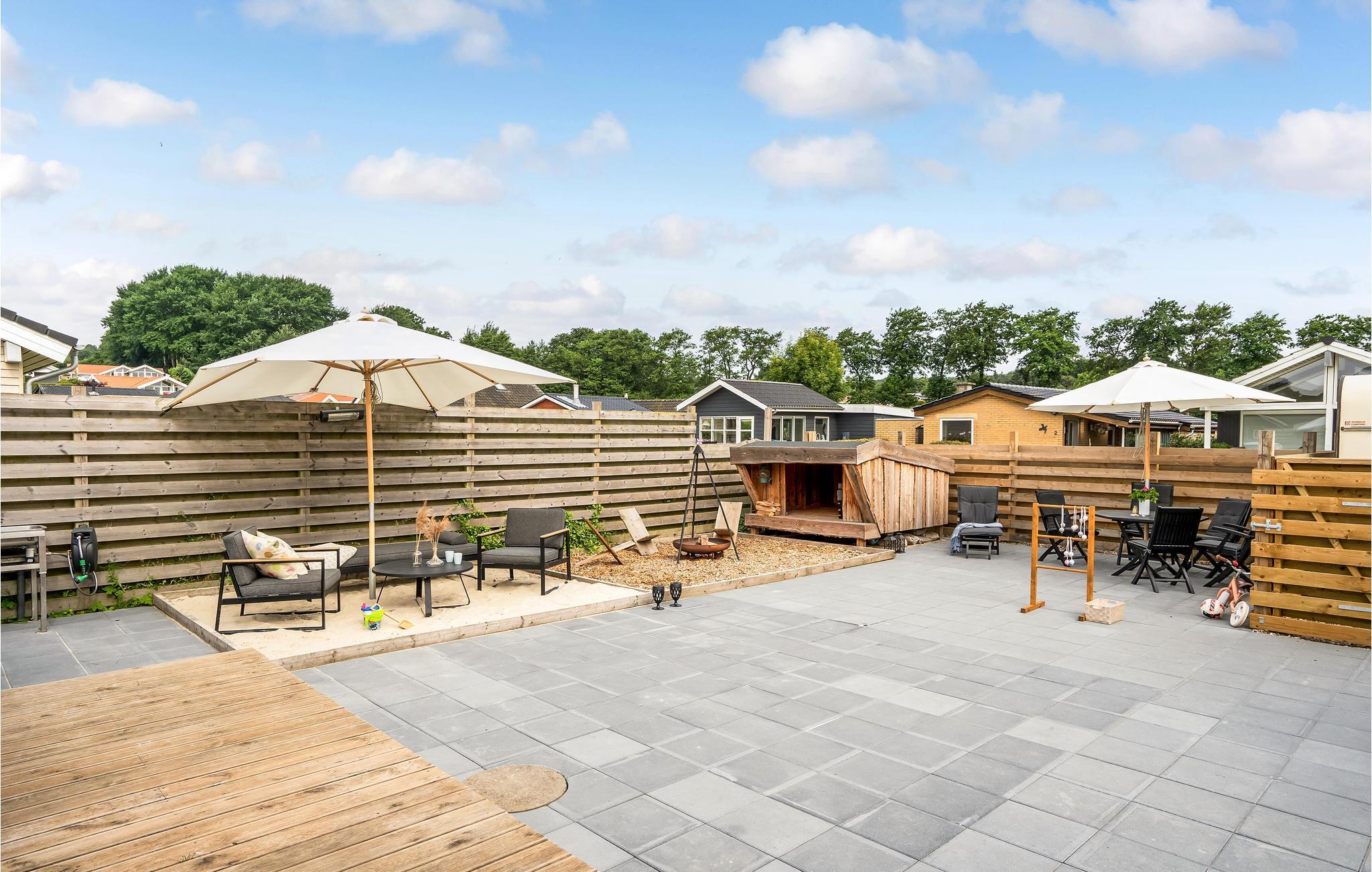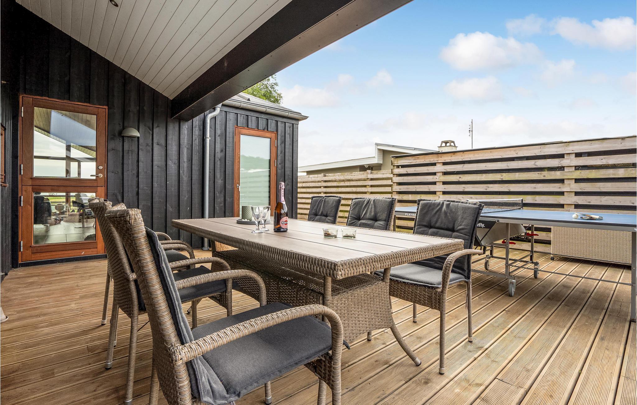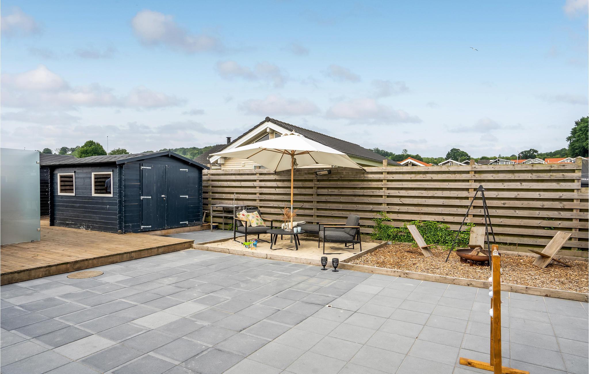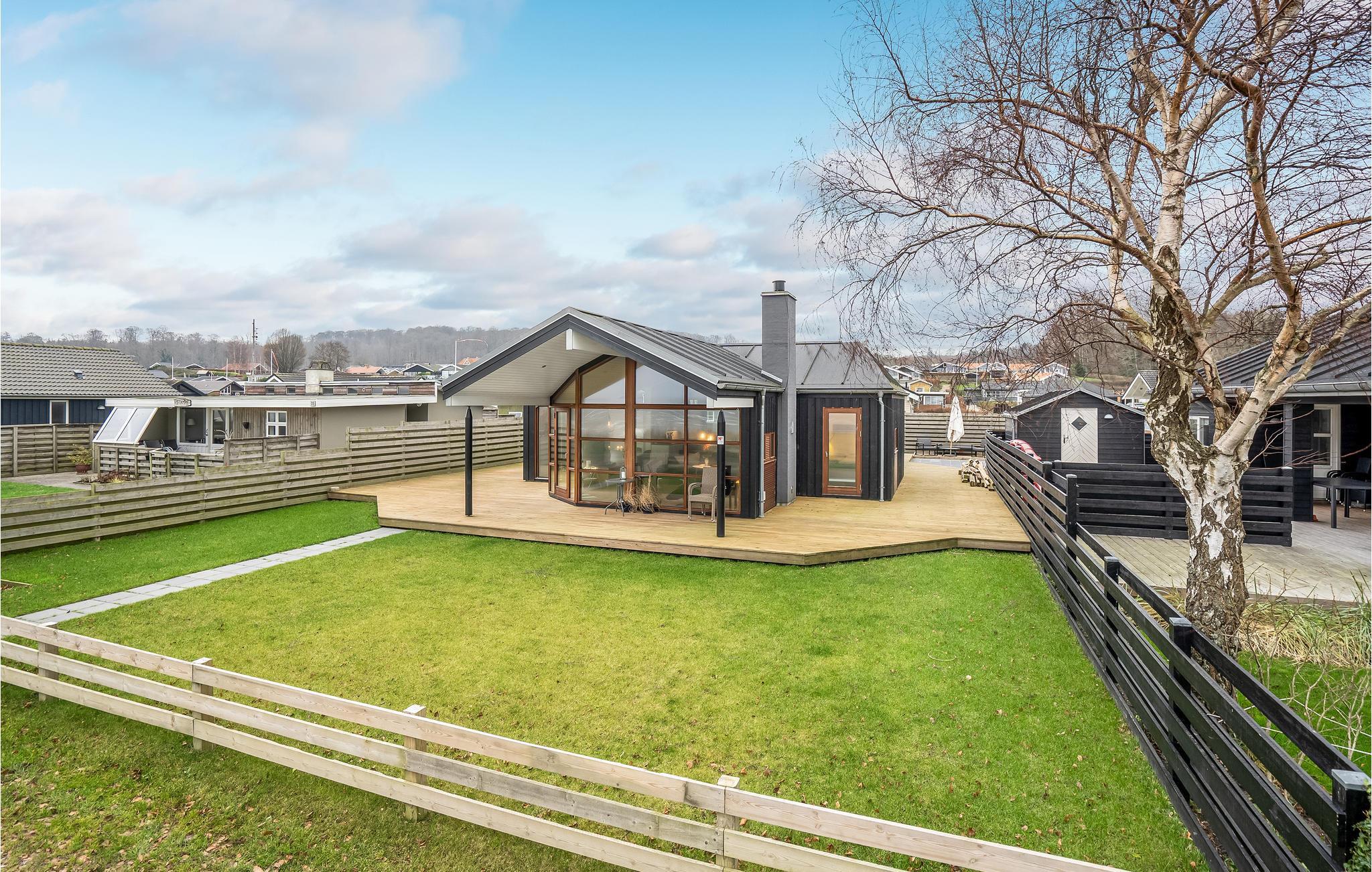 Auf der großen Holzterrasse mit Gartenmöbeln und Grill rund um das Haus lässt es sich an warmen Tagen gut aushalten. Am Morgen lädt das Wasser zu einem erfrischenden Bad ein. In der Umgebung lohnen sich Ausflüge nach Kolding oder Odense, wo Sie gute Einkaufsmöglichkeiten, Cafés und Restaurants finden.
