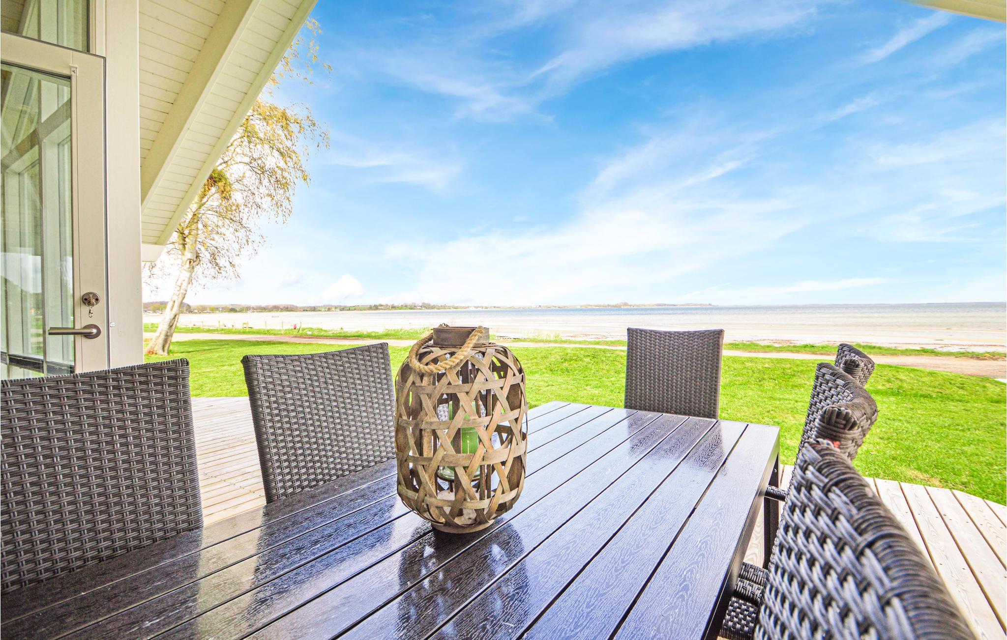 Mit nur 10 m Abstand zum einem wundervollen und kinderfreundlichen Sandstrand liegt dieses Ferienhaus total perfekt. Vom Haus und seiner Terrasse haben Sie Panoramaaussicht auf den Kleinen Belt in Grønninghoved Strand. Wohnzimmer und Küche sind zueinander offen und die großen Panoramafenster sorgen auch dafür, dass viel Licht ins Innere kommt und Sie schön nach draußen blicken können. In zwei Schlafzimmern stehen gute Doppelbetten, im dritten ist ein Stockbett. Das Ferienhaus ist umweltgerecht und und hat eine Lust-Wasser-Wärmepumpe. Auch außerhalb der Sommersaison ist das Haus günstig in den Betriebskosten. Ein perfektes Ferienhaus für die Kinderfamilie. Wenn das Wetter schlecht ist, gibt es in Kolding das Erlebnisbad Slotssøbadet. Grønninghoved ist ein waldreiches Gebiet mit schönen Stränden.