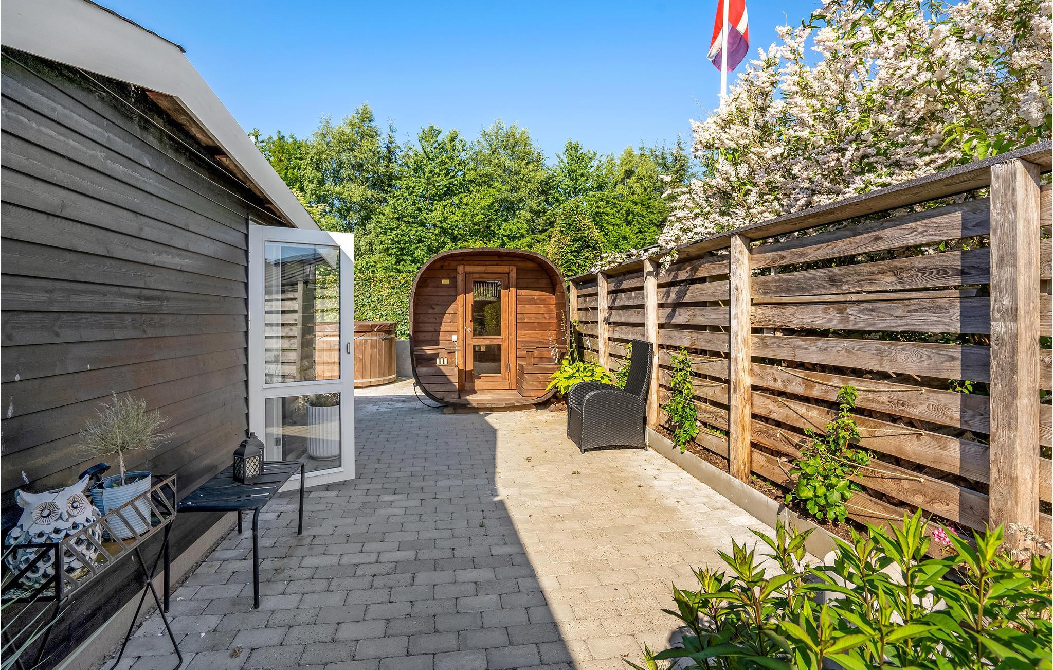 Einladendes Haus am Grønninghoved Strand mit erstklassigen Wellness-Einrichtungen.