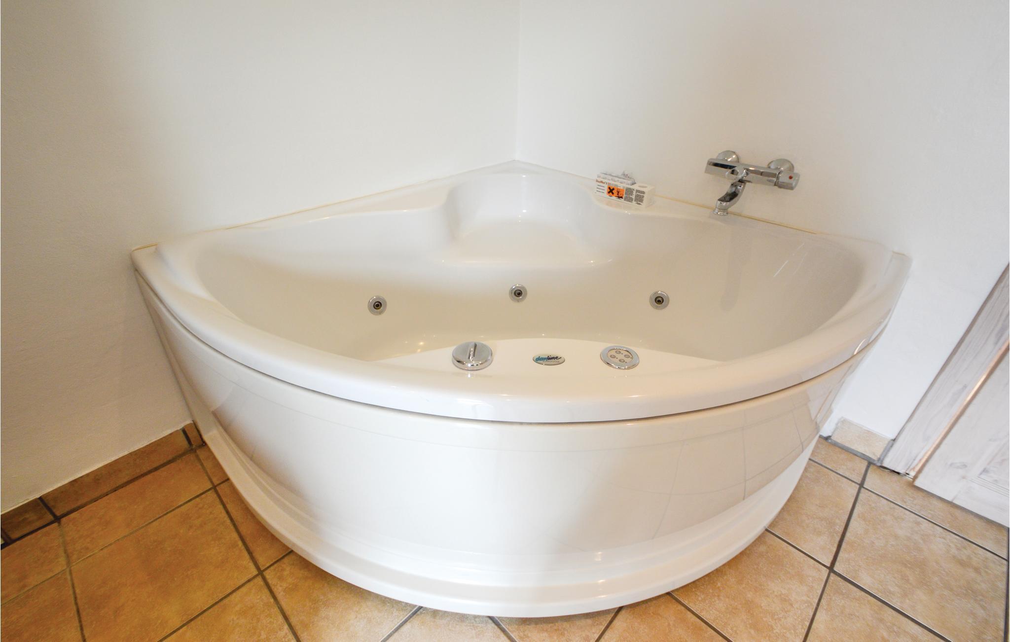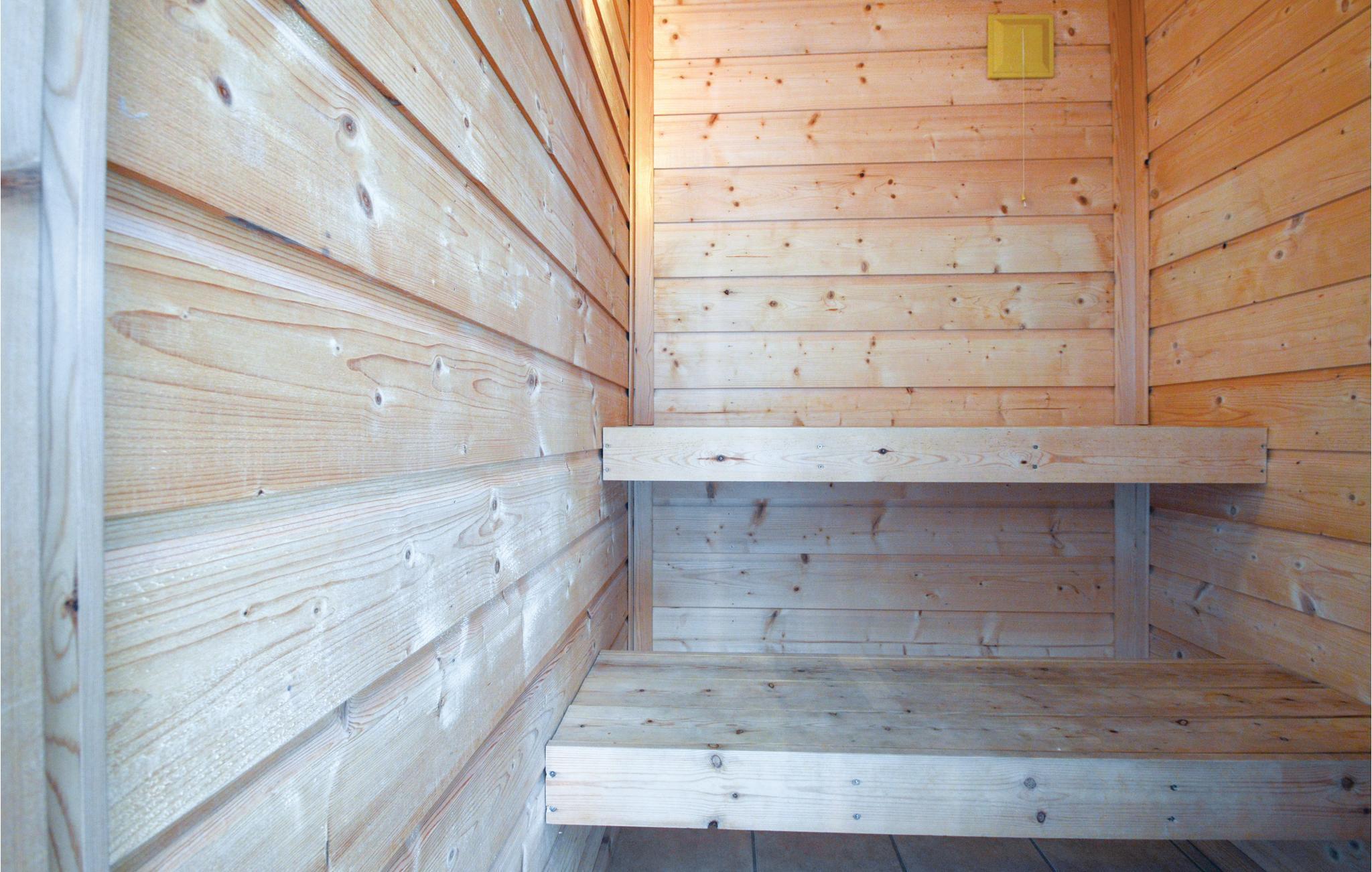 Es gibt drei Schalfzimmer, zwei Badezimmer, von denen das eine Spa und Sauna hat.