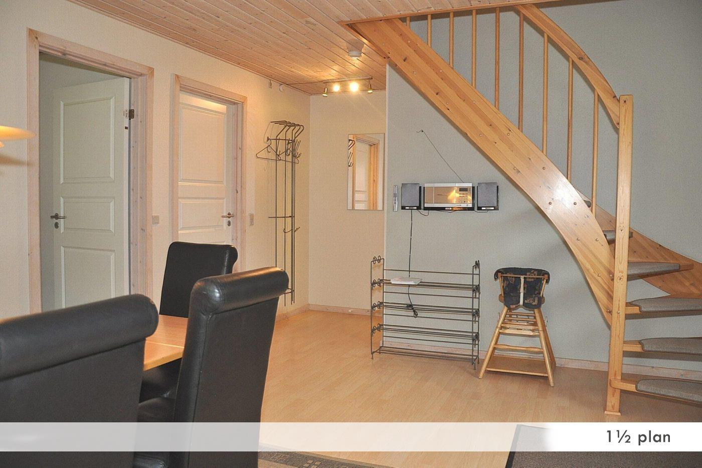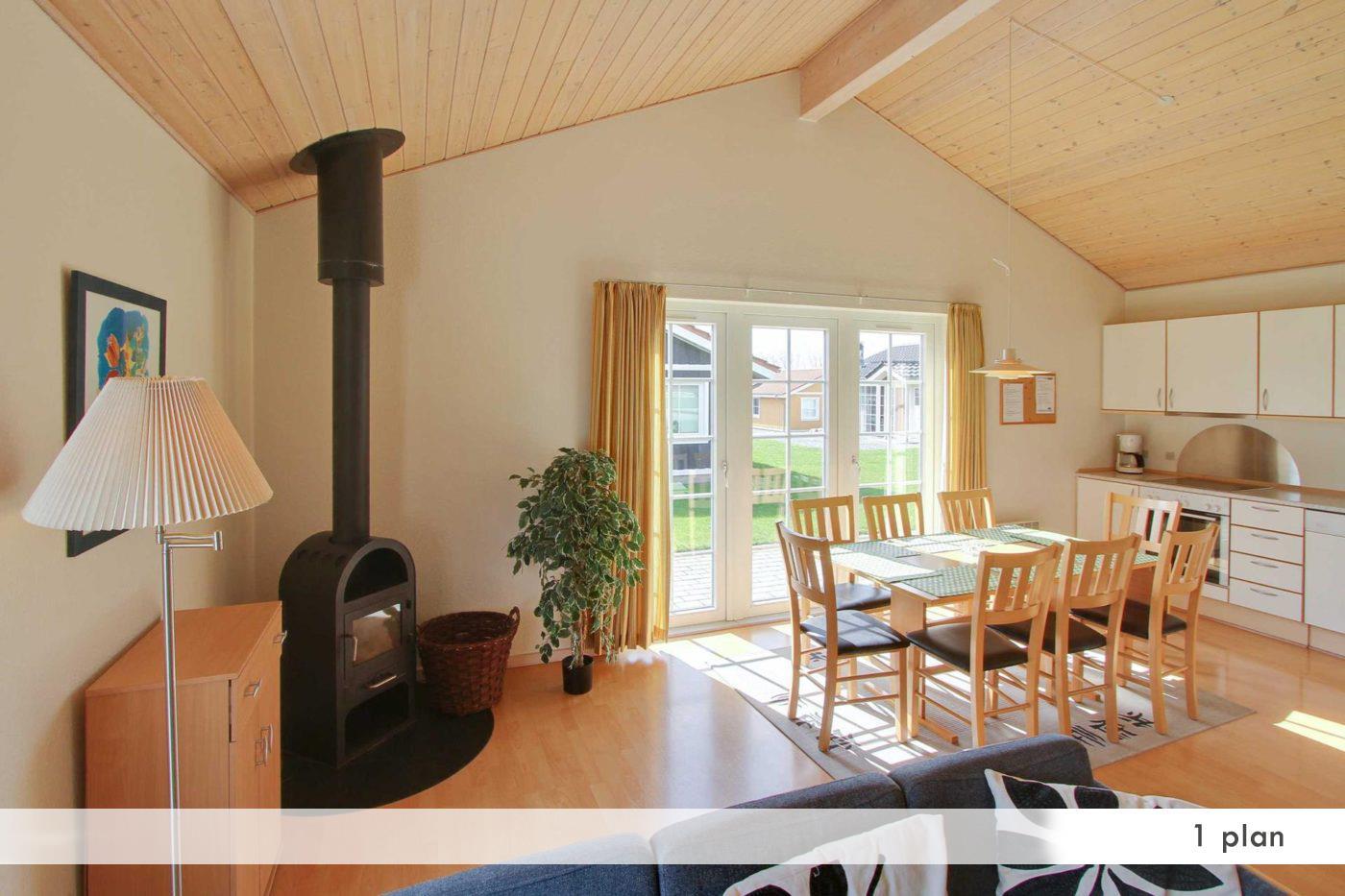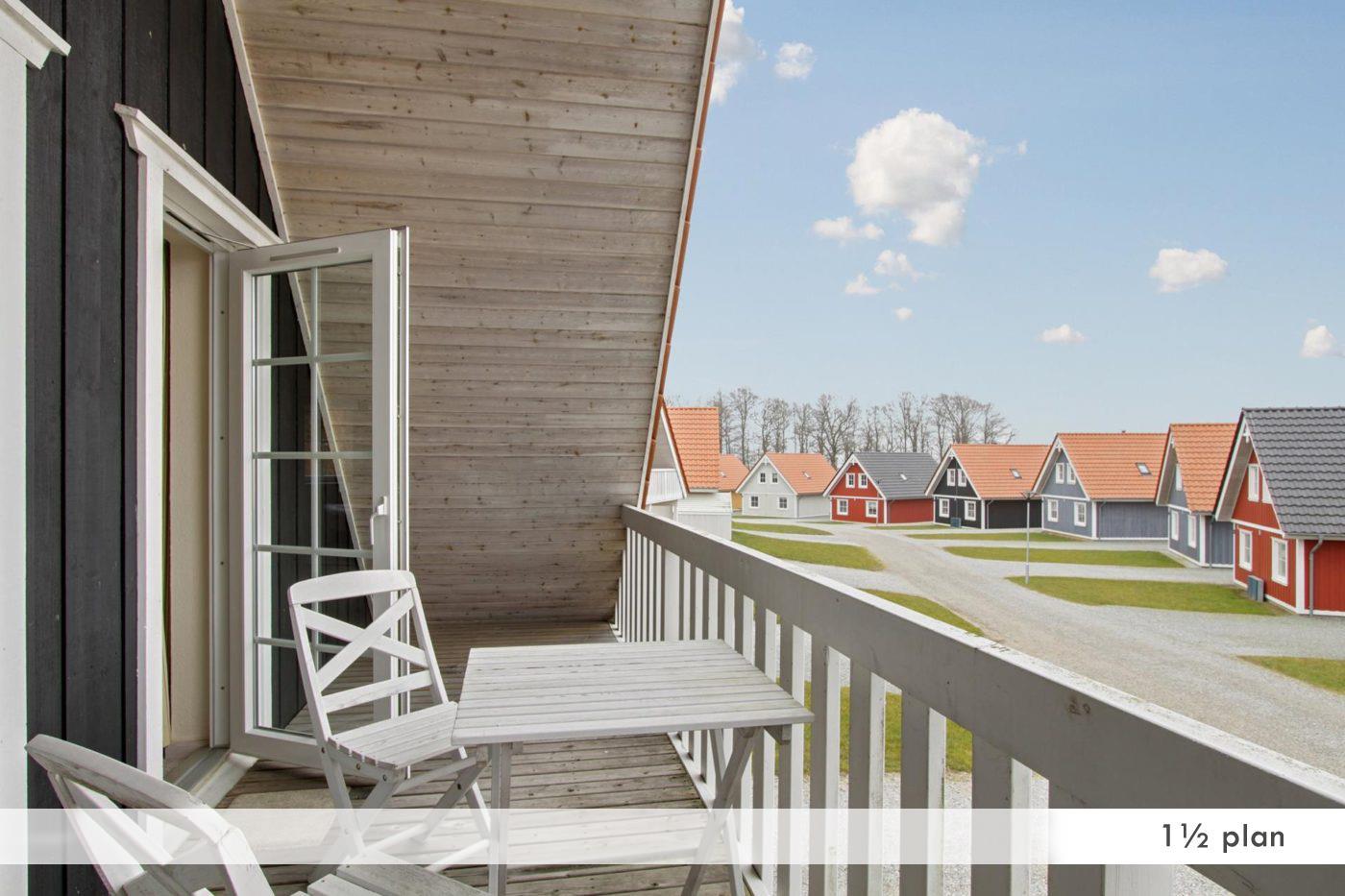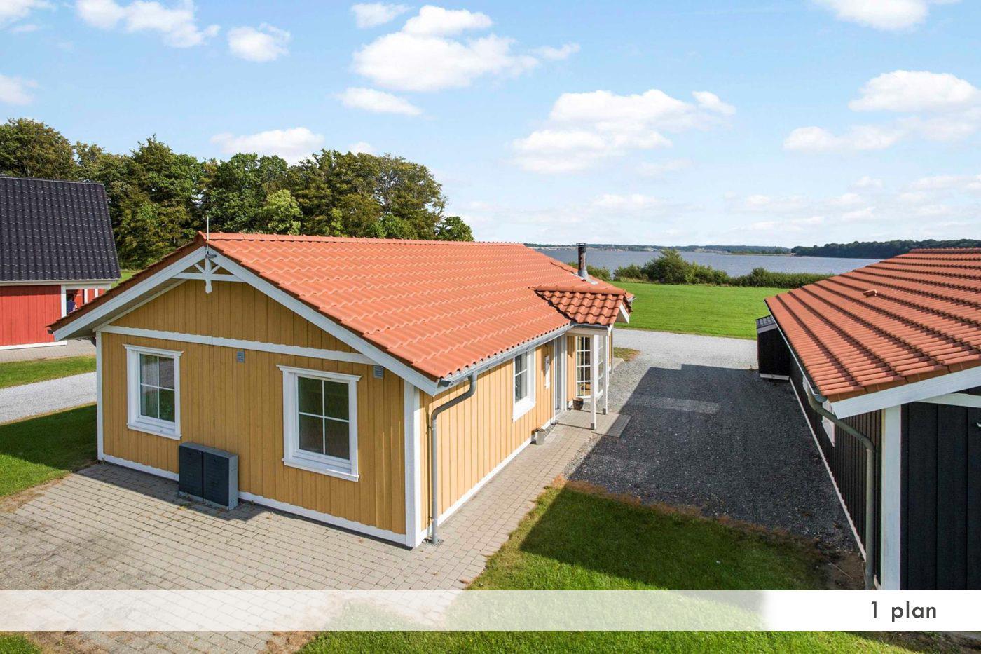 Die geräumigen Ferienhäuser im schwedischen Stil sind ca. 100 m² groß und können sowohl als einstöckige als auch als anderthalbstöckige Häuser gemietet werden. Alle Häuser verfügen über vier Schlafzimmer, eine Sauna, einen Whirlpool und eine voll ausgestattete Küche. Die Häuser haben einen Holzofen, Grillausstattung und eine Terrasse/Balkon mit Blick auf das Wasser.