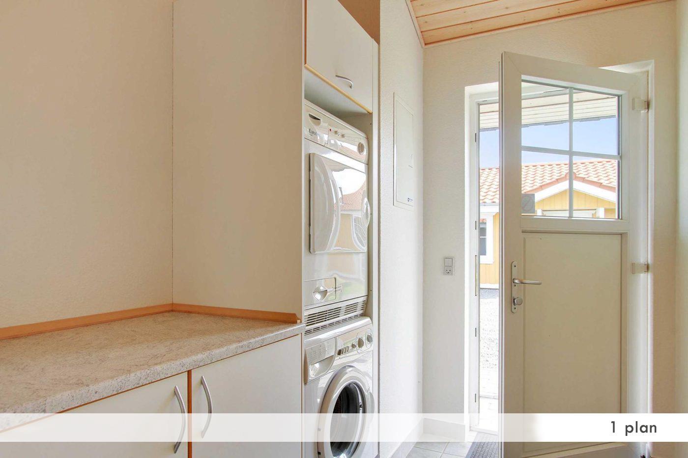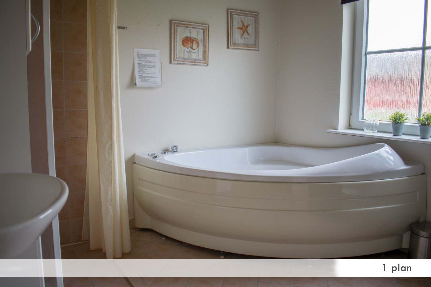 Bathroom with a jacuzzi, sauna and floor heating. Washing machine, tumble dryer, vacuum cleaner.