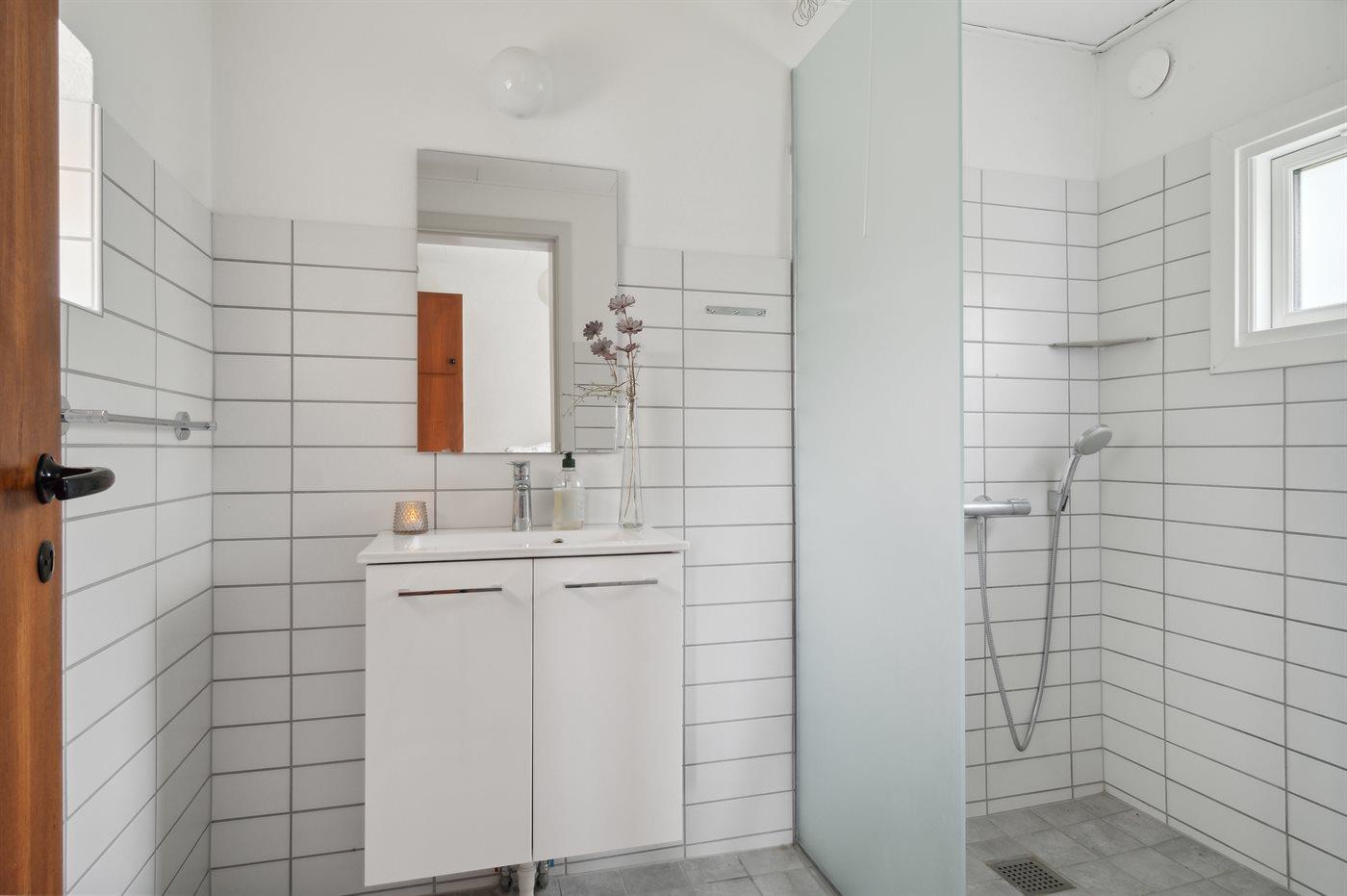 Es gibt 1 Badezimmer mit Dusche und 1 Toilette.