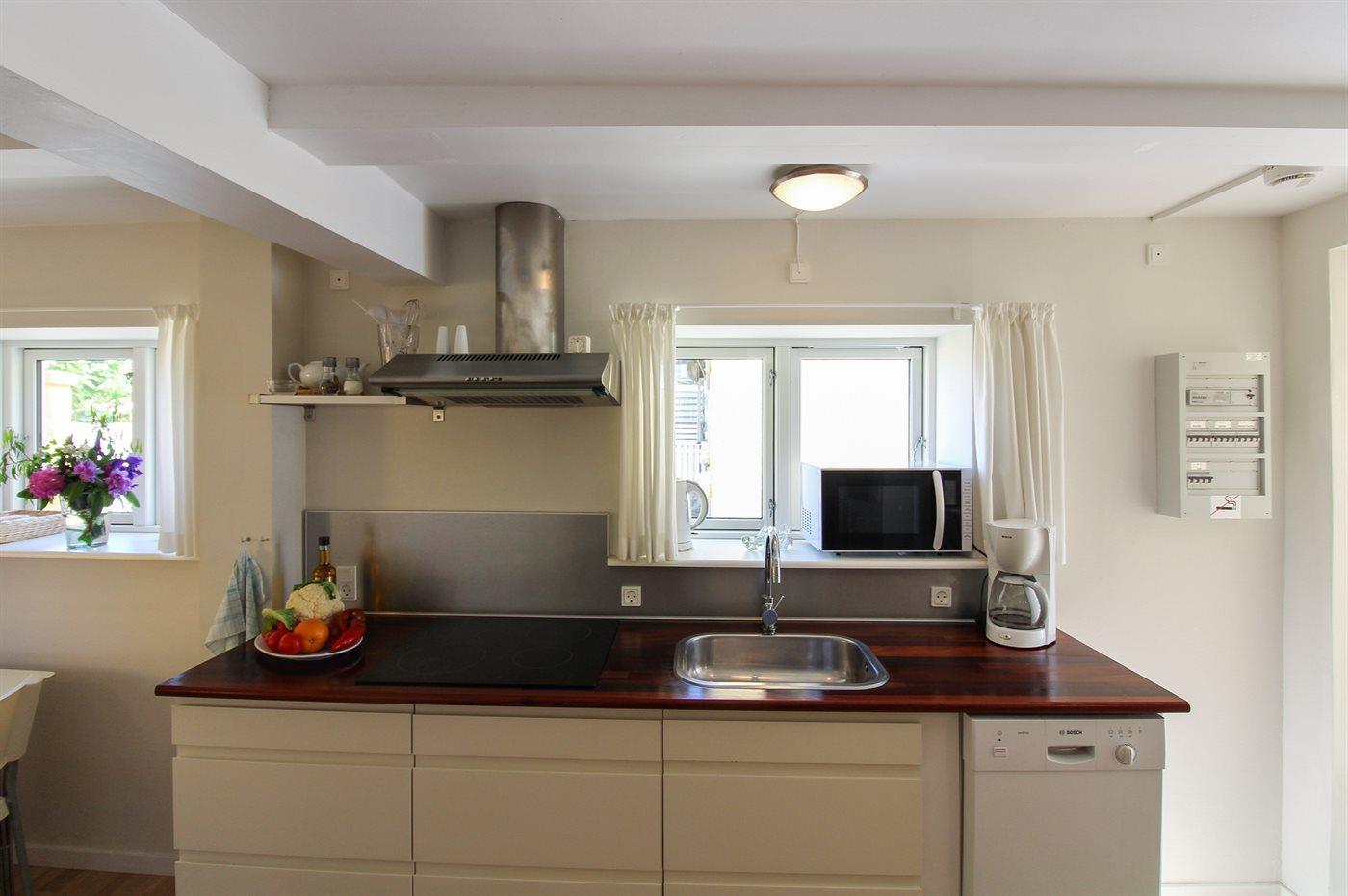 Diese nette und hell eingerichtete Ferienwohnung liegt im Erdgeschoss in dem ehemaligen Kaufmannshof "Gudhjem Købmandsgård" – mitten im charmanten Fischerdorf Gudhjem. Zur Wohnung gehört ein gemeinsamer Sonnenhof mit gemeinsamen Außenswimmingpool. Der Pool ist nicht beheizt und kann vom 1. Juni bis zum 30 September benutzt werden. Übrigens: Die 2 Schlafplätze auf der Doppelschlafcouch befinden sich im Wohnzimmer.