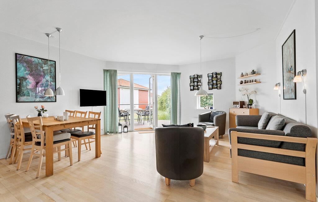 Moderne Ferienwohnung in Gudhjem mit Meerblick, zwei Terrassen und familienfreundlicher Ausstattung.