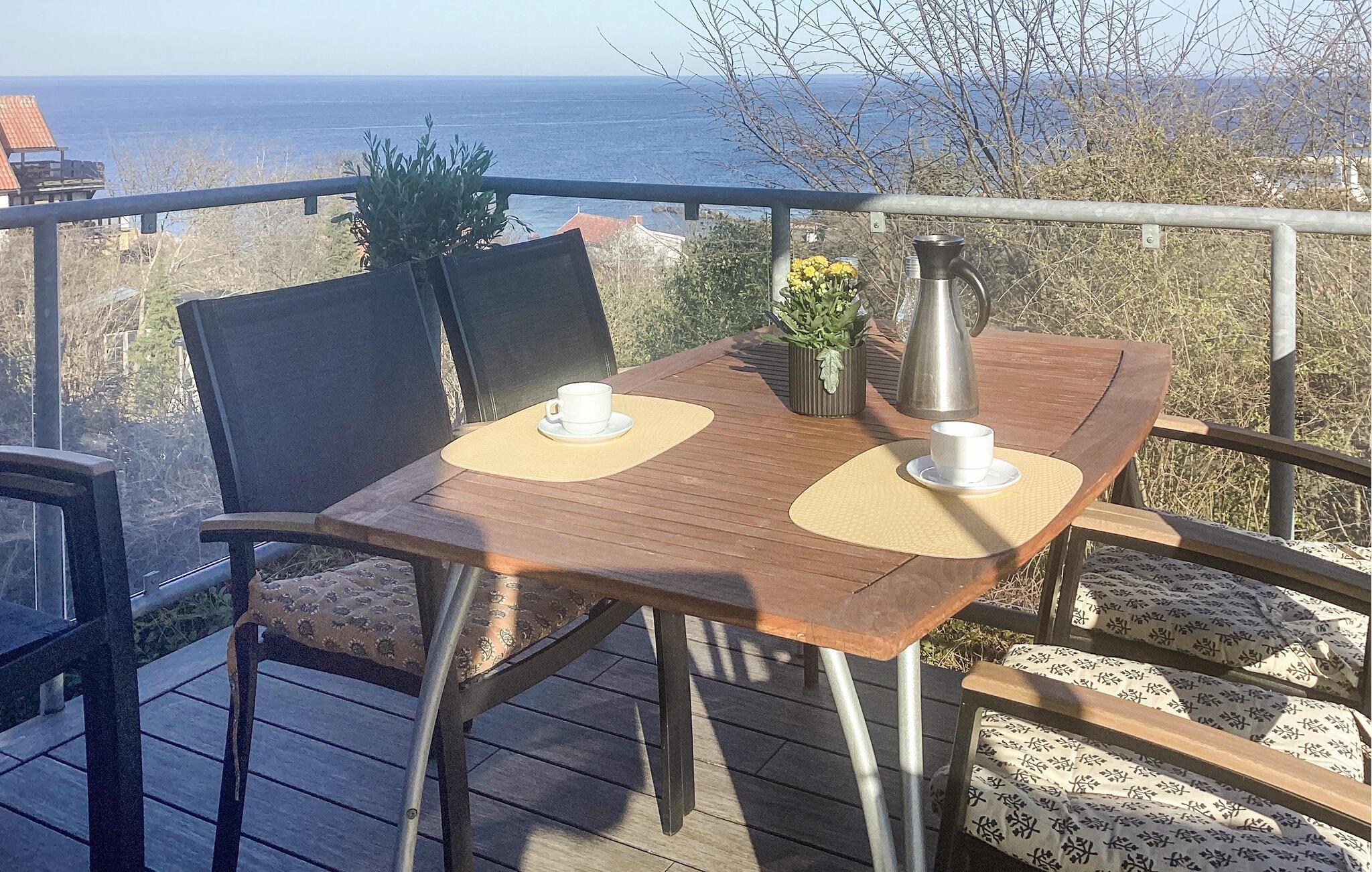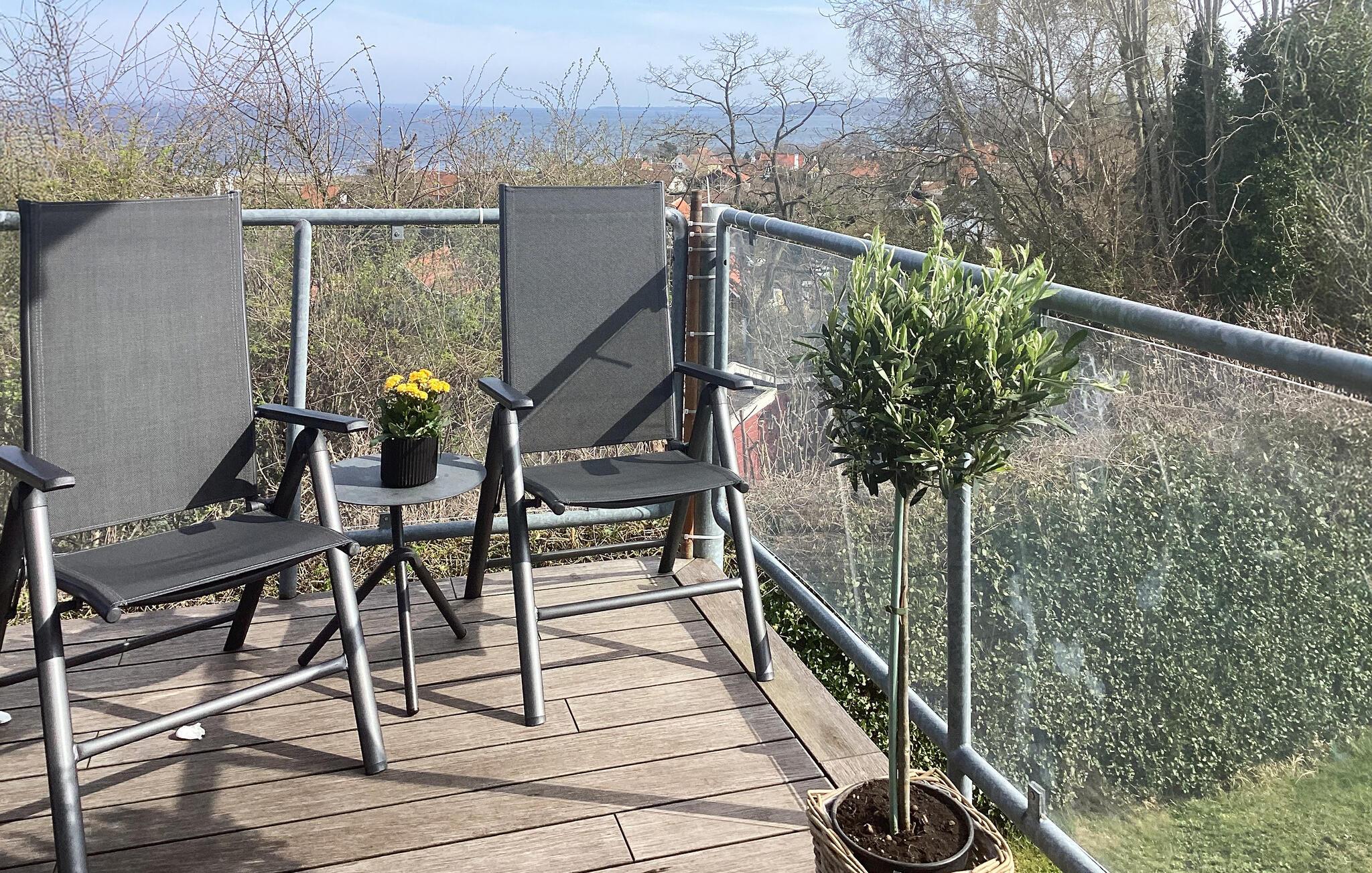 Moderne Ferienwohnung in Gudhjem mit Meerblick und zwei Terrassen für entspannte Urlaubstage.