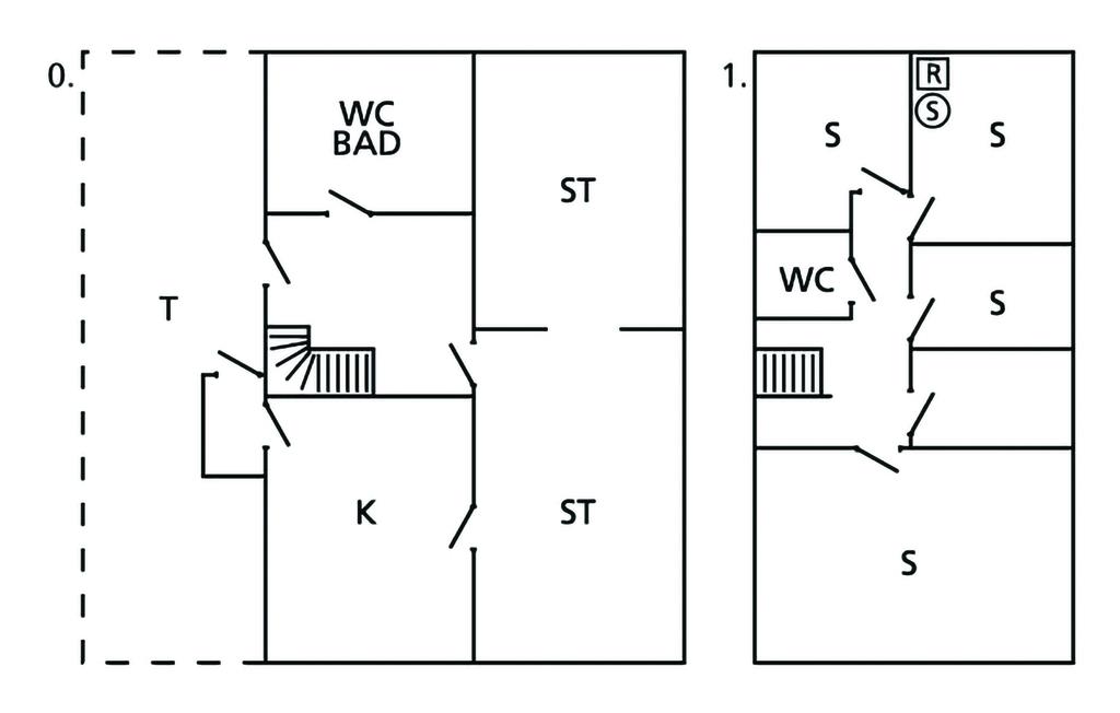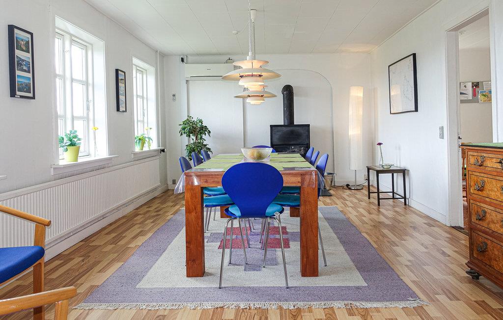 Das Haus verfügt über zwei Wohnzimmer - eines mit gemütlichem Sofa, wo Sie durch Fernsehen, Radio oder Musik unterhalten lassen können, und ein Esszimmer, in dem Sie in der kalten Jahreszeit die Wärme und die gemütliche Atmosphäre des angefeuerten Holzofens genießen können. In der großen, gut ausgestatteten Küche können viele Gäste zusammen kochen. Das Badezimmer verfügt über eine Waschmaschine und einen Trockner. Im 1. Stock finden Sie vier gemütliche Schlafzimmer und eine Toilette.