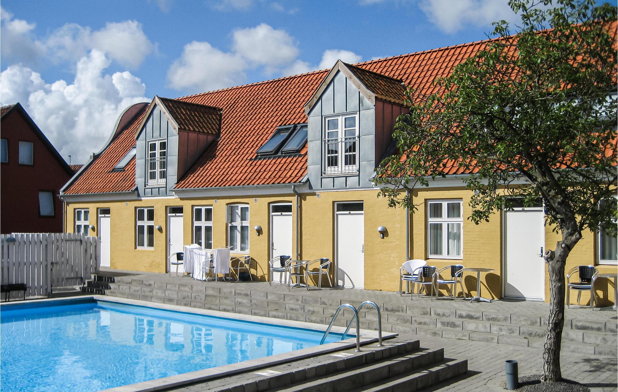 Tolle Ferienwohnung im Komplex Købmandsgården, im Herzen von Gudhjem und mit Zugang zu einem gemeinsamen Pool im Freien.