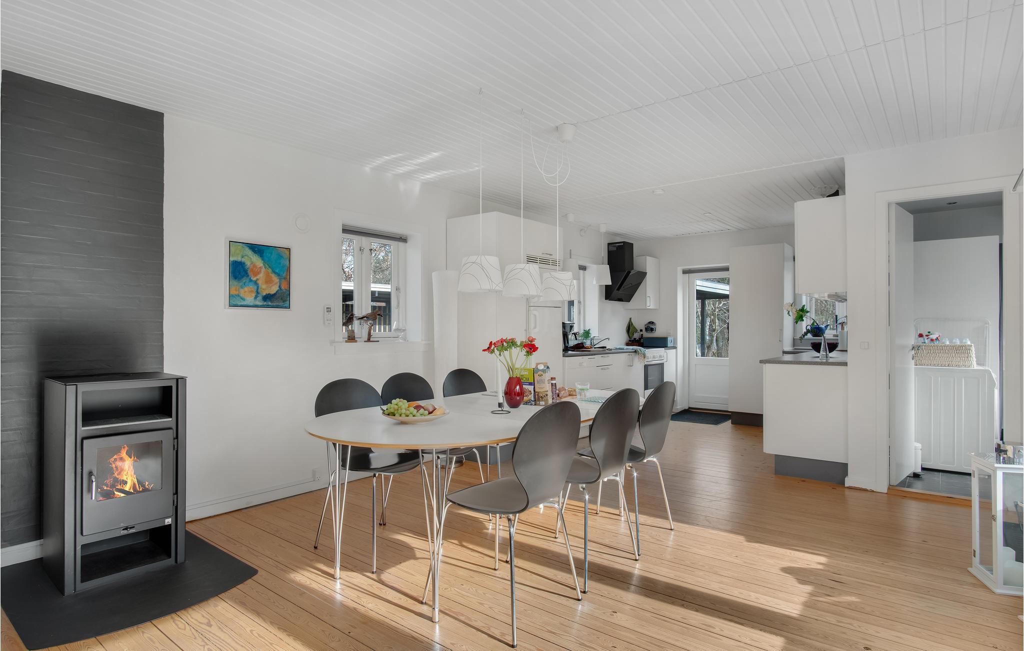 Das einladende Haus eignet sich gut für einen Urlaub mit Kindern. Großflächige Fenster lassen viel Licht in die Räume und machen das Ferienhaus zu einer Wohlfühloase. Speisen Sie gemeinsam mit wunderbarem Blick ins Freie und lassen Sie beim Entspannen auf dem Sofa den Blick über die Umgebung schweifen. Machen Sie es sich nach einem herrlichen Tag am Strand abends zu einem Filmabend auf dem Sofa bequem, feuern Sie im Kaminofen an und genießen Sie die gemütliche Atmosphäre.