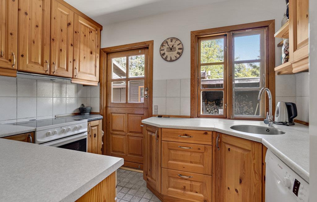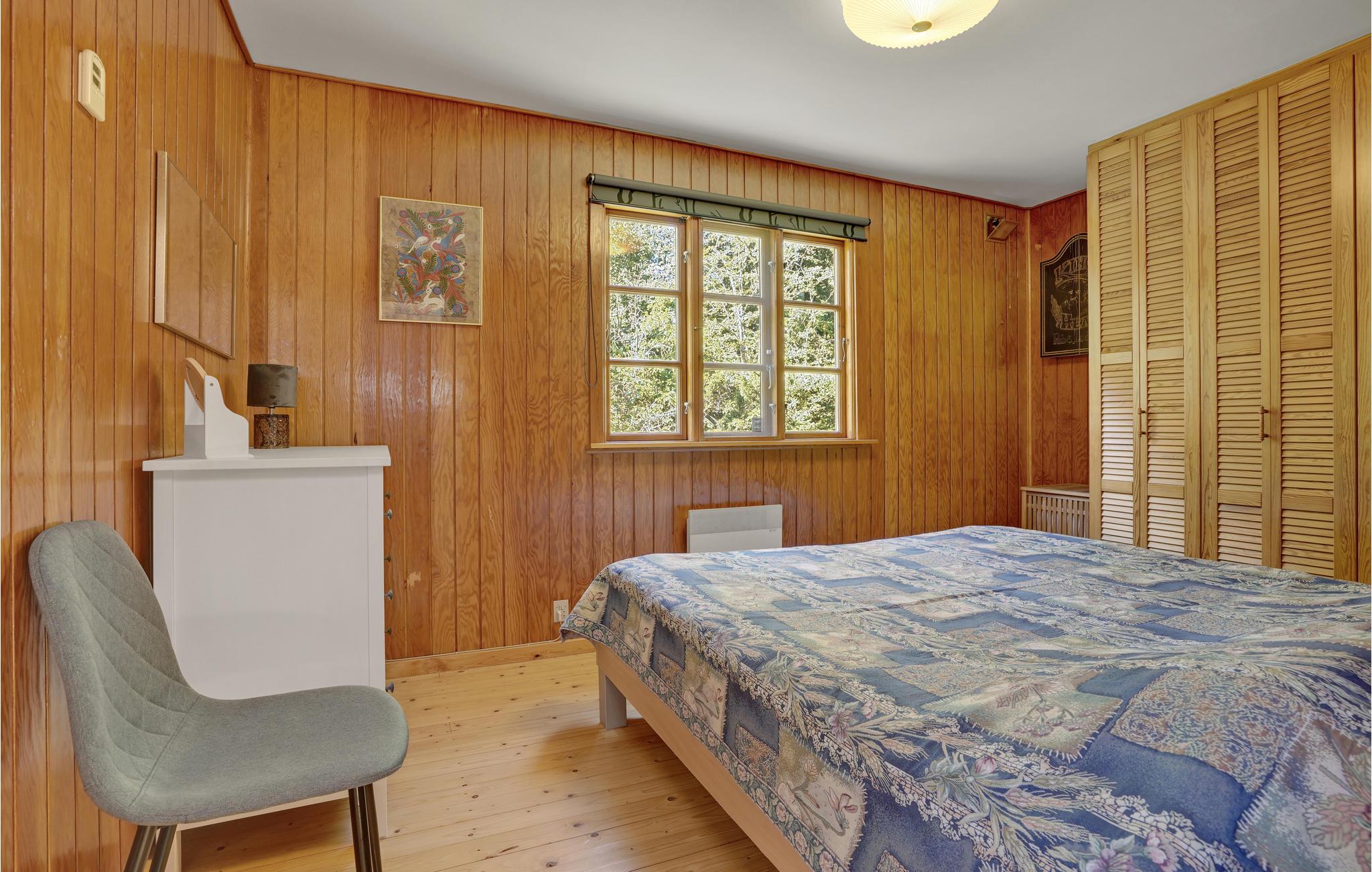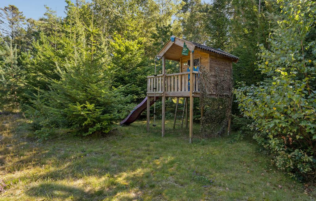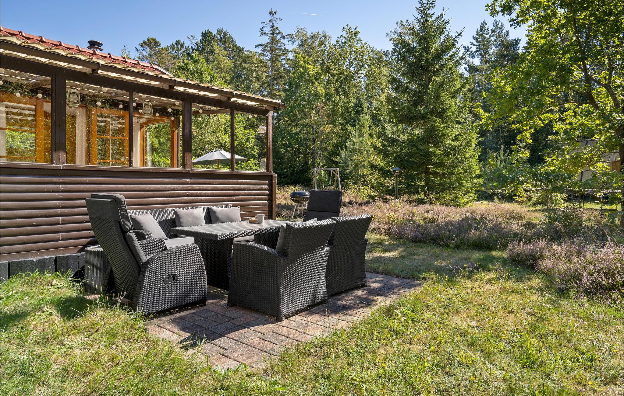 Betreten Sie das gemütliche Holzhaus und fühlen Sie sich wie zuhause. Hier können Sie die Seele baumeln lassen und die Zeit genießen. Im lichtdurchfluteten Wohnzimmer können Sie sich auf dem Sofa austrecken und vom Kamin wärmen lassen, während Sie einen lustigen Film schauen. Auch die anderen Raumen können Sie zusammen die Zeit genießen und zusammen kochen, essen und spielen. Eine Sauna rundet das Angebot des Hauses ab. Verbringen Sie auch gesellige Zeit im Garten. Genießen Sie ein kühles Getränk auf der überdachten Terrasse oder grillen Sie Marshmallows über der Feuerschale. Ihre Kinder können sich auch auf dem Trampolin und den anderen Spielgeräten austoben.