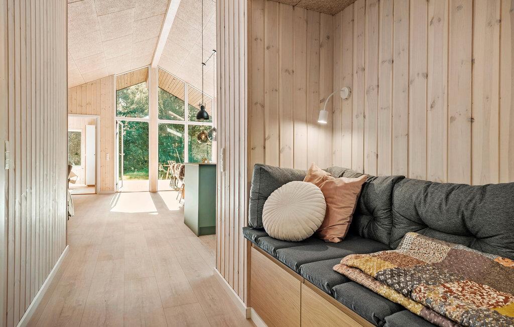 Modernes Ferienhaus mit Sauna und Whirlpool in ruhiger Naturlage nahe kinderfreundlichem Strand.