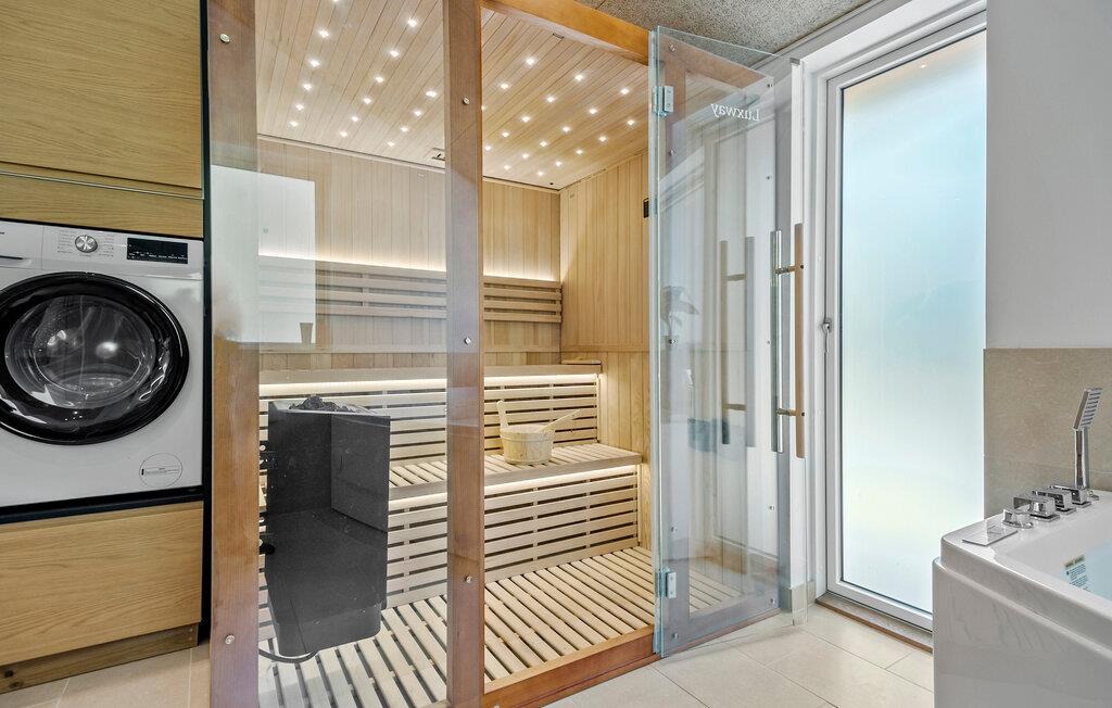Verbringen Sie unvergessliche Tage in diesem stilvollen Ferienhaus mit Sauna, Whirlpool und modernem Design.