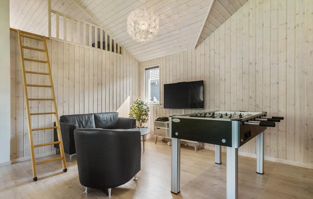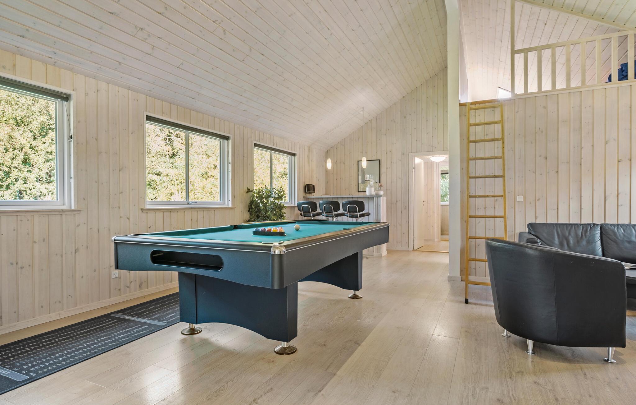 Willkommen in der Umgebung des familienfreundlichen Gudmindrup Strands. Freuen Sie sich auf Ihr geräumiges Ferienhaus, das zahlreiche schöne Annehmlichkeiten für Sie bereithält und Platz für eine große Reisegruppe bietet. Die Inneneinrichtung Ihres Ferienhauses besticht durch die praktisch eingerichtete Küche, den langen Esstisch und die bequeme Sofalandschaft, ideal für gesellige Abende. Hier ist viel Platz zum Speisen, Relaxen und Verweilen. Ihr privater Wellnessbereich mit Pool, Whirlpool und Sauna sorgt für viel Spaß und Entspannung. Oder veranstalten Sie lustige Billard- oder Tischfußballturniere. Wer auch im Urlaub gerne spannende Spiele zocken möchte, für den stehen im Haus Spielkonsolen bereit.