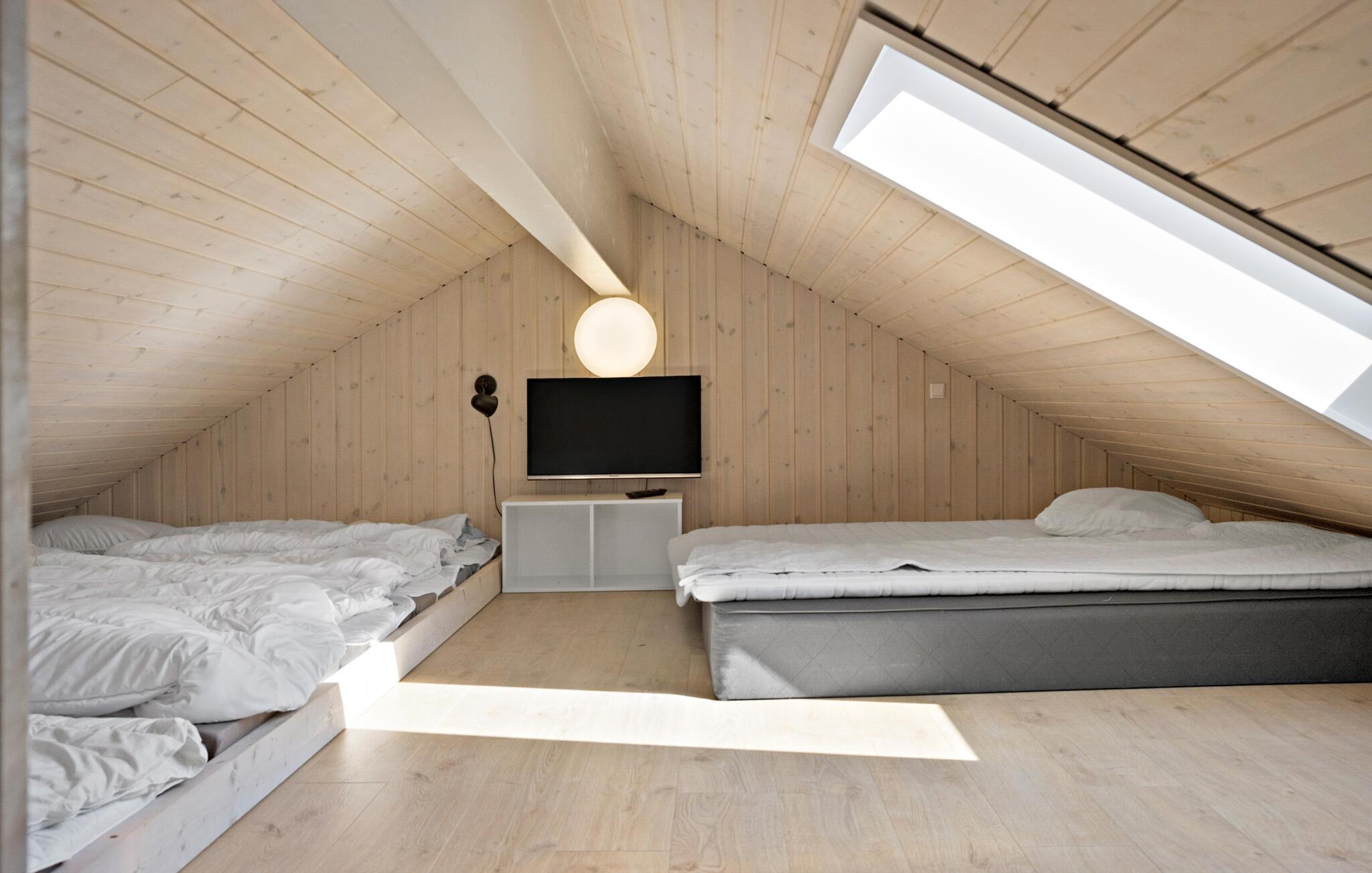 Offener Schlafboden - 6 Schlafmöglichkeiten. (Einzelbett(en)). 2 Schlafmöglichkeiten. (Matratze).