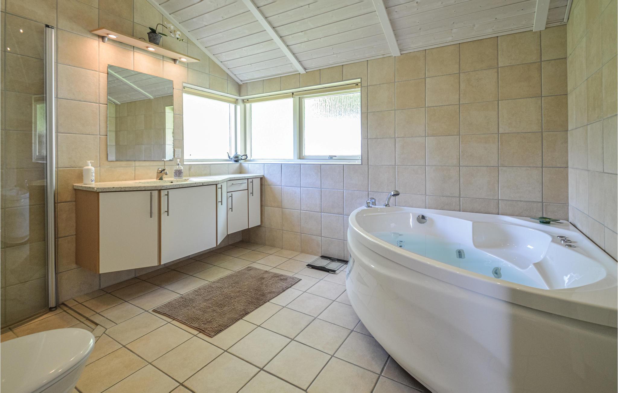 Schönes Ferienhaus in Harbølle auf Møn. Das Haus liegt in einer Sackgasse und in fußläufiger Entfernung zum Strand. Offene Küche in Verbindung mit dem Wohnzimmer und Zugang zur überdachten terrasse. Großes, gefliestes Bad mit einem Whirlpool für zwei Personen. Schöne ZImmer mit guten Betten. Die Terrasse ist mit bequemen Gartenmöbeln und Sonnenliegen ausgestattet und lädt zum Entspannen ein. Besuchen Sie Stege und kaufen Sie ein oder genießen Sie die maritime Atmosphäre am Hafen. Auch das Geocenter Møn ist einen Besuch wert. Hier können Sie traumhafte Natur erleben und es gibt die Möglichkeit für zahlreiche Aktivitäten, darunter Wandern und Radfahren. Als Angler haben Sie gute Chancen von den Küsten.
