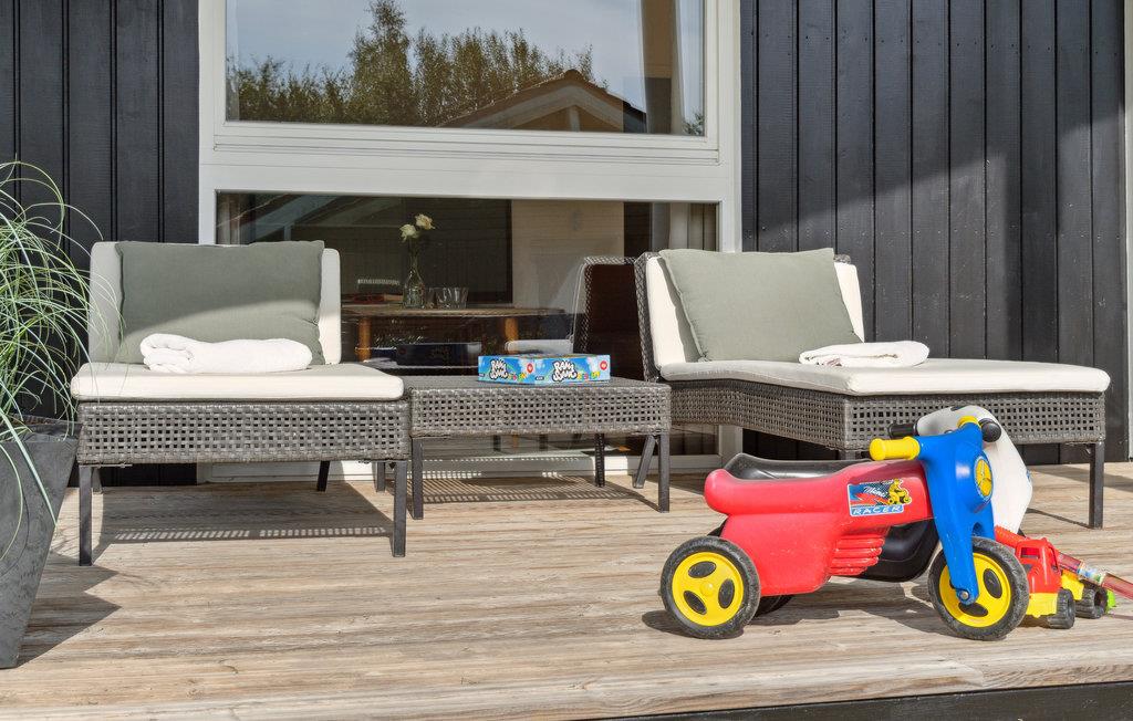 Gemütliches Ferienhaus auf Møn mit Sauna, Gartenmöbeln und Strandnähe für erholsame Urlaubstage.