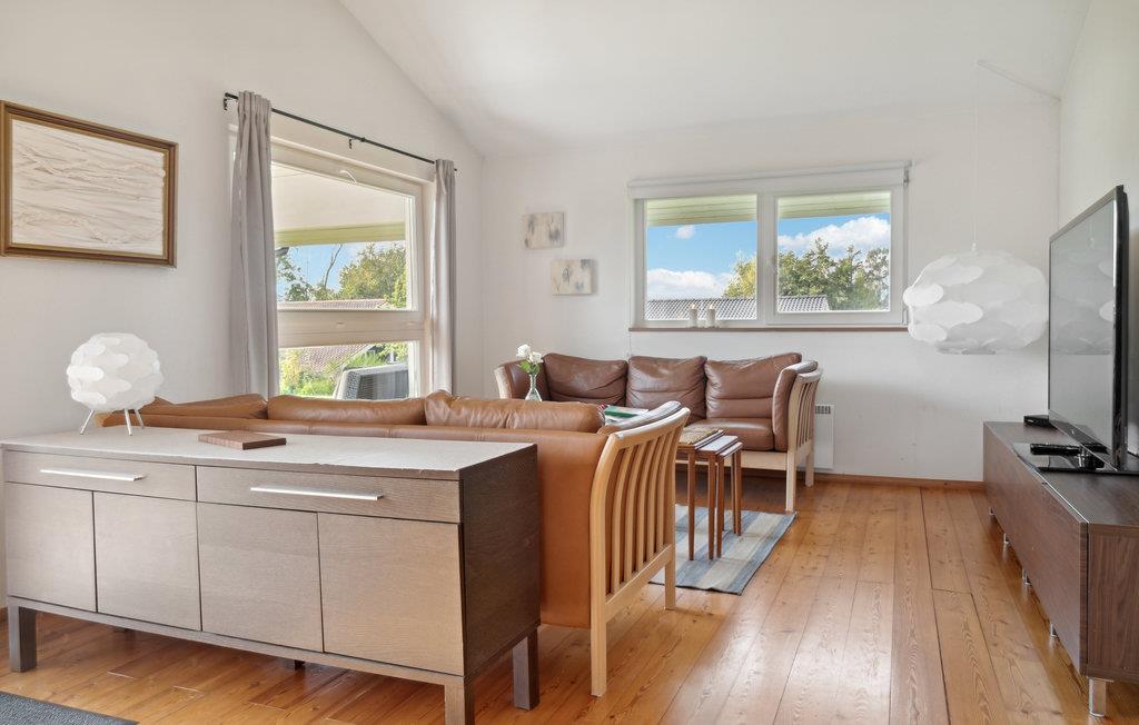 Schönes Ferienhaus in Hårbølle auf der Insel Møn. Das Haus liegt am Ende einer Stichstraße und der Strand ist leicht zu Fuß erreicht. Von der offenen Wohnküche, die mit dem Wohnzimmer verbunden ist, haben Sie Zugang zur überdachten Terasse. Die hochwertigen Gartenmöbel laden zu gemütlichen Stunden an der frischen Luft ein.