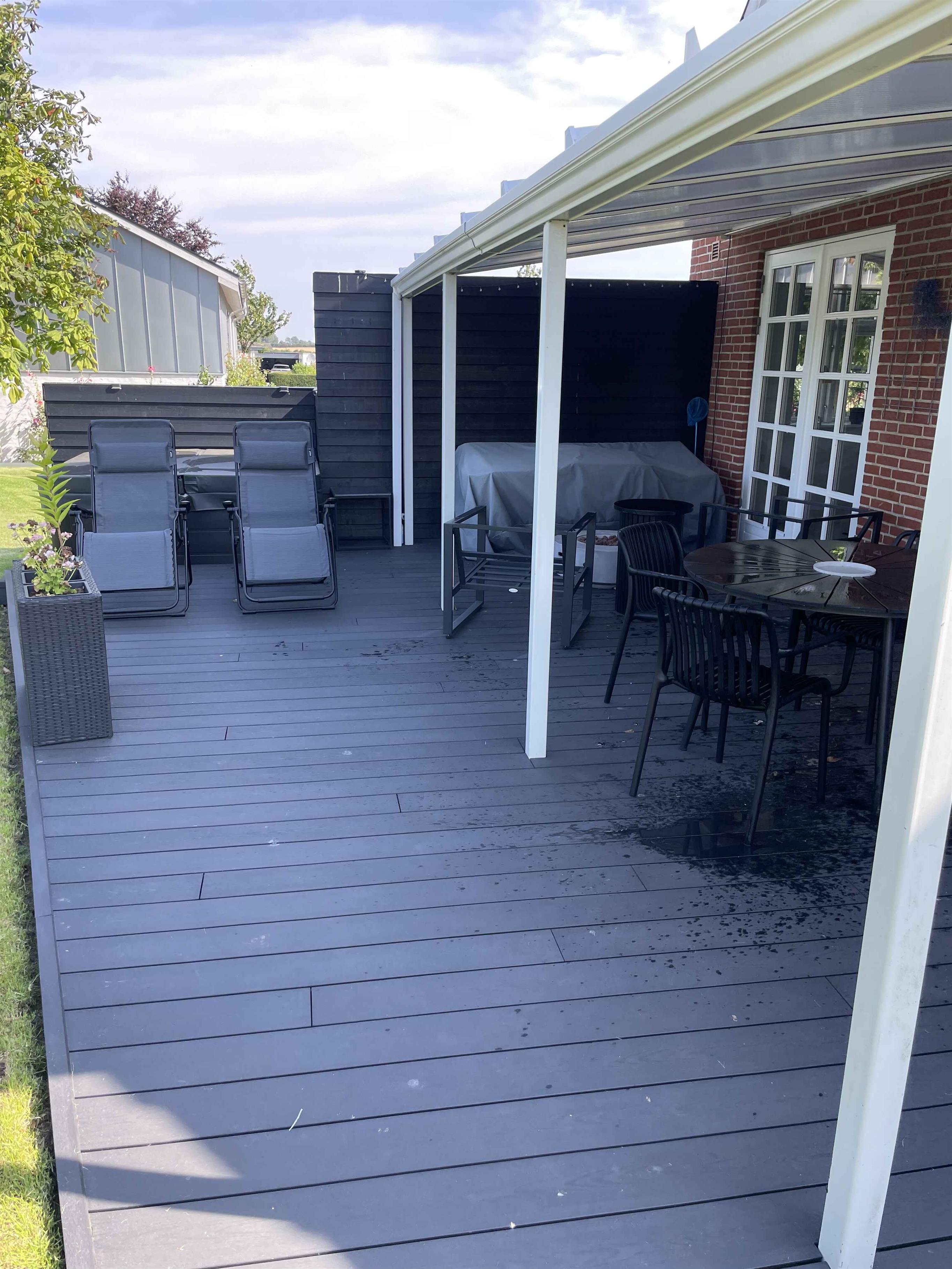 Dieses luxuriöse Landhaus befindet sich in einwandfreiem Zustand und bietet alles, was man sich für einen komfortablen Urlaub wünschen kann. Das Haus ist im modernen Stil eingerichtet, wobei Funktionalität und Ästhetik im Vordergrund stehen. Top-Ausstattung: *Außen-Spa* *Sauna* *Fitnessraum* *Neue verstellbare Betten von hoher Qualität* *Großer Garten in malerischer Umgebung, in der Nähe des Strandes und der Stadt* Das idyllische Landhaus ist perfekt für den idealen Sommerurlaub, in dem mehrere Familien an einem Ort zusammenkommen können. Mit 3 Schlafzimmern und der Möglichkeit, 8 Schlafplätze zu nutzen, bietet es viel Platz zum Entspannen und Beisammensein. Die große, moderne Küche lädt zum gemeinsamen Kochen ein, und die geräumigen Wohnbereiche schaffen eine angenehme Atmosphäre. Das Haus verfügt über ein Fitnessstudio und eine Sauna, in denen Sie sich verwöhnen können, sowie einen Außen-Whirlpool, der es Ihnen ermöglicht, in der Natur zu entspannen. Die Umgebung ist ruhig und ideal für Wanderungen und Radtouren, und die nahegelegene Küste lädt zu Strandbesuchen und Aktivitäten ein. Nur 4 km bis zum Wasser können Sie schnell die Frische des Meeres und die Schönheit der Natur genießen. Die Region bietet auch lokale Geschäfte, gemütliche Restaurants und kulturelle Erlebnisse in Haderslev. Mit seinen 279 m² bietet das Haus sowohl Privatsphäre als auch viel Platz für gemeinsames Beisammensein. Hier können Sie modernen Komfort mit der schönen Natur verbinden und unvergessliche Urlaubserlebnisse schaffen. Wir bitten darum, dass Handwerksgruppen oder Jugendgruppen keine Aufenthalte bei uns buchen. Achtung: Wird nicht für gewerbliche Nutzung vermietet.