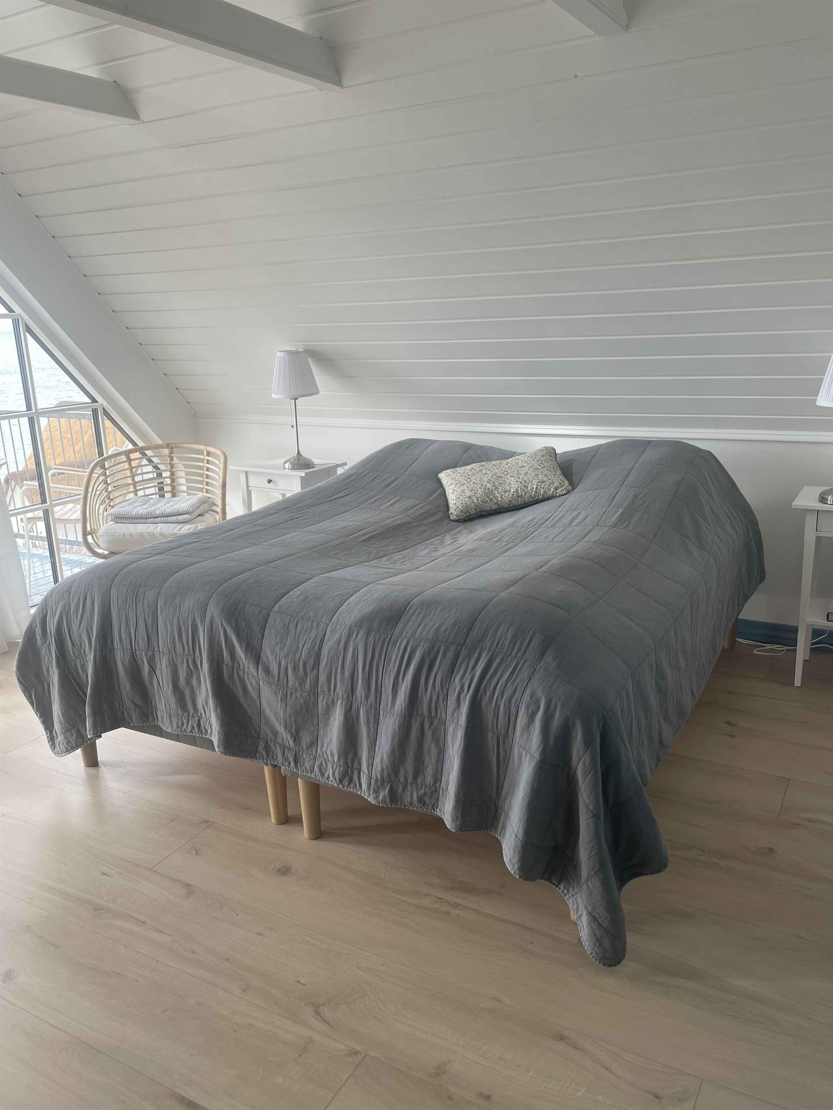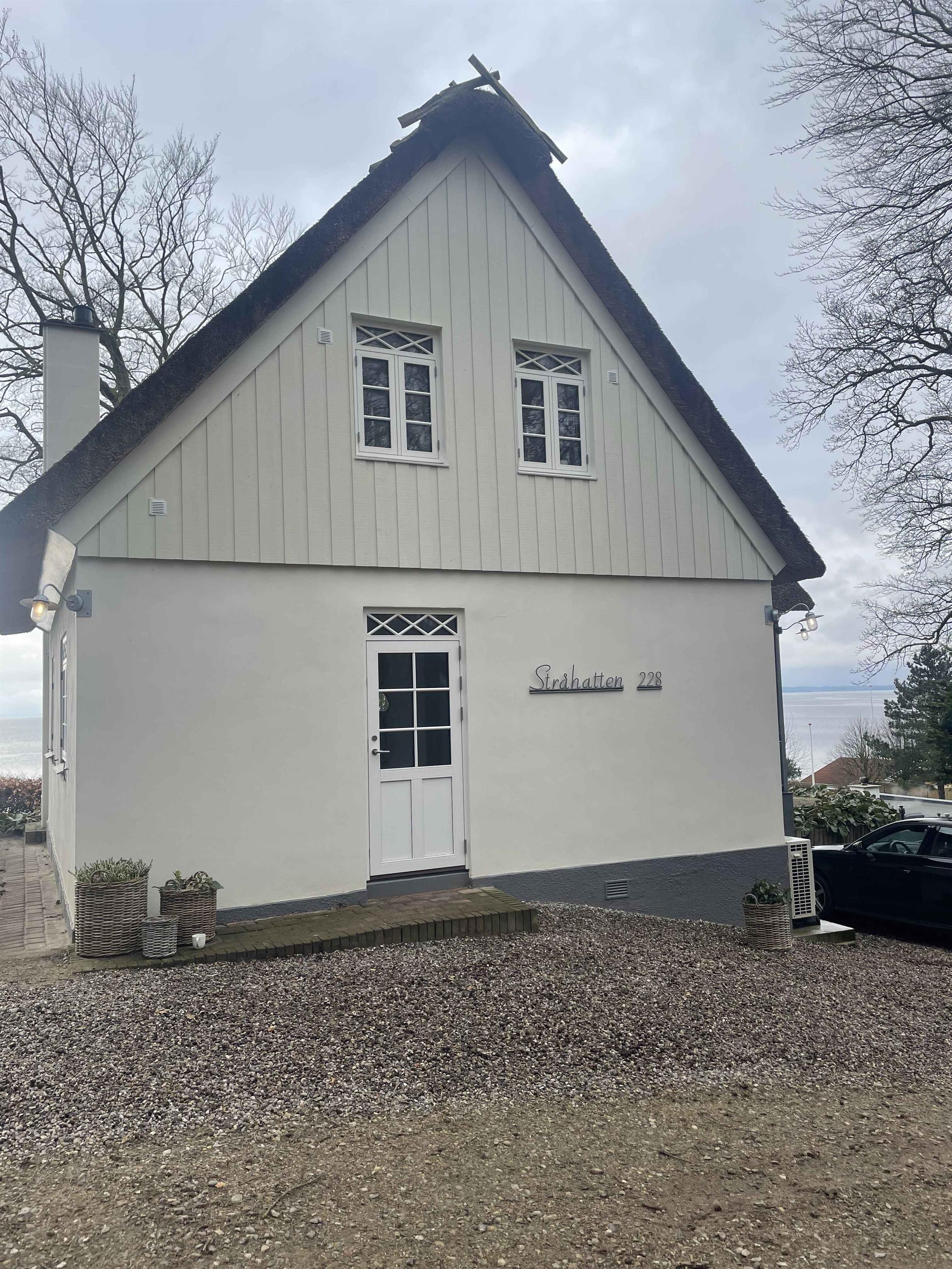 Willkommen in einem Ferienhaus, wo Natur und Meer aufeinandertreffen. Das Haus ist 98 m² groß und bietet drei Schlafzimmer mit sechs Schlafplätzen. Hier finden Sie eine geräumige Basis für Urlaubstage nahe am Strand und Wald. Auf einem Hügel bei Hejsager Strand/Kelstrup Strand in der Nähe von Haderslev liegt „Stråhatten“, ein charmantes Reetdachhaus aus dem Jahr 1927. Der Wald umgibt das Haus auf einer Seite, und auf der Rückseite eröffnet sich ein beeindruckender Panoramablick. Das Ferienhaus wurde kürzlich mit Liebe zu den originalen Details und im Stil eines klassischen Badehotels renoviert, um eine gemütliche und entspannende Atmosphäre zu schaffen. Vom Wohnzimmer, dem Wintergarten und dem Balkon im ersten Stock genießen Sie einen herrlichen Blick auf den Kleinen Belt, beobachten Vögel, Schweinswale und Seehunde und erleben Sonnenaufgänge und Sonnenuntergänge. Das 98 m² große Haus verfügt über eine charmante Landhausküche, ausgestattet mit allem, was Sie für die Zubereitung leckerer Mahlzeiten benötigen. An warmen Sommerabenden können Sie auf der Terrasse grillen und die Aussicht genießen. Außerdem gibt es ein neues Badezimmer im Badehotel-Stil und ein Wohnzimmer, das zum Entspannen einlädt. Im Wintergarten können Sie gemeinsam speisen und den Blick auf Strand, Meer und Wald genießen. Im ersten Stock befinden sich zwei kleinere Schlafzimmer und ein großes Hauptschlafzimmer mit Zugang zu einem Balkon – perfekt für den Morgenkaffee. Draußen laden Sonnenliegen und mehrere kleine Terrassen zum Verweilen ein. Nur 50 Meter trennen Sie vom Strand. Der Garten ist auf verschiedenen Ebenen gestaltet und bietet viele gemütliche Plätze. Der angrenzende Wald lädt zu Spaziergängen, Radtouren und Naturerlebnissen ein. Die Umgebung bietet zahlreiche Möglichkeiten: kinderfreundliches Baden, Naturpfade und ein Besuch der historischen Altstadt von Haderslev. Das letzte Stück zum Haus ist etwas steil, aber die Aussicht entschädigt reichlich. Dieses Ferienhaus ist ideal für alle, die Nähe zum Wasser, Natur und Erholung suchen. Achtung: Wird nicht für gewerbliche Nutzung vermietet.