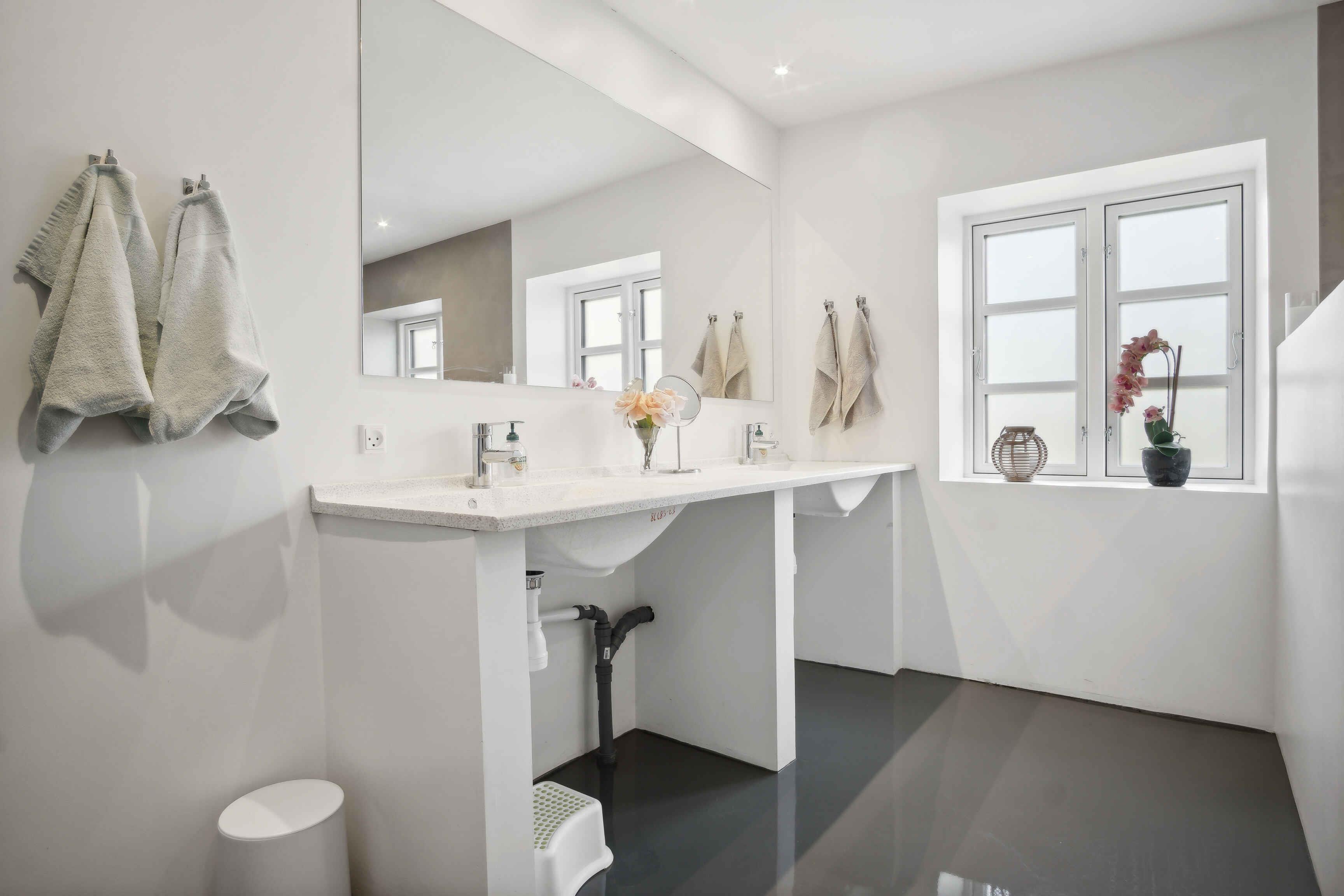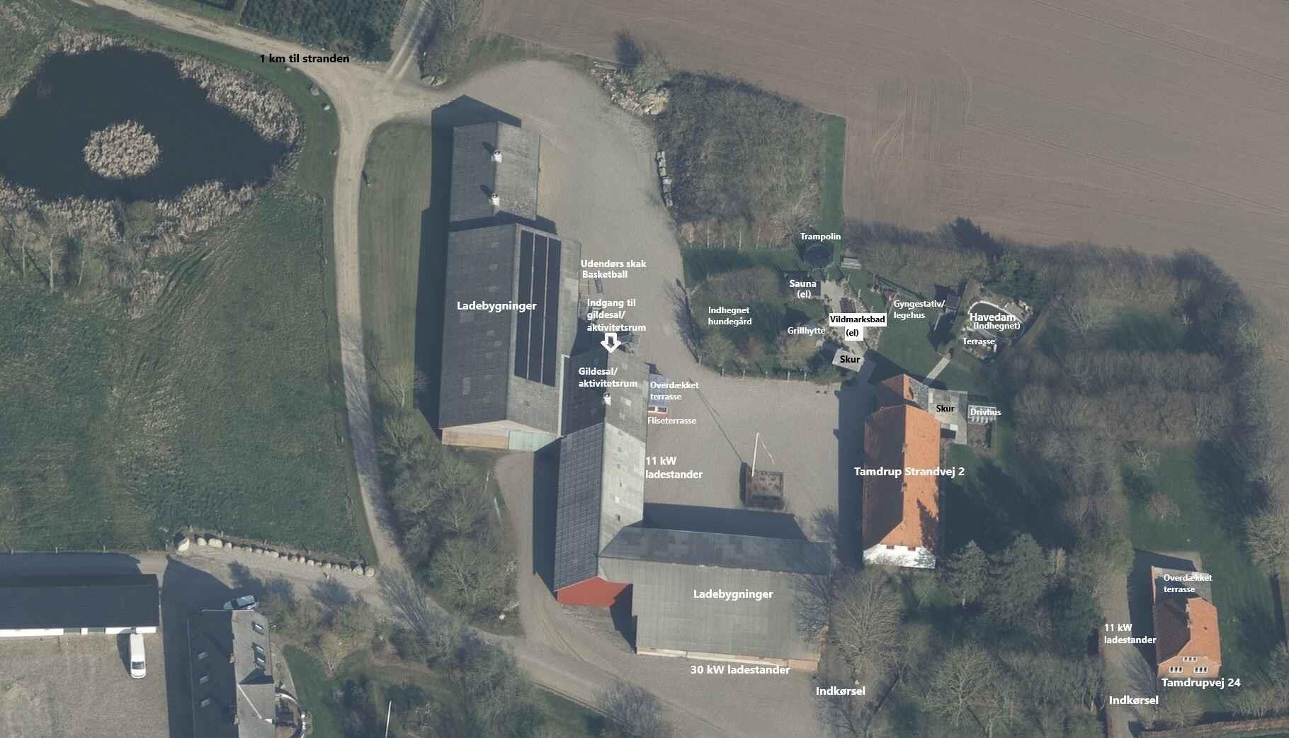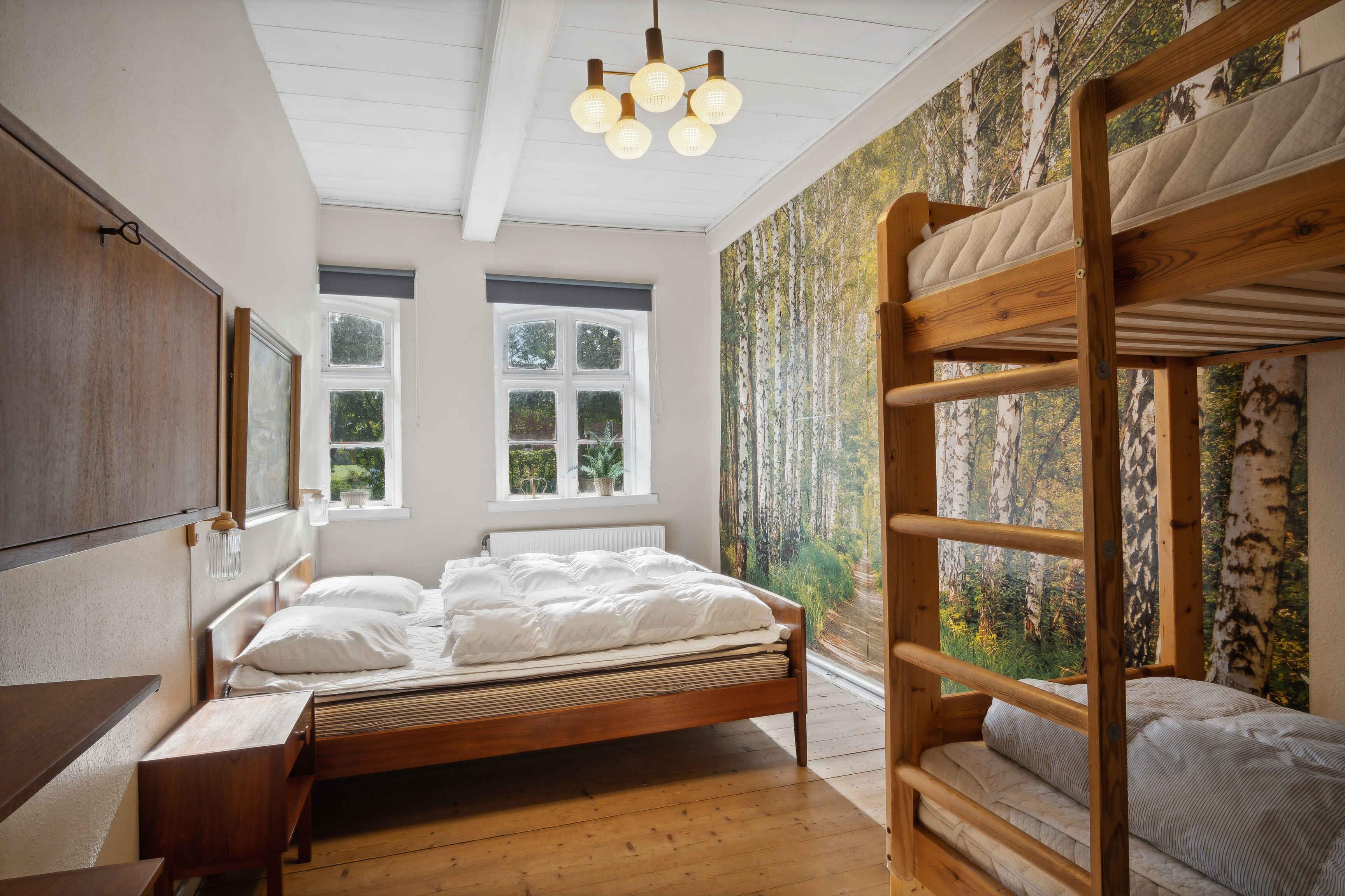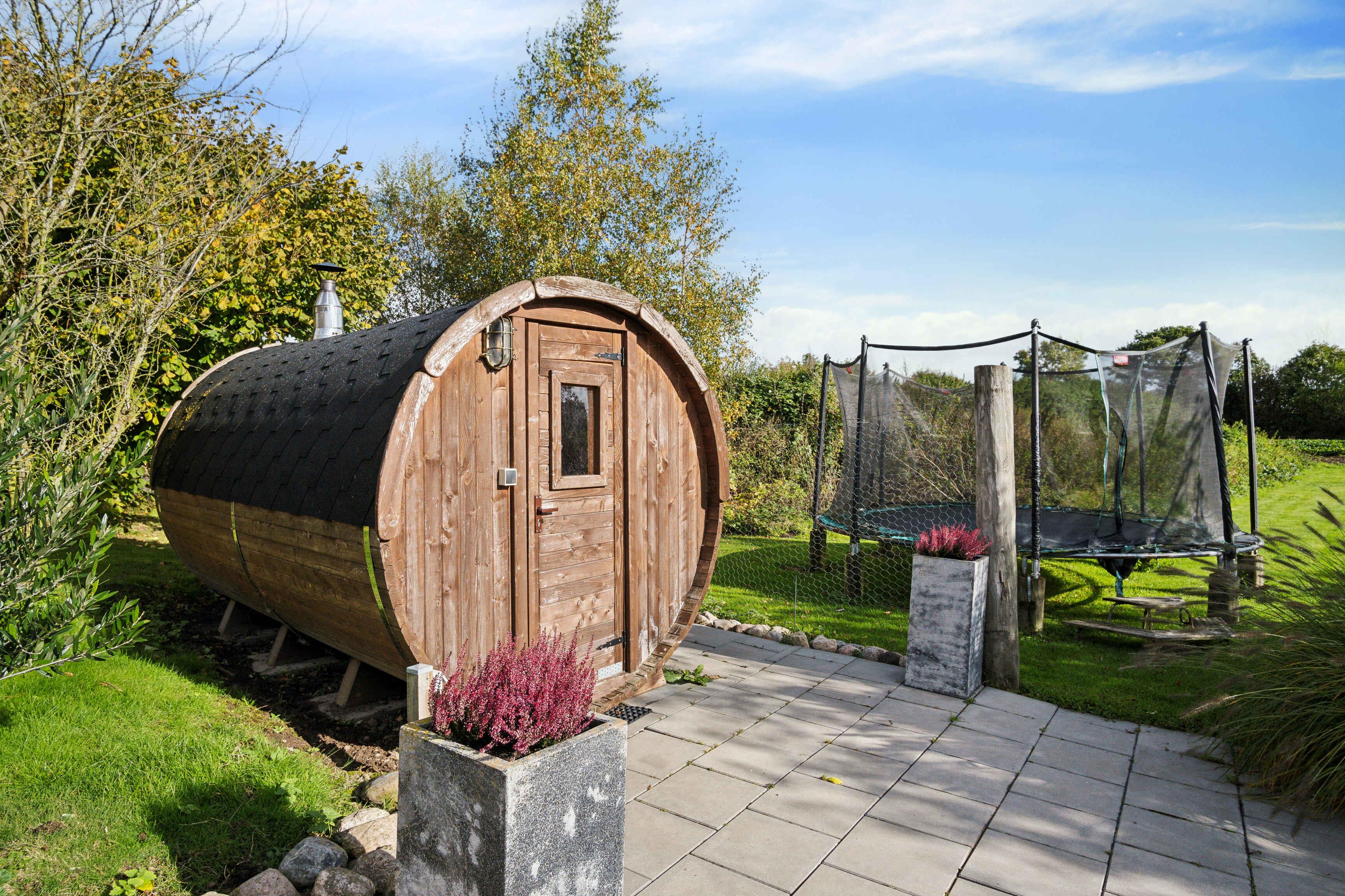 230 m2 Bauernhaus für landwirtschaftliches Anwesen im 1. Stock aus dem Jahr 1850 mit großem Hof und Garten. Das Bauernhaus bietet viel Platz mit insgesamt 16 Zimmern. Sie erhalten 3 großzügig authentisch eingerichtete Wohnzimmer (einschließlich TV mit Chromecast), 4 Schlafzimmer, 1 Spielzimmer (mit der Möglichkeit von zusätzlichen Betten auf Schlafsofa), eine sehr gut ausgestattete Küche mit einer Sage Barista Pro Espressomaschine, Kenwood-Mixer, Mixer, Fondue und vielem mehr sowie 2 große neue Badezimmer mit Fußbodenheizung (errichtet im Jahr 2020 und 2022) und einem Toilettenraum. Das Bauernhaus ist im ursprünglichen charmanten Stil mit zeitgemäßen Möbeln und älteren Gemälden hauptsächlich aus der Region eingerichtet. Der Hof wird von einer neuen Luft-Wasser-Wärmepumpe beheizt (errichtet im Jahr 2021). Die große 26 kWp Solaranlage des Hofes, die auf dem Dach eines der Betriebsgebäude installiert ist, trägt erheblich zur Stromerzeugung auf nachhaltige Weise bei. Es stehen 2 Ladestationen für Hybrid-/Elektroautos zur Verfügung, eine private 11 kW AC-Ladestation (im Hof gelegen) und eine öffentliche 30 kW DC-Schnellladestation (im Westen des Betriebsgebäudes zur öffentlichen Straße hin gelegen) - Nutzung über die Monta-App. Draußen gibt es viel Platz. Es gibt einen etwa 2.000 m2 großen Schotterhof, eine überdachte Terrasse mit 10-12 Sitzplätzen und Terrassenheizung sowie Gas- und Holzkohlegrill, eine abgelegene Terrasse (nicht überdacht) mit 10-12 Sitzplätzen und eingezäuntem Lagerfeuerplatz und Gartenteich sowie einen etwa 4.000 m2 großen Garten, der in mehrere Abschnitte unterteilt ist. Die Gartenabschnitte umfassen Obstbäume, Beerensträucher und ein Gewächshaus mit saisonalem Gemüse. Für Kinder gibt es einen großen Trampolin mit Sicherheitsnetz (4,30 Meter), 2 x Fußballtore, 2 x Wippen und einen riesigen Schaukel mit fünf verschiedenen Schaukeln, Kletterseil und Rutsche. Darüber hinaus stehen verschiedene Kinder- und Erwachsenenfahrräder sowie Monddrahtautos, Trettraktoren usw. zur Verfügung. Im Garten gibt es auch einen abgegrenzten Bereich mit einem neuen 2,25 Meter großen elektrisch beheizten Wildbad mit Wärmehaube (errichtet im Jahr 2023), einem 3,5 Meter großen holzbefeuerten Saunafass (anno 2021), einer Außendusche mit Warmwassertank und einer großen Grillhütte für 12 Personen (anno 2022). Während des Aufenthalts steht eine bestimmte Menge Brennholz frei zur Verfügung. Auf dem alten Heuboden des Hofes im 1. Stock wurde im Herbst 2023 ein 100 m2 großer isolierter und beheizter (2 x Luft-Luft-Wärmepumpen) Aktivitätsraum eingerichtet. Hier finden Sie ein Billardtisch, Tischfußball, Airhockey, 2 x Darts (normal/elektrisch), Shuffleboard, Pokertisch (6 Sitzplätze), Kreativtisch (4 Sitzplätze und 1 Trip Trap Juniorstuhl), LEGO, Spielzeug, Brett- und Kartenspiele, TV und Projektor mit Chromecast, Xbox 360 und Xbox One mit vielen Spielen sowie Sitzbereiche und eine große Bar in der Mitte des Raumes mit 7 Barhockern. Vom Grundstück aus genießen Sie Meerblick über Lillebælt am Mund des Haderslev Fjords. Der Hof liegt auf der Route "Camino Haderslev Næs" und nur 1 km von einem sehr kinderfreundlichen Strand entfernt über einen Feldweg durch den Wald zu einem gemütlichen kleineren Ferienhausgebiet am Tamdrup-Strand. Es sind auch 1 km bis zum Hofladen und Weinladen in Hajstrup, wo in der Saison lokal produziertes Obst und Gemüse unter anderem von diesem Hof gekauft werden können. Im Wohn- und Aktivitätsraum gibt es ultraschnelles WLAN mit 360 Mbps. Es gibt auch WLAN im Freien an der westlich ausgerichteten Giebelseite des Bauernhauses im Bereich um den Gartenteich, das Wildbad, die Sauna und die Grillhütte.
