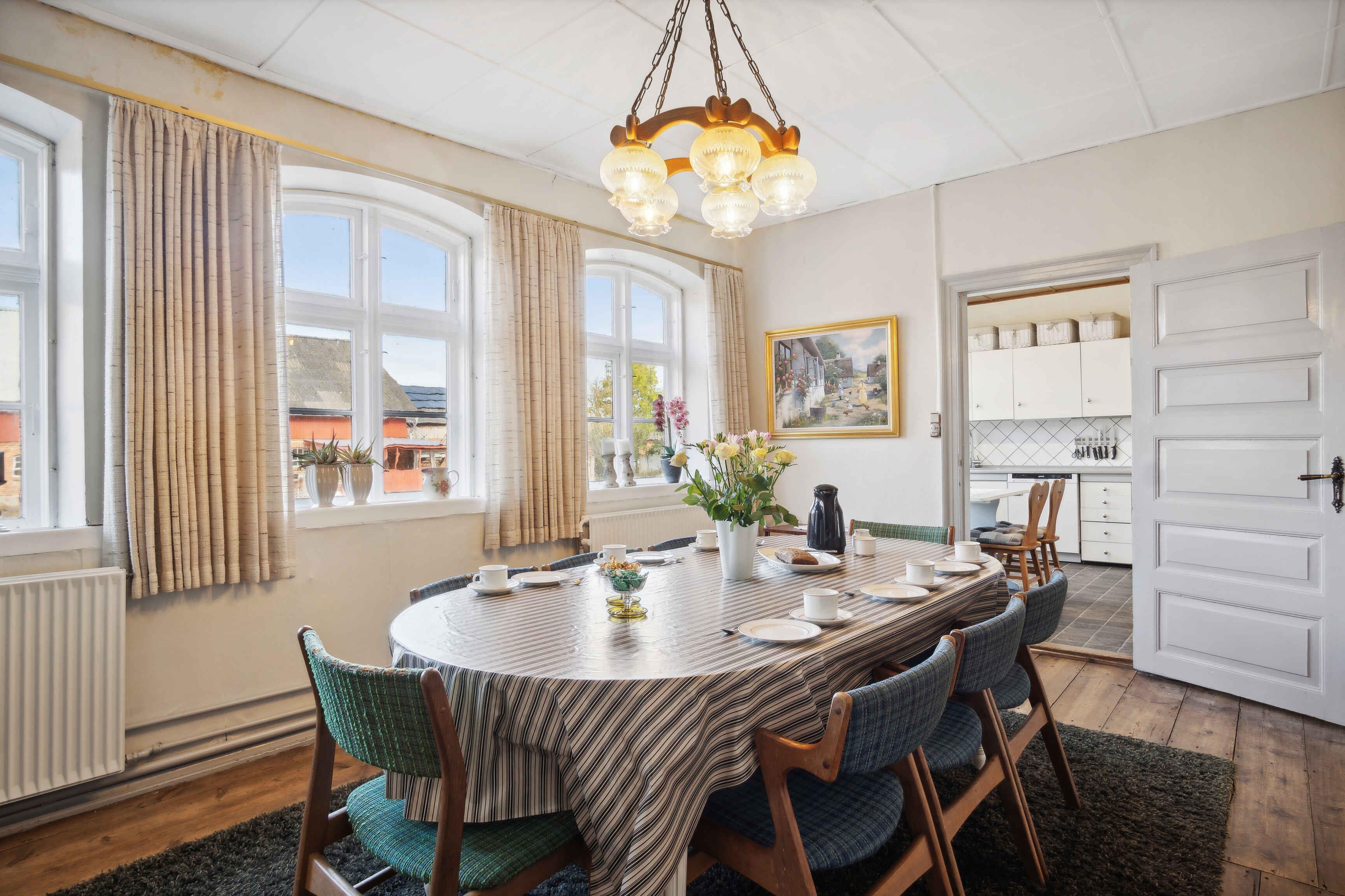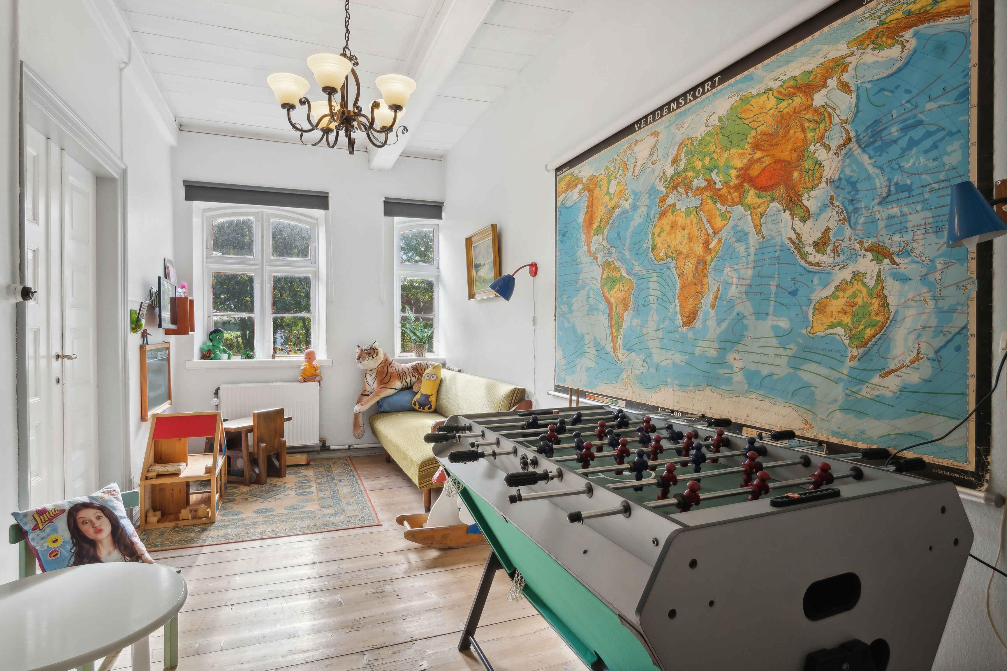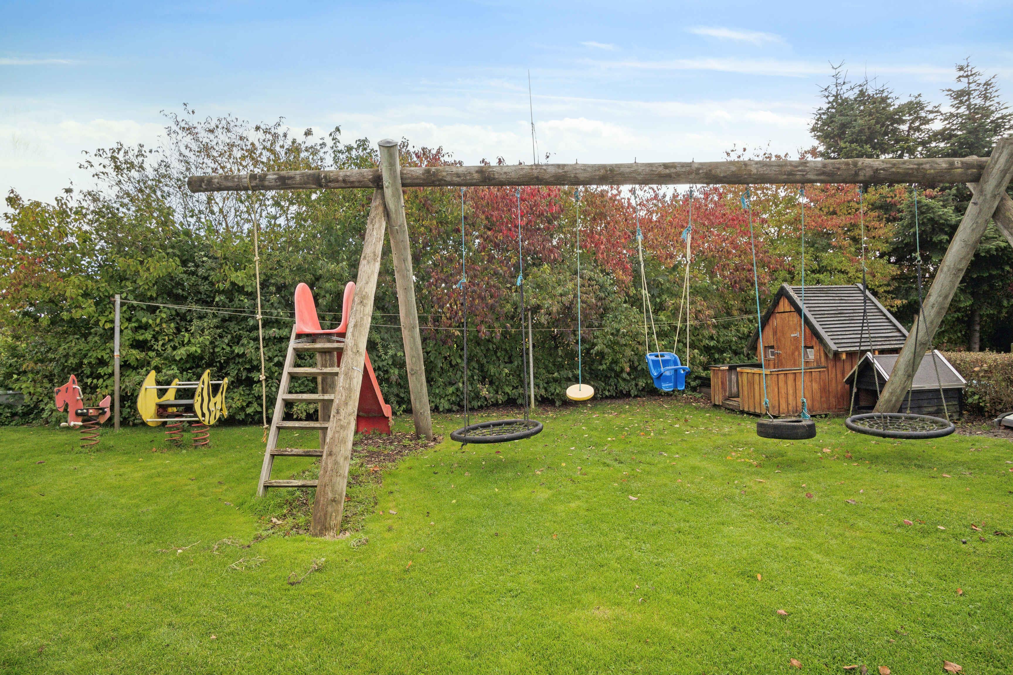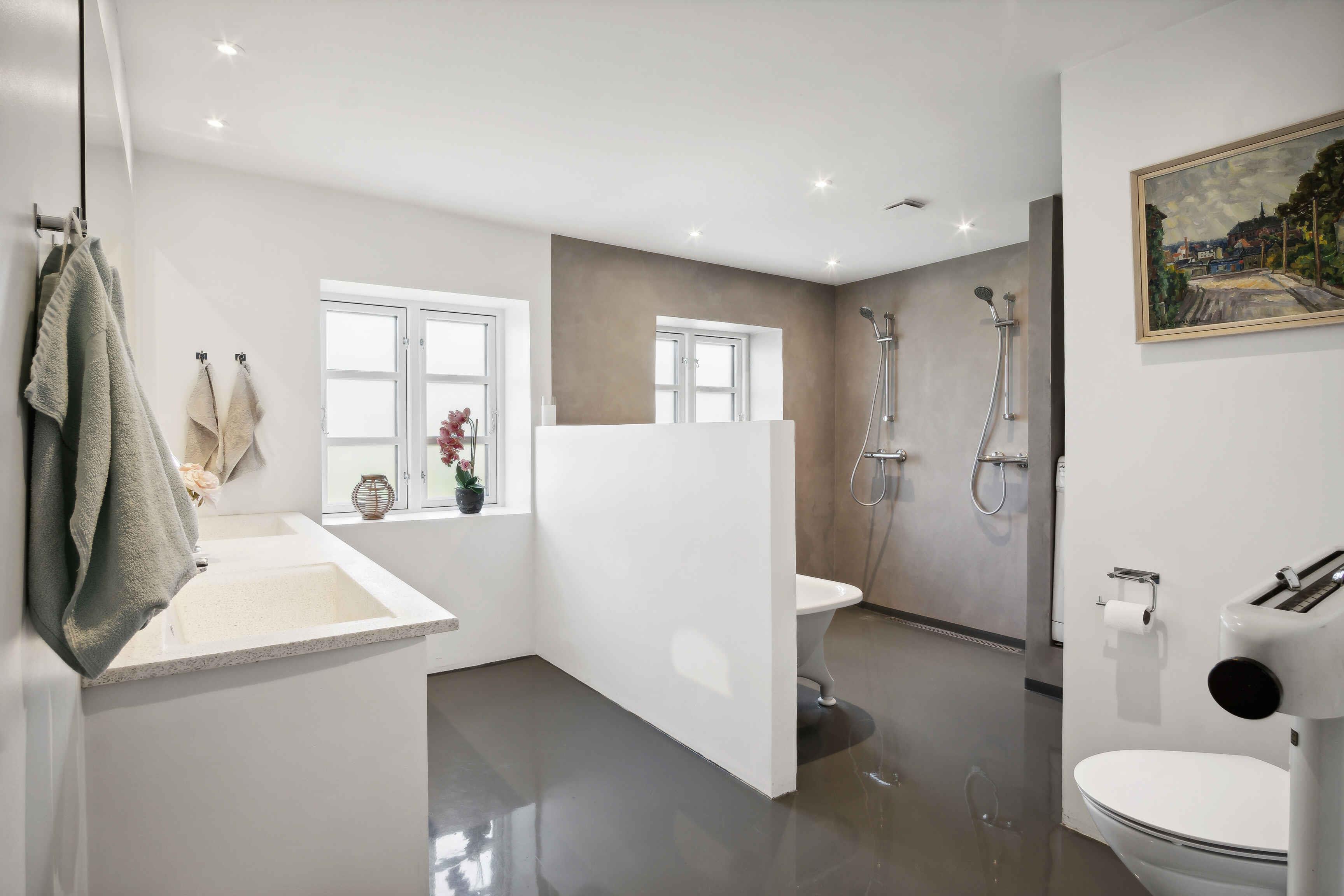 230 m2 Bauernhaus für landwirtschaftliches Anwesen im 1. Stock aus dem Jahr 1850 mit großem Hof und Garten. Das Bauernhaus bietet viel Platz mit insgesamt 16 Zimmern. Sie erhalten 3 großzügig authentisch eingerichtete Wohnzimmer (einschließlich TV mit Chromecast), 4 Schlafzimmer, 1 Spielzimmer (mit der Möglichkeit von zusätzlichen Betten auf Schlafsofa), eine sehr gut ausgestattete Küche mit einer Sage Barista Pro Espressomaschine, Kenwood-Mixer, Mixer, Fondue und vielem mehr sowie 2 große neue Badezimmer mit Fußbodenheizung (errichtet im Jahr 2020 und 2022) und einem Toilettenraum. Das Bauernhaus ist im ursprünglichen charmanten Stil mit zeitgemäßen Möbeln und älteren Gemälden hauptsächlich aus der Region eingerichtet. Der Hof wird von einer neuen Luft-Wasser-Wärmepumpe beheizt (errichtet im Jahr 2021). Die große 26 kWp Solaranlage des Hofes, die auf dem Dach eines der Betriebsgebäude installiert ist, trägt erheblich zur Stromerzeugung auf nachhaltige Weise bei. Es stehen 2 Ladestationen für Hybrid-/Elektroautos zur Verfügung, eine private 11 kW AC-Ladestation (im Hof gelegen) und eine öffentliche 30 kW DC-Schnellladestation (im Westen des Betriebsgebäudes zur öffentlichen Straße hin gelegen) - Nutzung über die Monta-App. Draußen gibt es viel Platz. Es gibt einen etwa 2.000 m2 großen Schotterhof, eine überdachte Terrasse mit 10-12 Sitzplätzen und Terrassenheizung sowie Gas- und Holzkohlegrill, eine abgelegene Terrasse (nicht überdacht) mit 10-12 Sitzplätzen und eingezäuntem Lagerfeuerplatz und Gartenteich sowie einen etwa 4.000 m2 großen Garten, der in mehrere Abschnitte unterteilt ist. Die Gartenabschnitte umfassen Obstbäume, Beerensträucher und ein Gewächshaus mit saisonalem Gemüse. Für Kinder gibt es einen großen Trampolin mit Sicherheitsnetz (4,30 Meter), 2 x Fußballtore, 2 x Wippen und einen riesigen Schaukel mit fünf verschiedenen Schaukeln, Kletterseil und Rutsche. Darüber hinaus stehen verschiedene Kinder- und Erwachsenenfahrräder sowie Monddrahtautos, Trettraktoren usw. zur Verfügung. Im Garten gibt es auch einen abgegrenzten Bereich mit einem neuen 2,25 Meter großen elektrisch beheizten Wildbad mit Wärmehaube (errichtet im Jahr 2023), einem 3,5 Meter großen holzbefeuerten Saunafass (anno 2021), einer Außendusche mit Warmwassertank und einer großen Grillhütte für 12 Personen (anno 2022). Während des Aufenthalts steht eine bestimmte Menge Brennholz frei zur Verfügung. Auf dem alten Heuboden des Hofes im 1. Stock wurde im Herbst 2023 ein 100 m2 großer isolierter und beheizter (2 x Luft-Luft-Wärmepumpen) Aktivitätsraum eingerichtet. Hier finden Sie ein Billardtisch, Tischfußball, Airhockey, 2 x Darts (normal/elektrisch), Shuffleboard, Pokertisch (6 Sitzplätze), Kreativtisch (4 Sitzplätze und 1 Trip Trap Juniorstuhl), LEGO, Spielzeug, Brett- und Kartenspiele, TV und Projektor mit Chromecast, Xbox 360 und Xbox One mit vielen Spielen sowie Sitzbereiche und eine große Bar in der Mitte des Raumes mit 7 Barhockern. Vom Grundstück aus genießen Sie Meerblick über Lillebælt am Mund des Haderslev Fjords. Der Hof liegt auf der Route "Camino Haderslev Næs" und nur 1 km von einem sehr kinderfreundlichen Strand entfernt über einen Feldweg durch den Wald zu einem gemütlichen kleineren Ferienhausgebiet am Tamdrup-Strand. Es sind auch 1 km bis zum Hofladen und Weinladen in Hajstrup, wo in der Saison lokal produziertes Obst und Gemüse unter anderem von diesem Hof gekauft werden können. Im Wohn- und Aktivitätsraum gibt es ultraschnelles WLAN mit 360 Mbps. Es gibt auch WLAN im Freien an der westlich ausgerichteten Giebelseite des Bauernhauses im Bereich um den Gartenteich, das Wildbad, die Sauna und die Grillhütte.