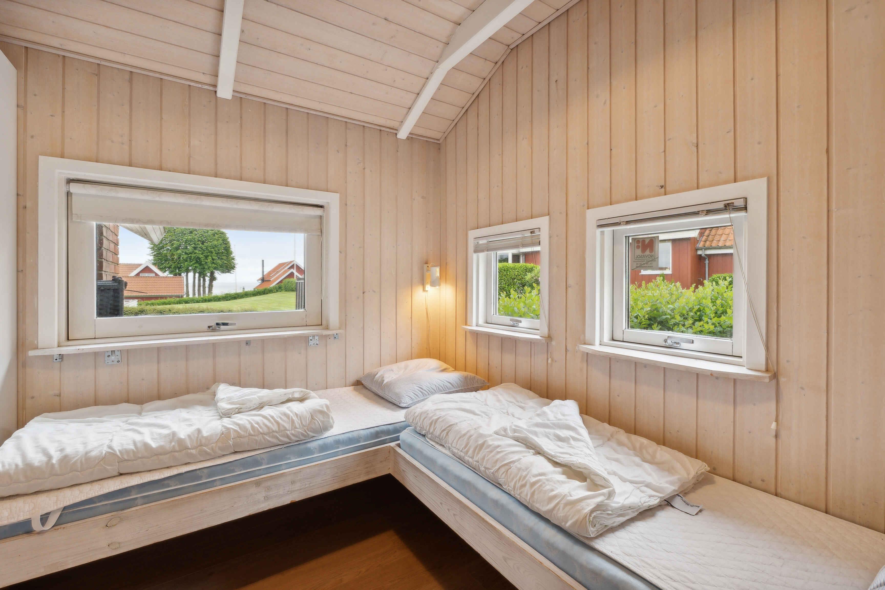 Erleben Sie ein charmantes Sommerhaus mit Meerblick und Sauna, nur 50 m vom Sandstrand in Haderslev entfernt.