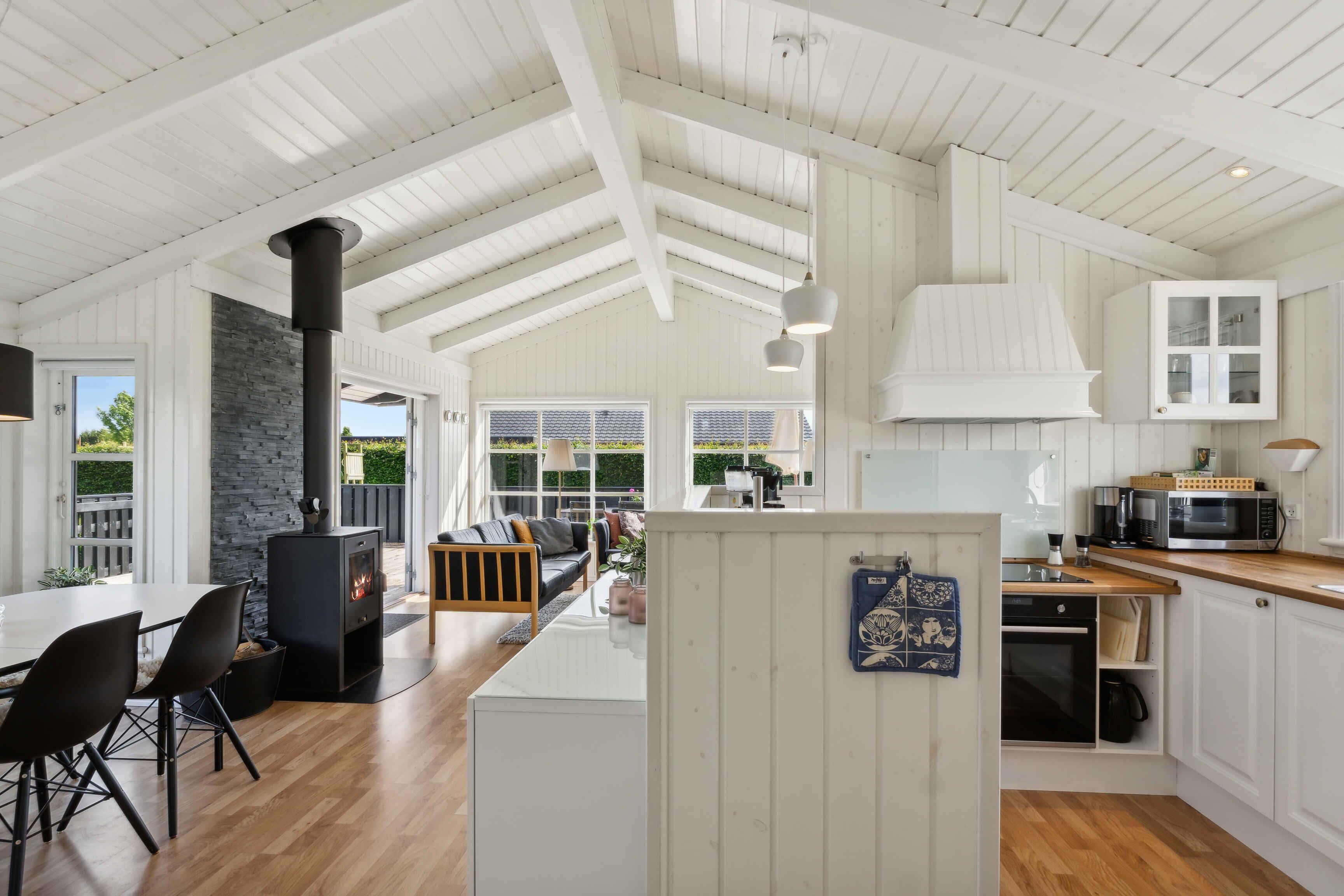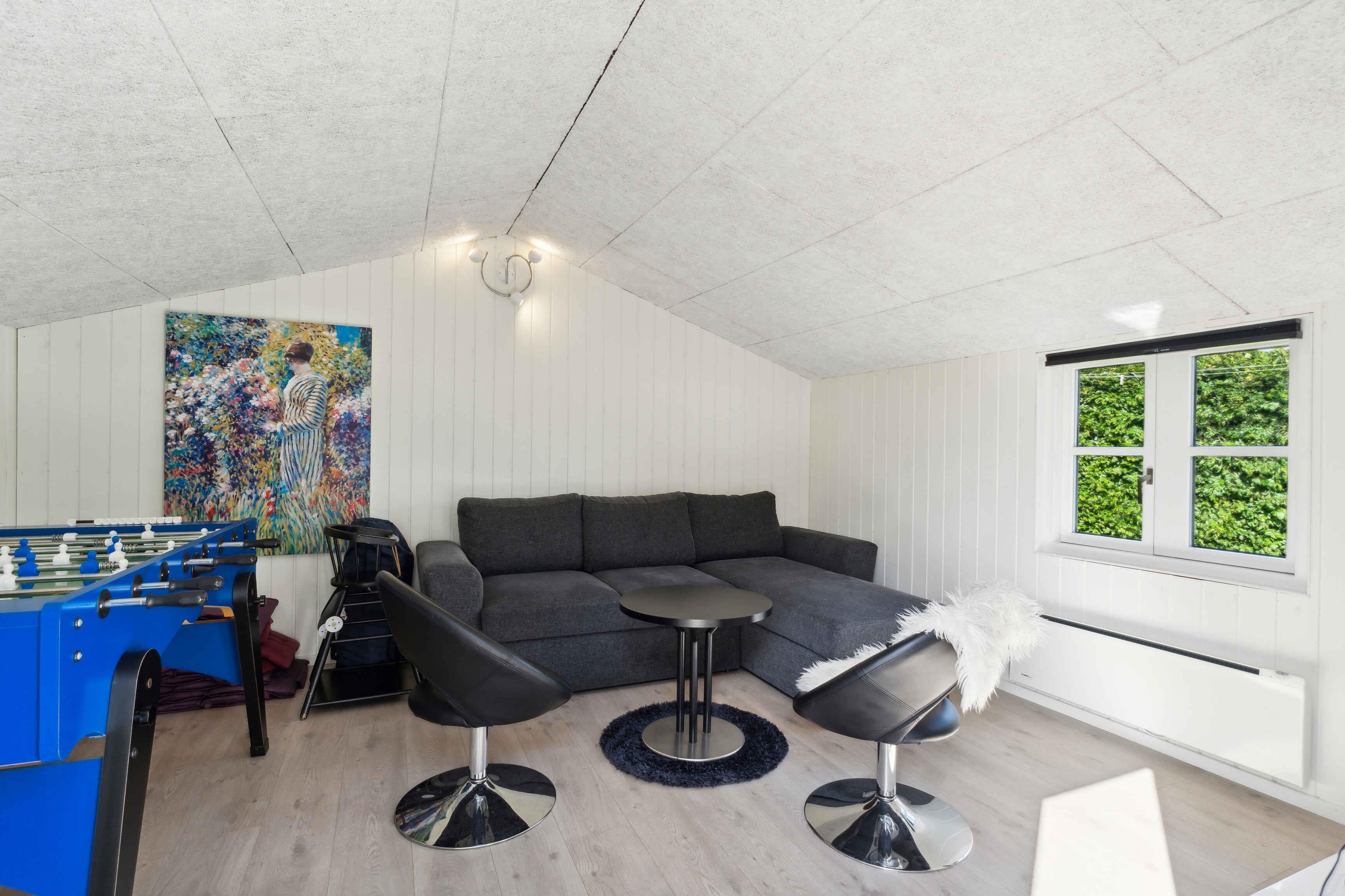 Modernes Ferienhaus mit heller und stilvoller Einrichtung, 4 Schlafzimmern und 2 Badezimmern. Nebengebäude mit Schlafsofa, Tischfußball, Fernseher und Spielkonsole – ideal für Familien und junge Leute.