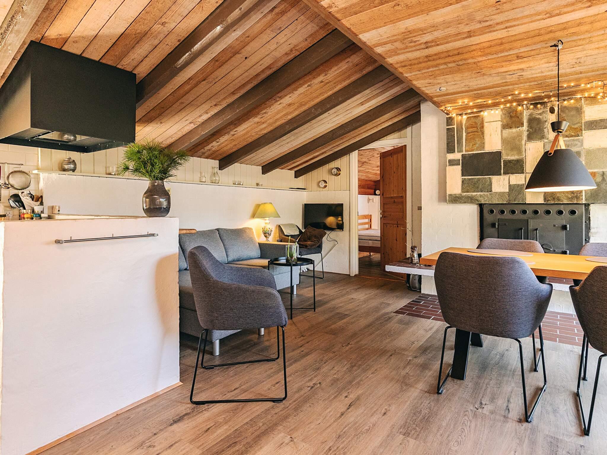 Die 52 m2 große Wohnfläche bietet 3 Schlafzimmer, ein Badezimmer mit Dusche, Küche und Wohnzimmer. Alle Zimmer im Haus sind mit neueren Doppelbetten ausgestattet, die insgesamt Platz für 6 Personen bieten. Die Küche des Hauses ist klein, enthält aber alles, was zum Kochen benötigt wird, darunter einen Elektroherd mit Backofen und einen Kühlschrank mit Gefrierfach. Die Küche ist zum Wohnzimmer hin offen, sodass das gesellige Beisammensein auch dann weitergehen kann, wenn mit dem Kochen begonnen wird. Der Wohnraum besteht aus einem gemeinsamen Wohn-/Esszimmer, welches am Esstisch und in der Sitzecke Platz für 6 Personen bietet. Im Wohnzimmer finden Sie außerdem einen Kamin, der bei kaltem Wetter angezündet werden kann.