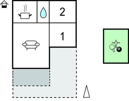 Das Haus ist mit komfortablen Möbeln eingerichtet und wirkt hell und einladend. Das Ferienhaus besteht aus zwei Gebäuden: Im Haupthaus befinden sich 2 Schlafzimmer und 1 Bad, während es im Nebengebäude ein gemütliches Wohnzimmer, zwei weitere Schlafplätze und noch ein Bad gibt. Der Annex hat eine eigene Wärmepumpe und das Haus bietet durch umweltfreundliche Ausstattung einen niedrigen Energieverbrauch.