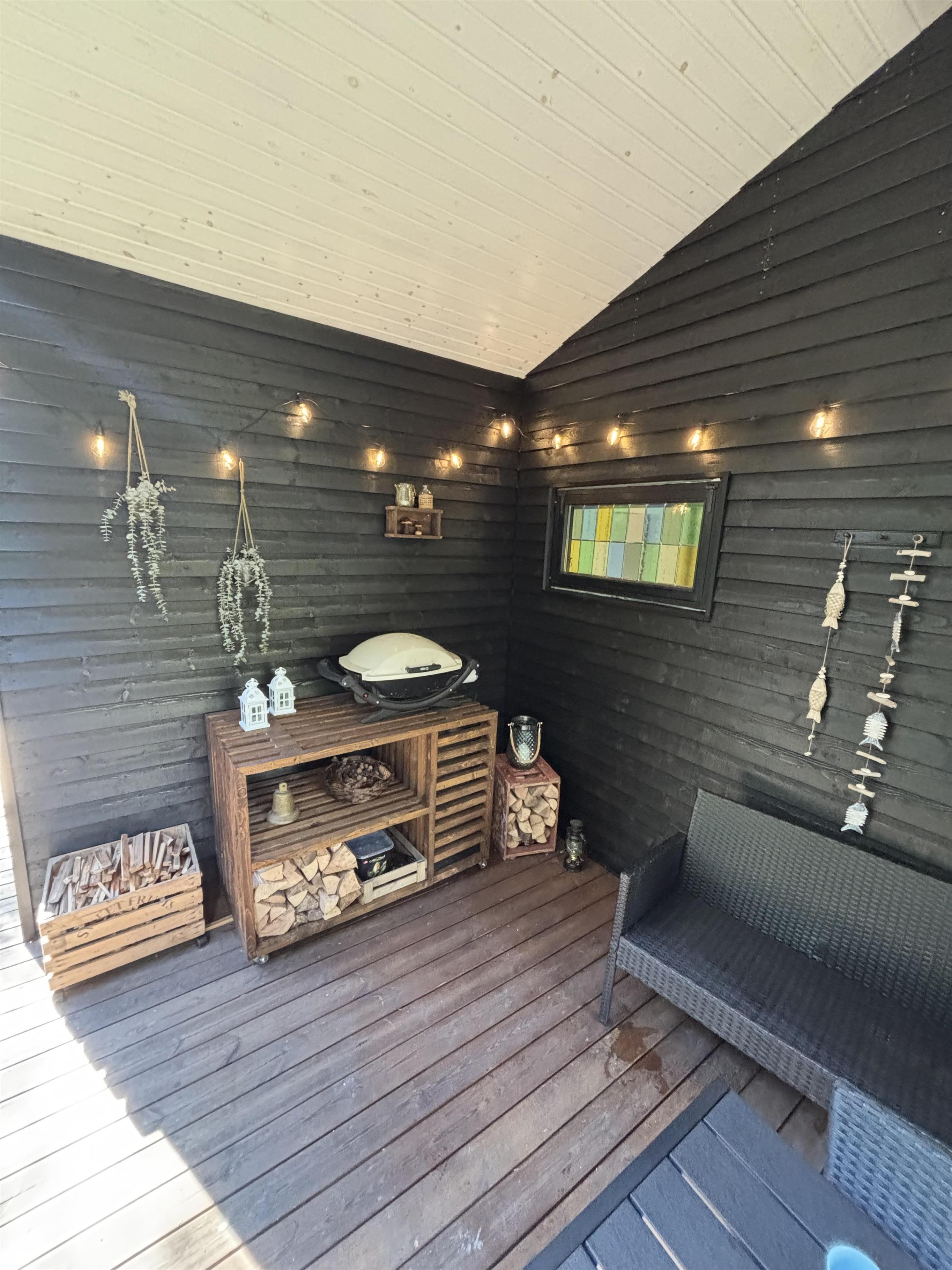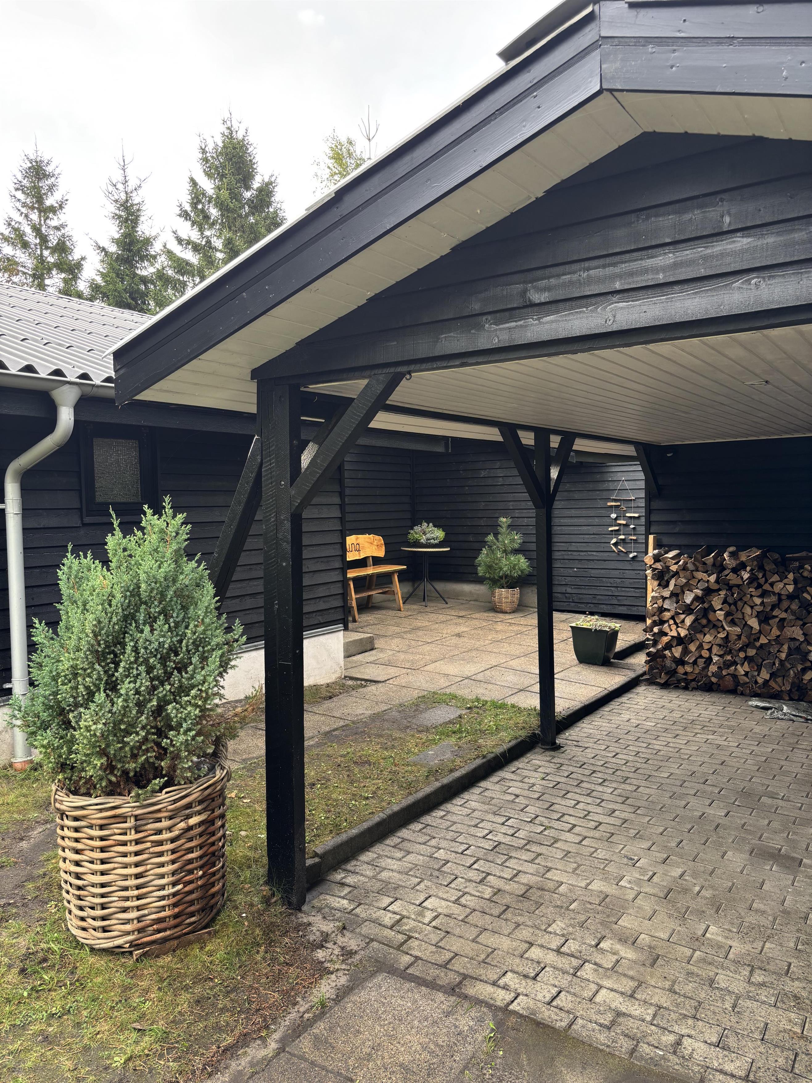 Zur Ferienunterkunft gehören 40 m² Terrassenfläche sowie 10 m² überdachte Terrasse mit Gas- und Holzkohlegrill. Außerdem gibt es einen Geräteschuppen, eine Carport-Stellplatz sowie Parkmöglichkeiten direkt am Haus.
