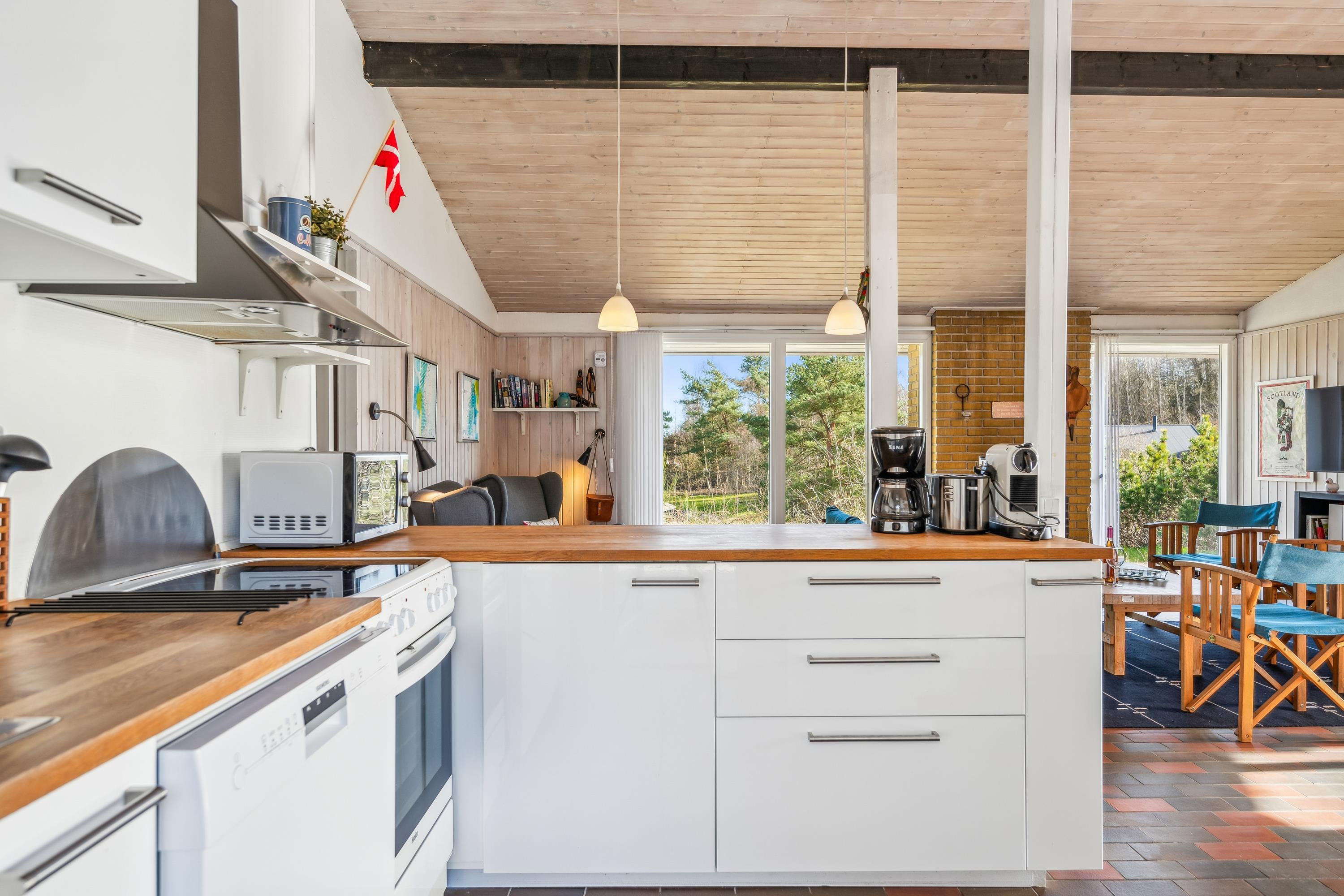 Handrup Strand ist ein schöner und kinderfreundlicher Sandstrand in der Nähe des Naturschutzgebiets Mols Bjerge. Mols Bjerge ist nur 5 km entfernt. vom Ferienhaus entfernt, und hier gibt es viele Möglichkeiten, gute Wanderwege zu finden. In der Umgebung von Handrup gibt es viele gute Radwege sowie Naturpfade und Aussichtspunkte, von denen aus Sie den unglaublich schönen Sonnenuntergang über Ebeltoft Bucht genießen können. In der Umgebung gibt es ein Restaurant und einen Supermarkt. Es gibt ca. 10 Autominuten von der Stadt Ebeltoft mit ihren alten Häusern und gepflasterten Straßen entfernt, die viele aufregende Sehenswürdigkeiten bietet, darunter Das alte Rathaus. Am Hafen finden Sie mehrere interessante Geschäfte und Restaurants, und hier ist es immer möglich, fangfrischen Fisch zu kaufen. Empfehlenswert ist auch ein Besuch des Glasmuseums oder der Maltfabrikken.