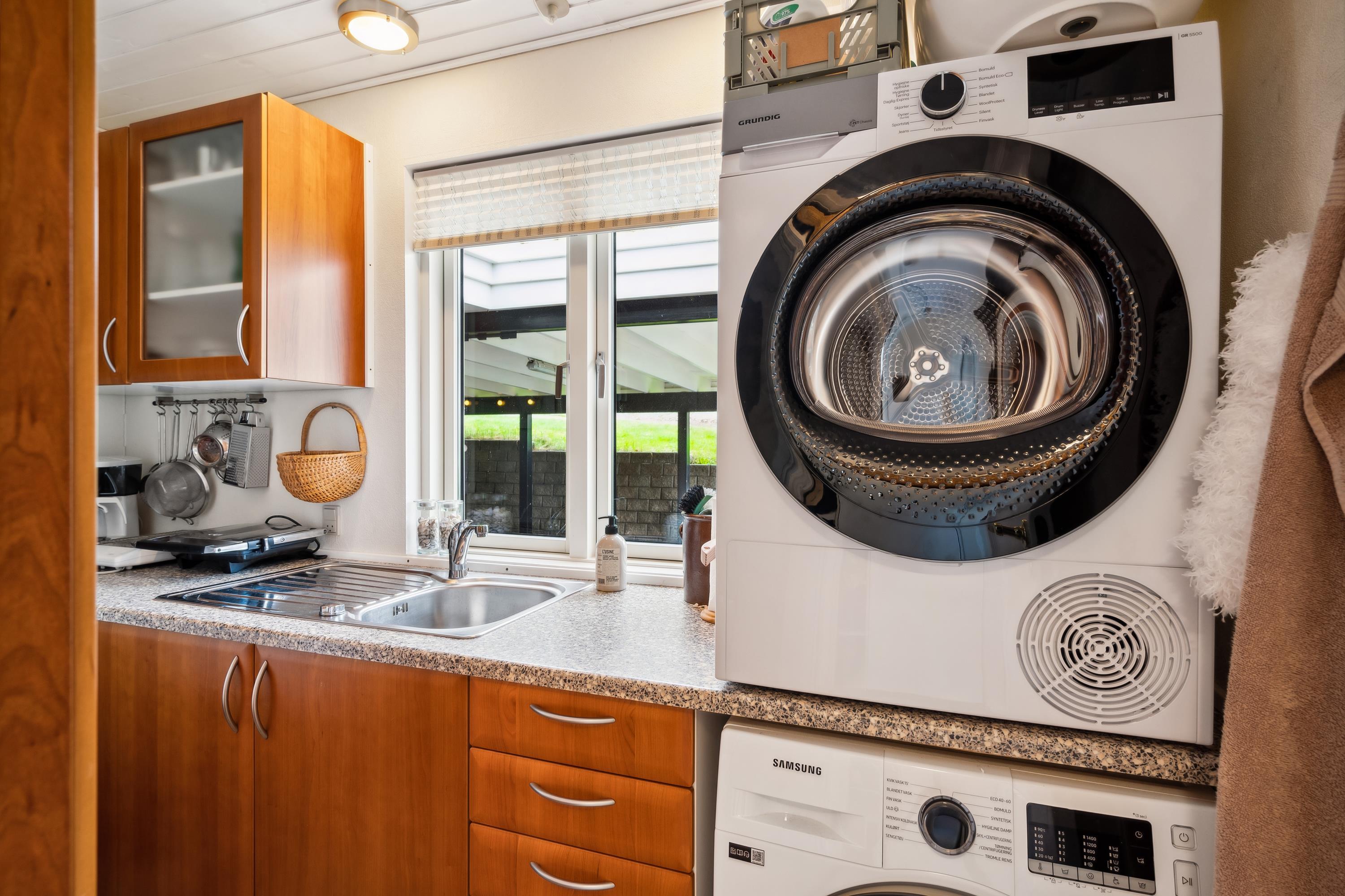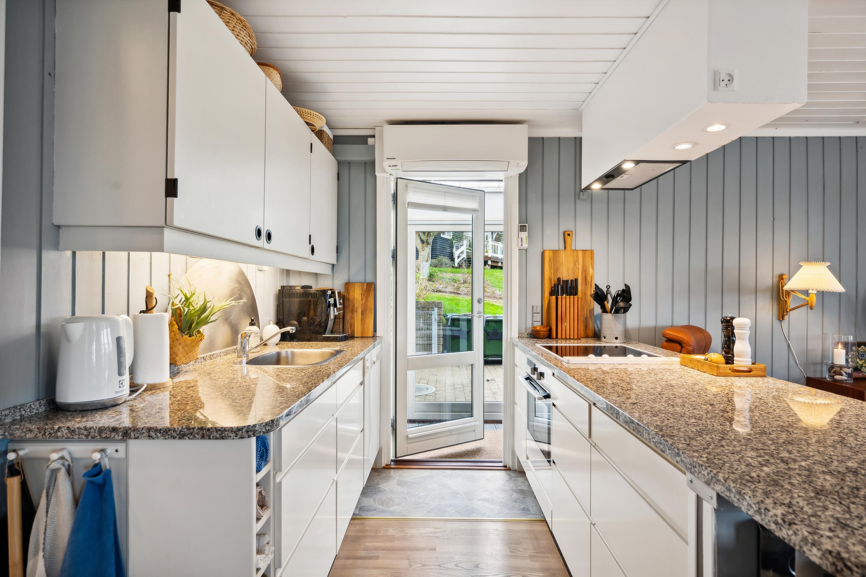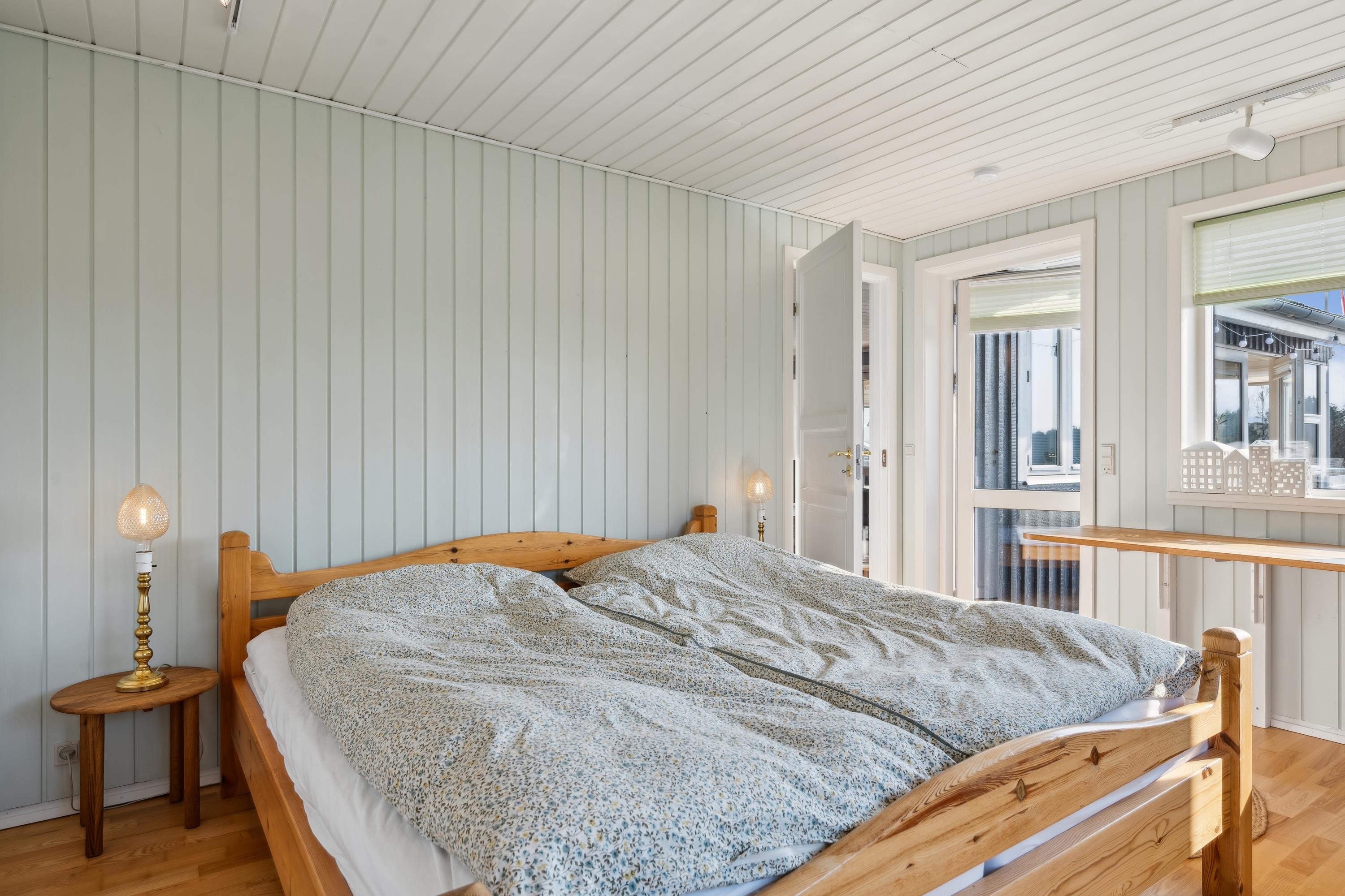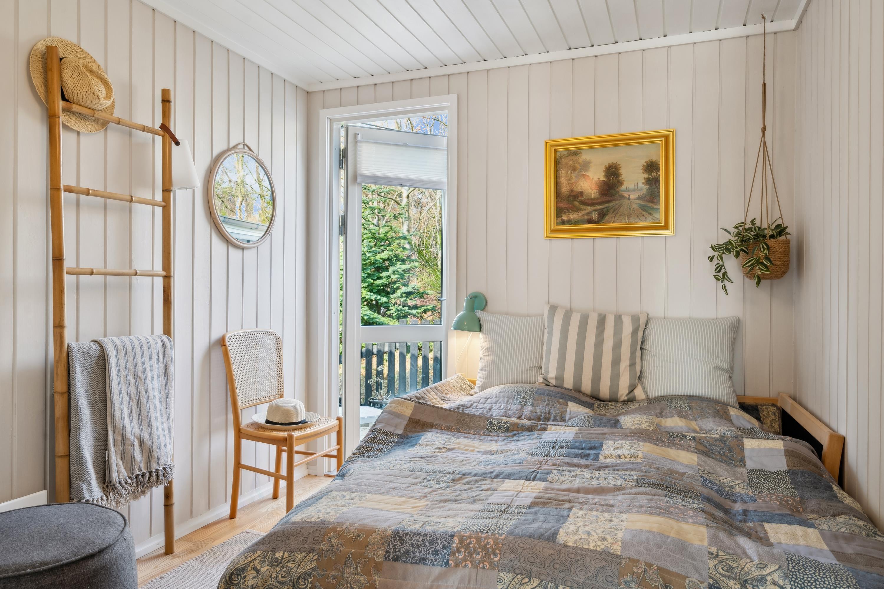 Die Schlafplätze verteilen sich auf drei gemütliche Schlafzimmer, von denen zwei mit Doppelbetten und eines mit zwei Einzelbetten ausgestattet sind. Zwei der Schlafzimmer haben einen direkten Zugang zur Terrasse. Das schöne Badezimmer verfügt über Fußbodenheizung. Zudem gibt es einen kleinen Hauswirtschaftsraum mit Zugang zu Waschmaschine und Trockner. Direkt am Eingangsbereich befindet sich ein integrierter Raum mit Mikrowelle und weiteren praktischen Utensilien.