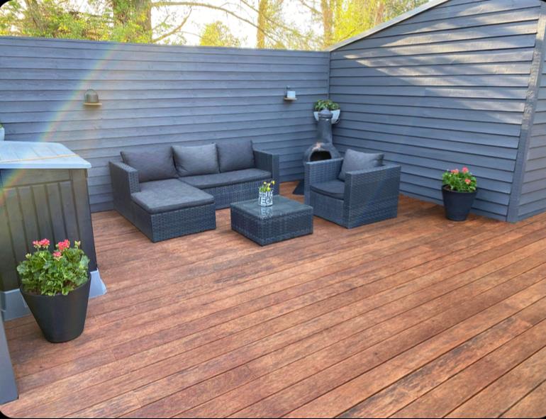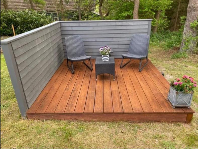 Im Außenbereich gibt es eine neuere, nach Süden ausgerichtete Terrasse mit hochwertigen Gartenmöbeln, Sonnenliegen und Grill – perfekt, um die Sonne den ganzen Tag zu genießen.
