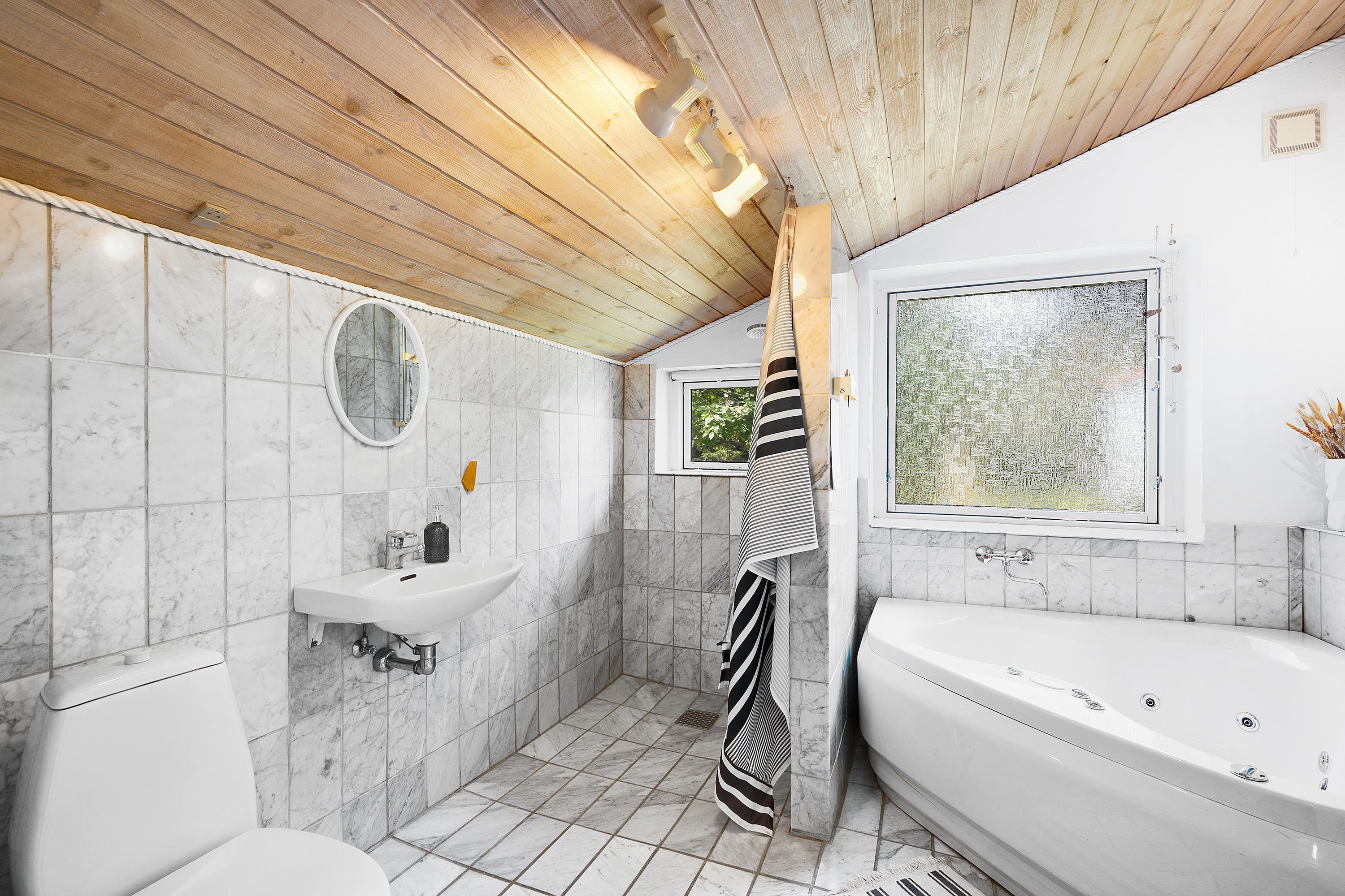 In der schönen und ruhigen Gegend von Handrup Bakker finden Sie dieses ältere, aber sehr gemütliche Ferienhaus in gestaffeltem Grundriss. Hier finden Sie ein gemütlich eingerichtetes Wohnzimmer mit u.a. Holzofen und Wärmepumpe und Ausgang auf eine schöne Terrasse. In Verbindung mit dem Wohnzimmer befindet sich die schöne Küche aus dem Jahr 2022 und die gemütliche Essecke, von der aus man auf eine weitere Terrasse gelangt. Die Betten des Hauses verteilen sich auf zwei Zimmer im Obergeschoss, darunter ein Zimmer mit Doppelbett und ein Zimmer mit Etagenbett, und im Untergeschoss, wo sich ein großes Zimmer mit zwei Einzelbetten befindet. Das Haus enthält zwei Badezimmer; ein Badezimmer mit Dusche auf der oberen Etage und auf der unteren Etage finden Sie ein weiteres Badezimmer mit einem Whirlpool. Eine Waschmaschine ist vorhanden und für die kleinen Feriengäste gibt es einen Hochstuhl und ein Kinderbett. Reisen Sie mit mehreren Familien, vermieten wir auch das gegenüberliegende Haus mit der Nummer 18902