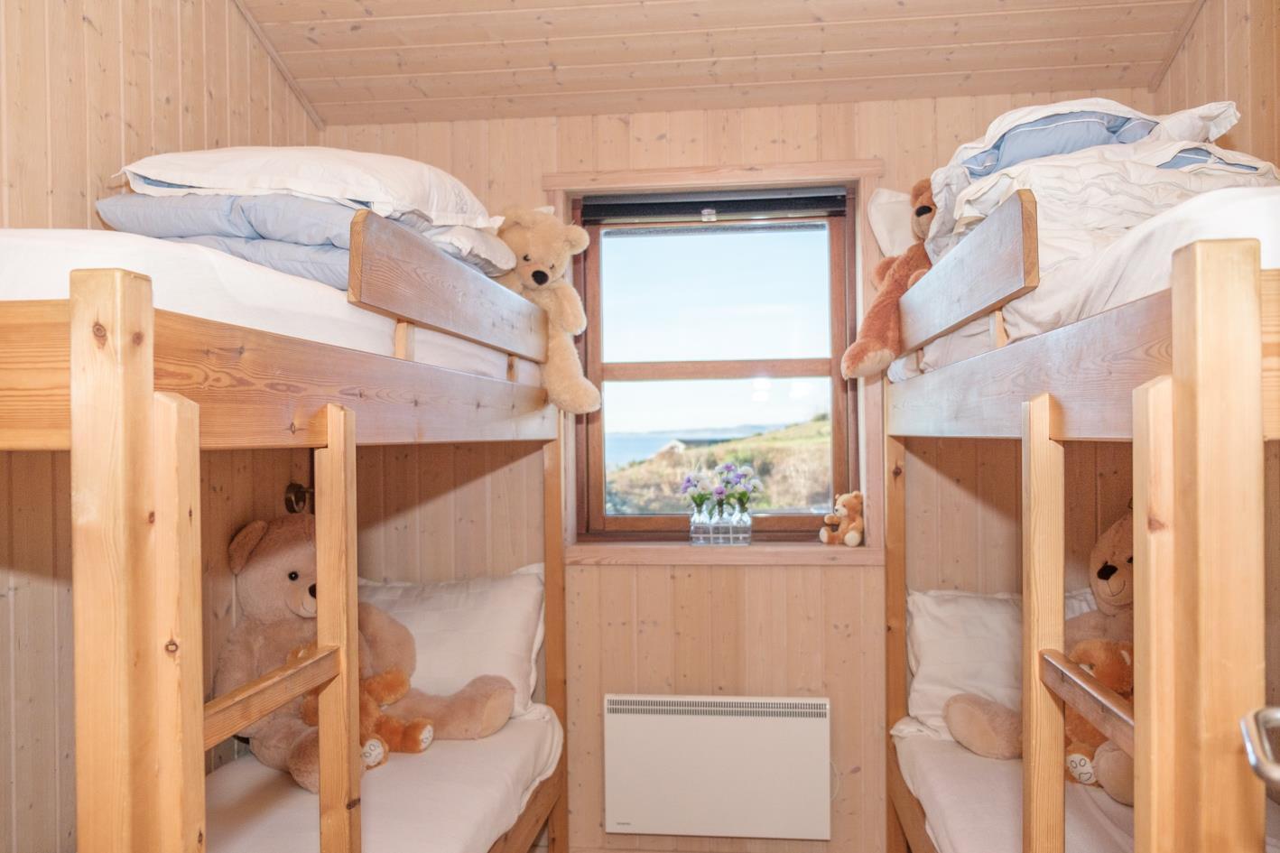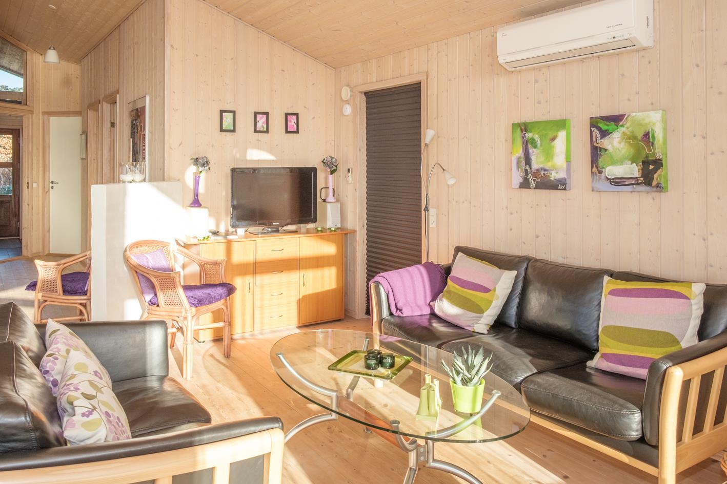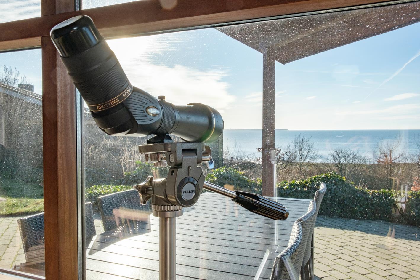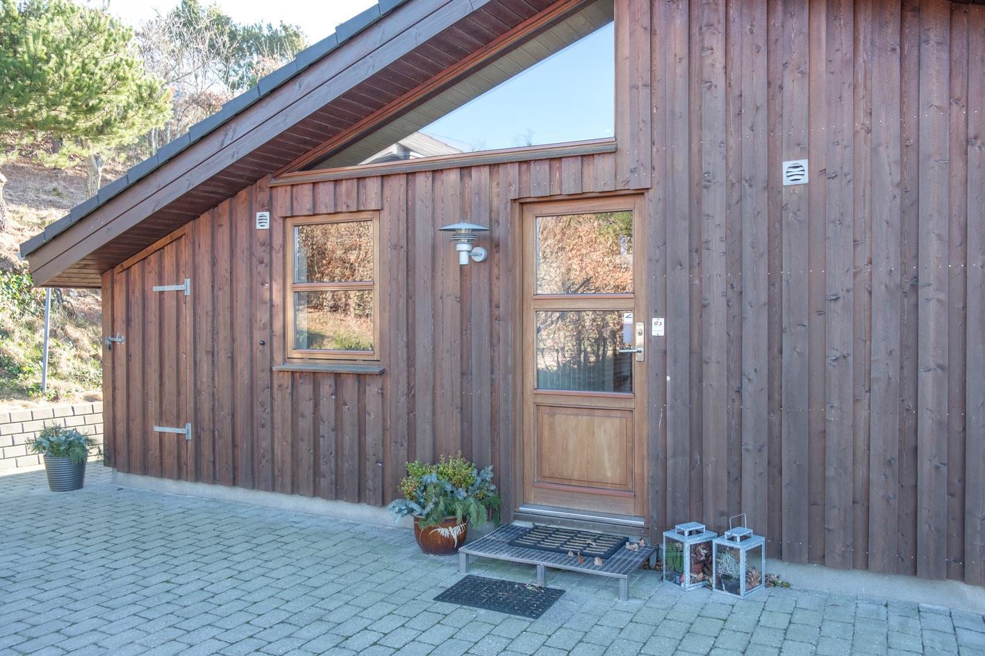 Dieses Ferienhaus liegt mit wunderschöner Panoramaaussicht auf die Ebeltoft Bucht, Helgenæs und Samsø auf einem kupierten Naturgrundstück mit niedrigem Bewuch. Das Haus hat eine offene, teilweise überdachte Terrasse mit Gartenmöbeln und Grill. Geschmackvolles Wohnzimmer mit Meerblick, Holzofen, TV, Stereoanlage mit CD und DVD. Schöne Küche mit Ceranfeld, Kühlschrank mit Gefrierfach, Mikrowelle/Kombiofen und Gescchirrspüler. Badezimmer mit Dusche, Fußbodenheizung, Whirlpool, Sauna und Waschmaschine. Gästetoilette. Die Schlafplätze verteilen sich auf 3 Schlafzimmer; 2 mit Doppelbett und 1 mit 2 Etagenbetten. Hängeboden. Für die kleinen Feriengäste finden Sie Kinderbett, Kinderstuhl und Sandkasten.